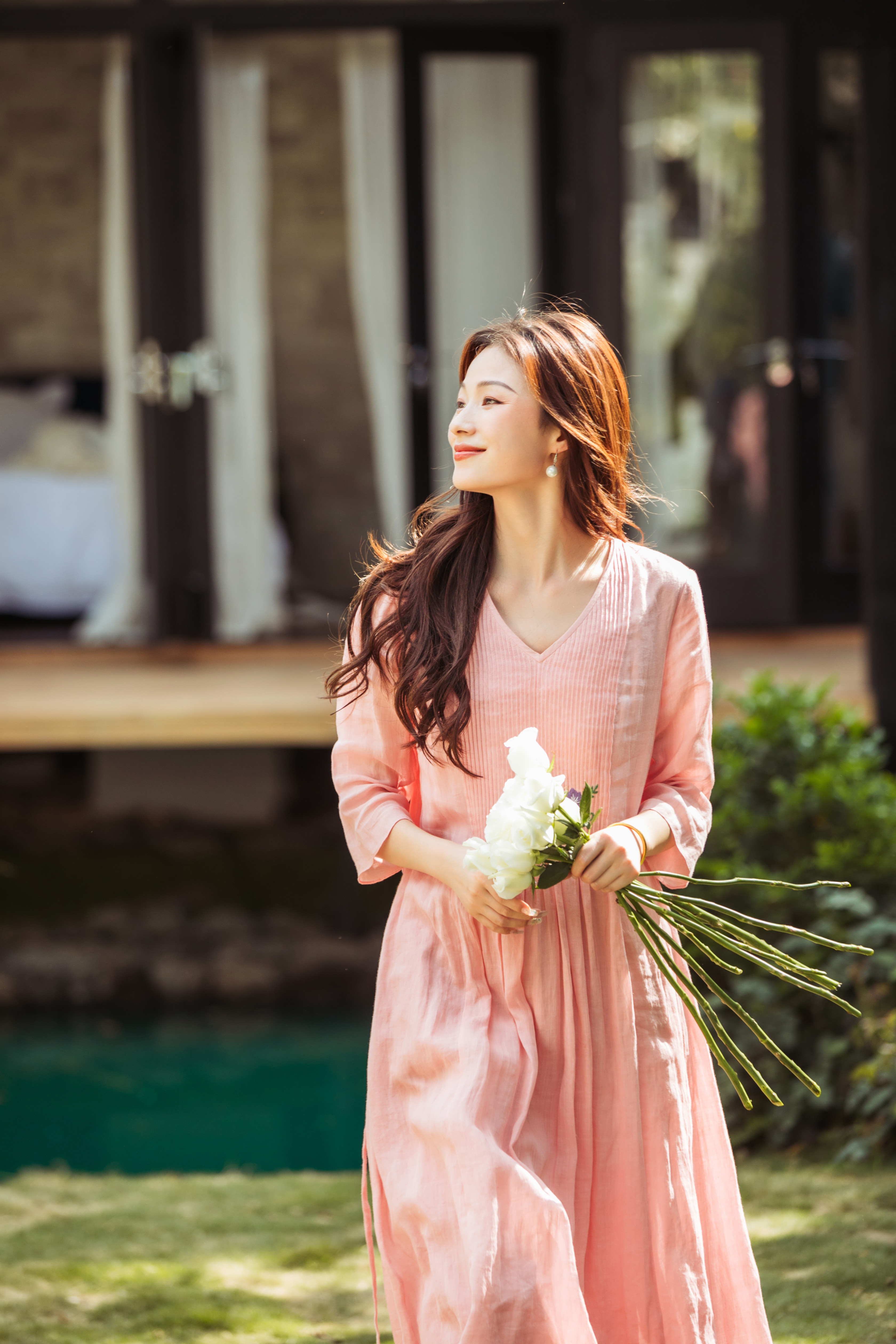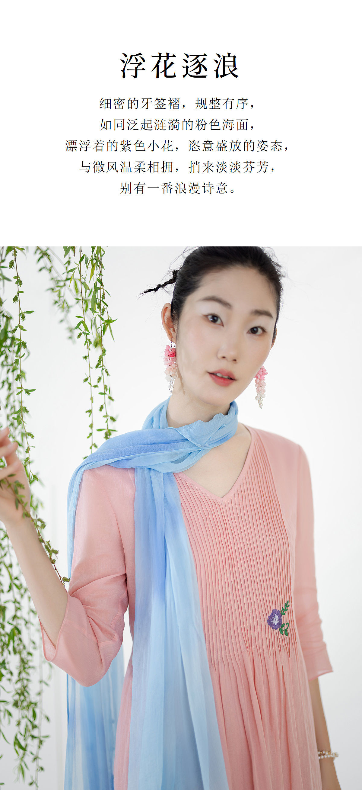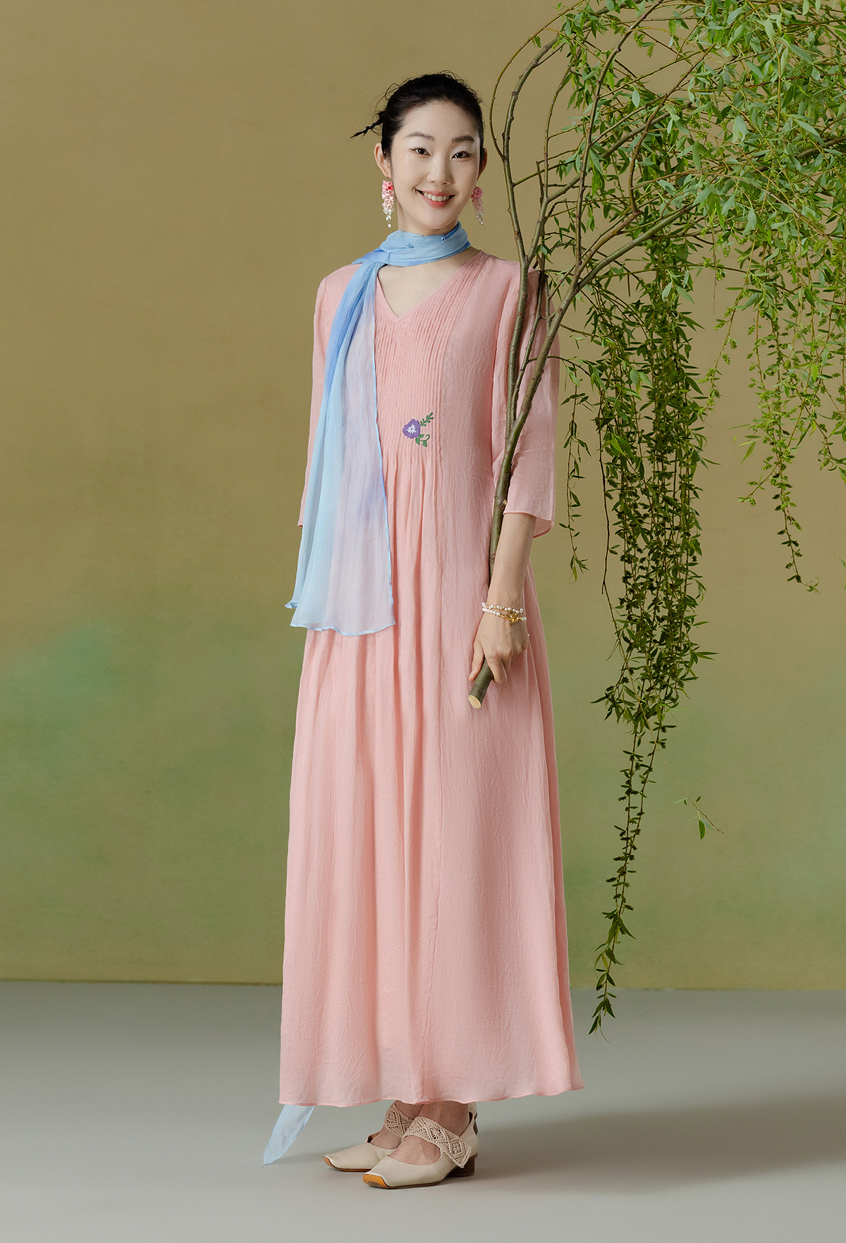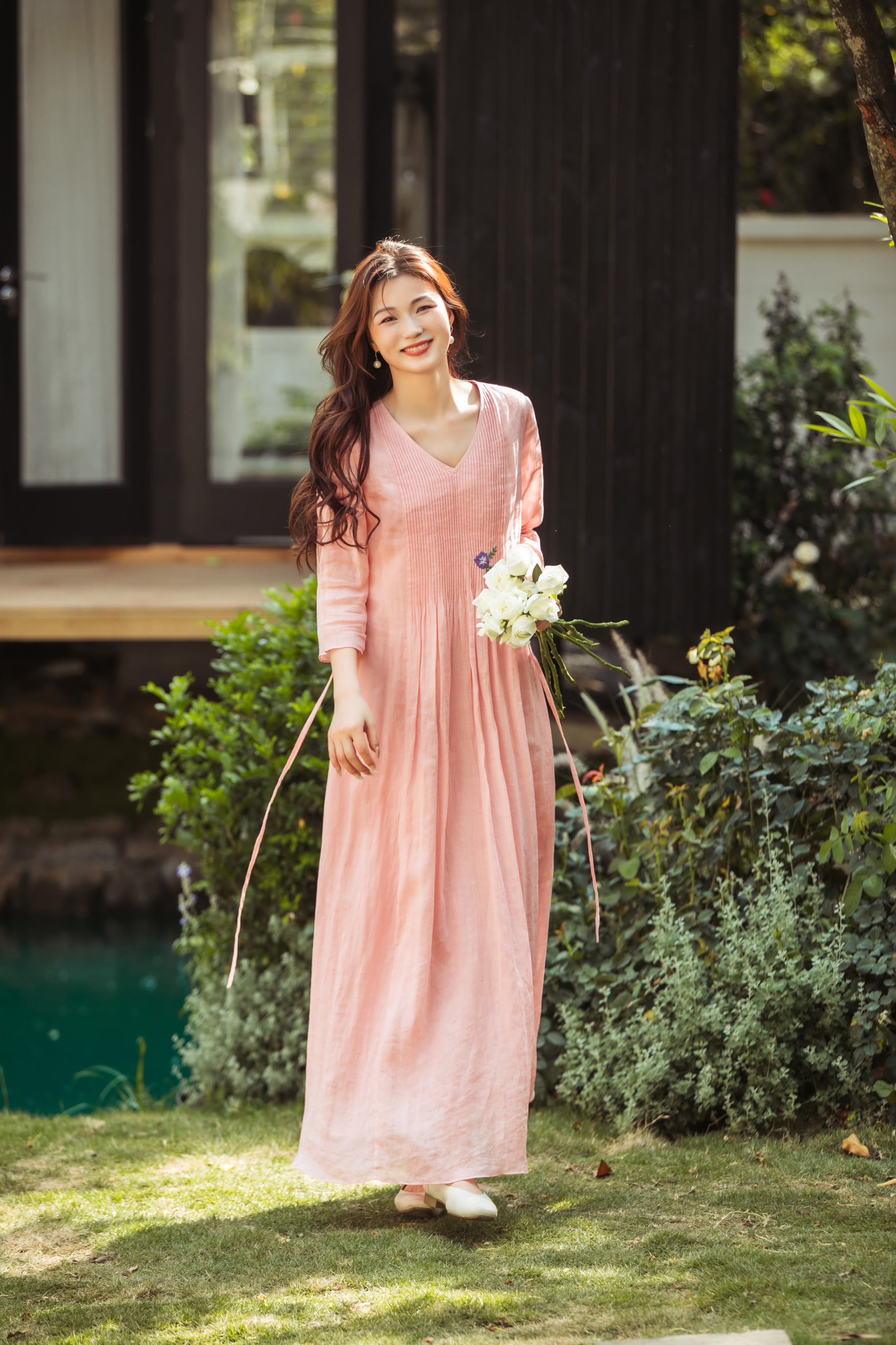 【林栖设计小店】(现货)苎麻连衣裙牙签褶优雅绣花修身2025夏季新品花仙子长裙女1952069