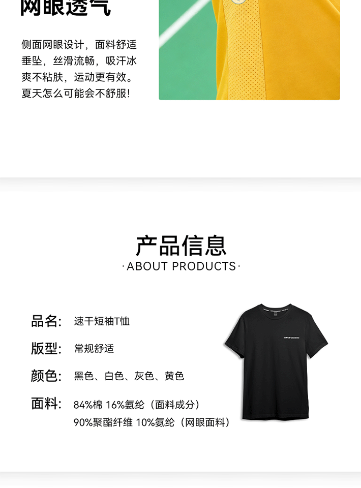 的幸四色速干网眼 T 恤 透气吸汗羽毛球运动短袖男女同款