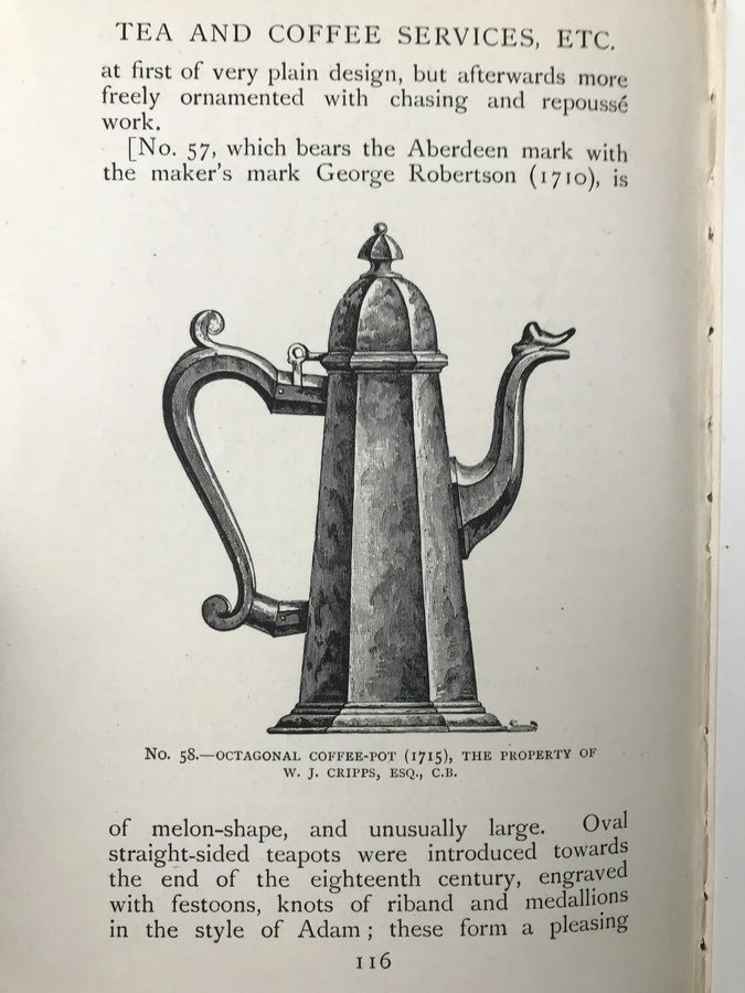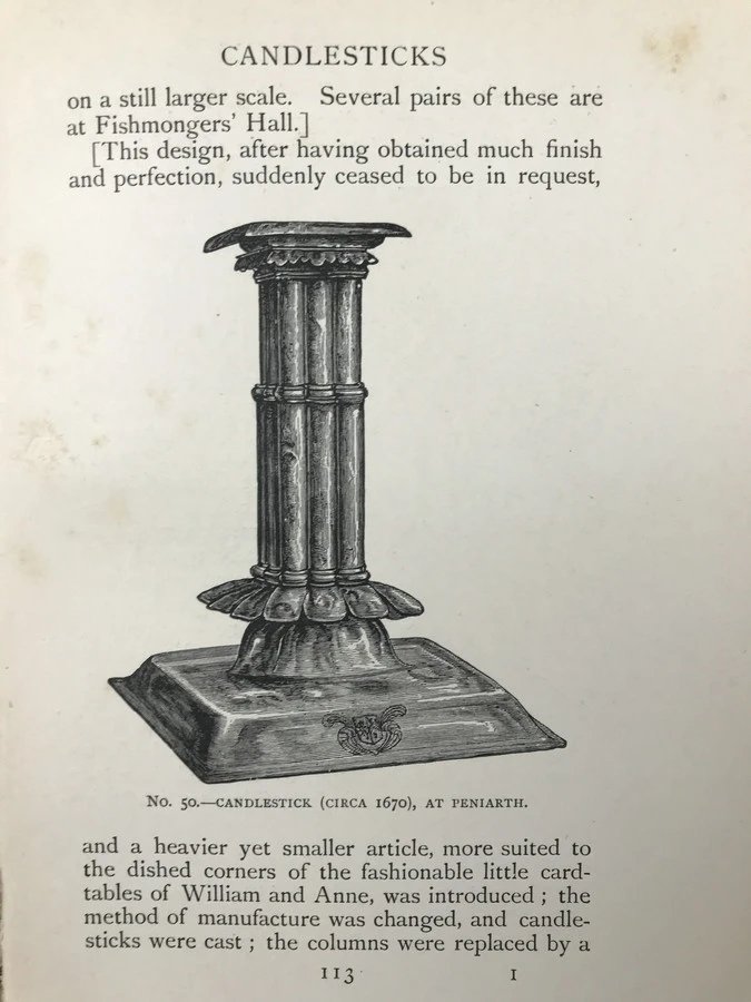 珀西·托马斯·麦克奎德(Percy Thomas Macquoid,1852-1925)是英国著名的家具收藏家和鉴赏家,他对英国家具史进行了详尽研究,将其划分为橡木时代、胡桃木时代、红木时代和黄椴木时代,这种划分方式被沿用至今,本书是他另外一部颇受关注的作品,考察了英国古董器皿的发展、样式、特征及徽记,文内可以看到许多不常见的精美器具,插图质量也不错,细节纹样都可以辨识清晰。