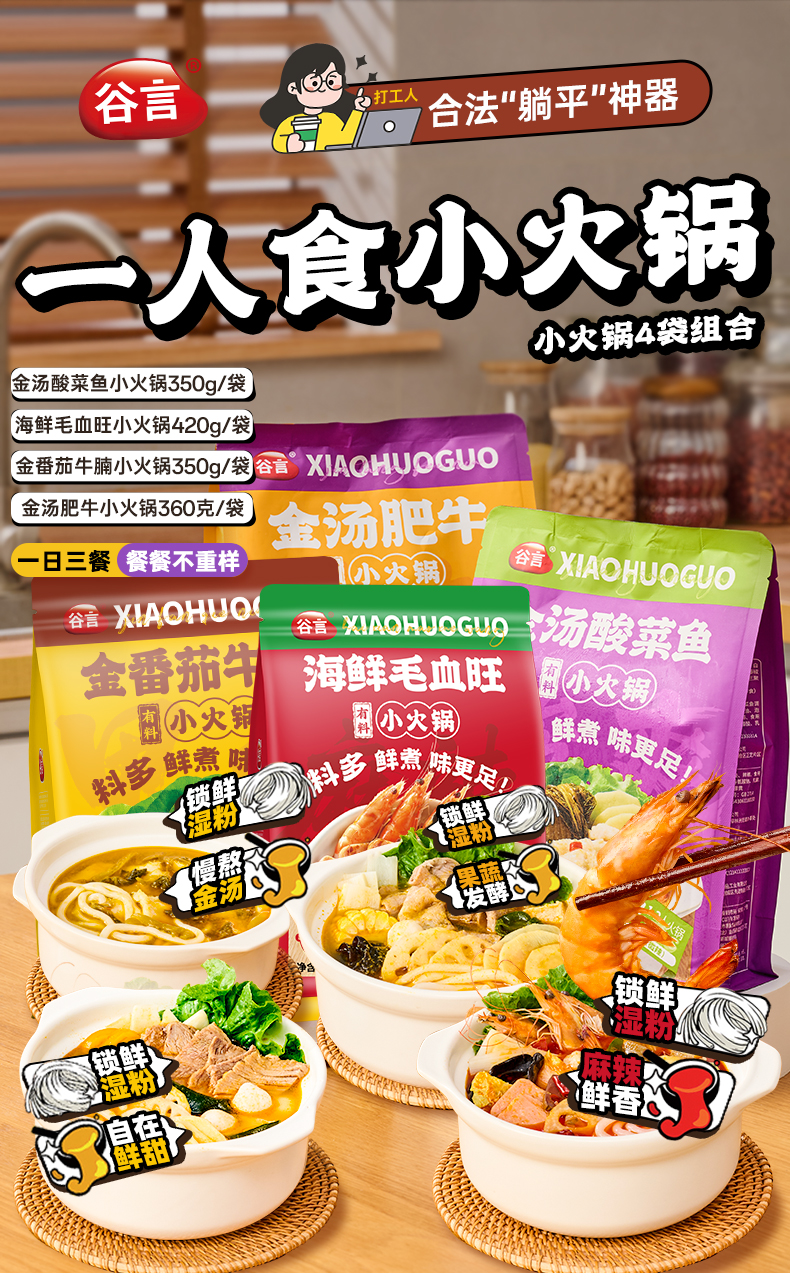谷言有料小火锅家用方便速食自热半成品毛血旺酸菜鱼牛肉懒人火锅