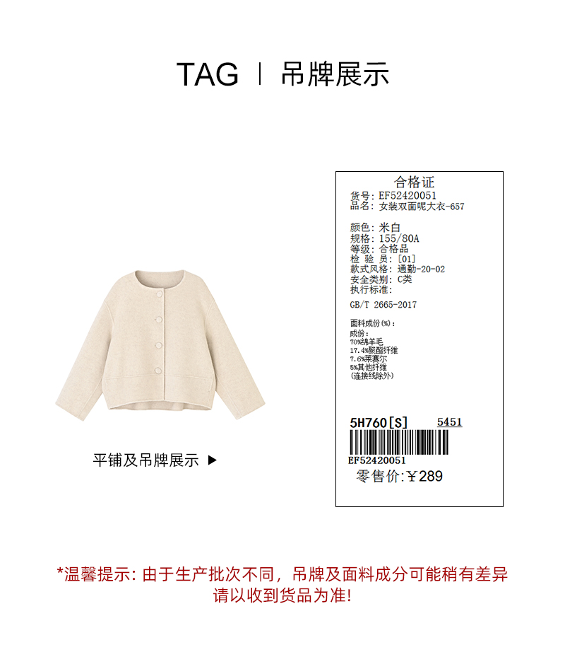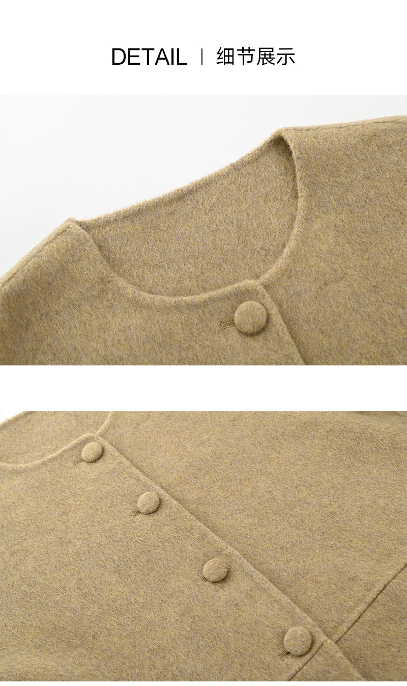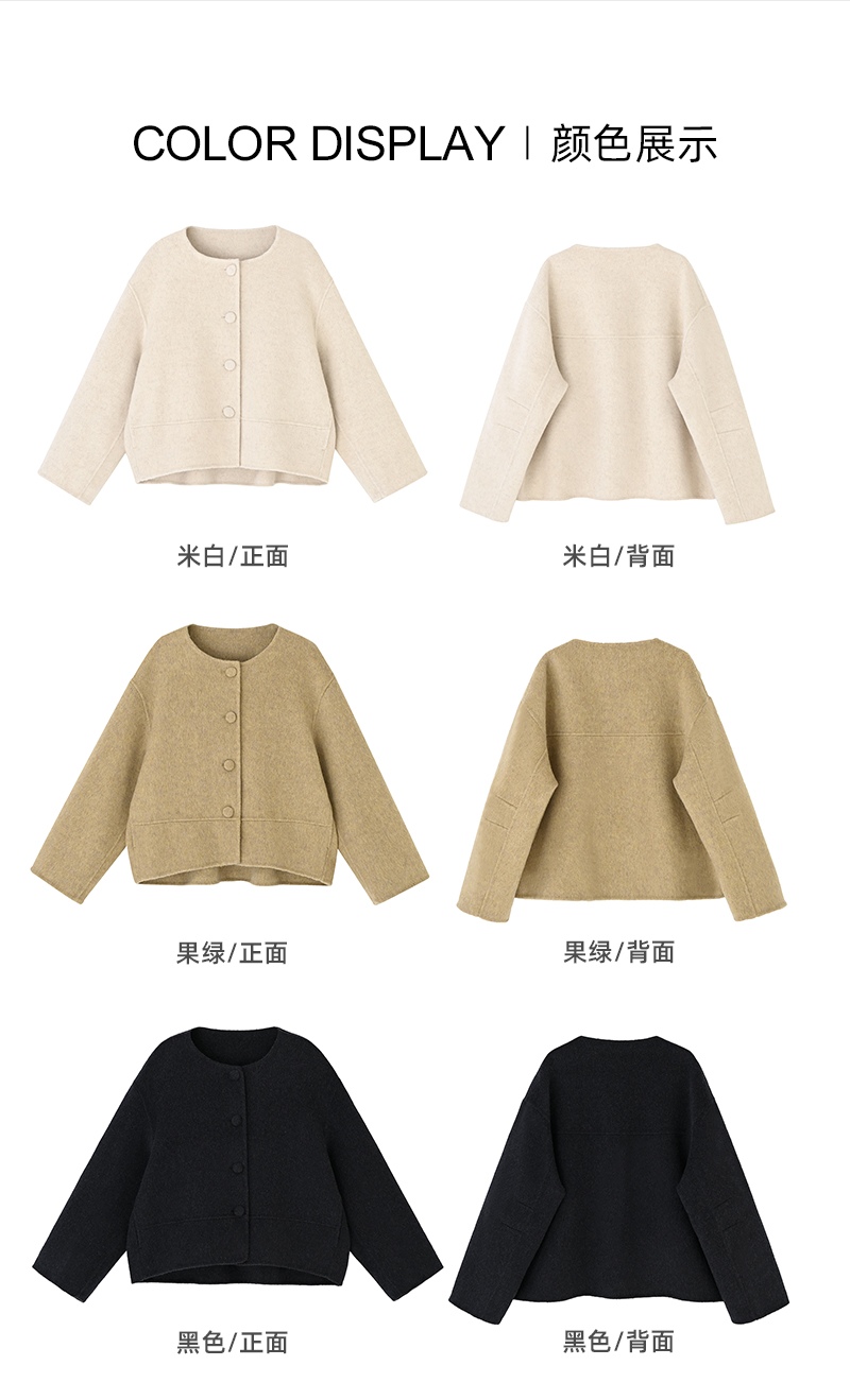 女装圆领宽松阔版羊毛短款双面呢外套-657F5242005