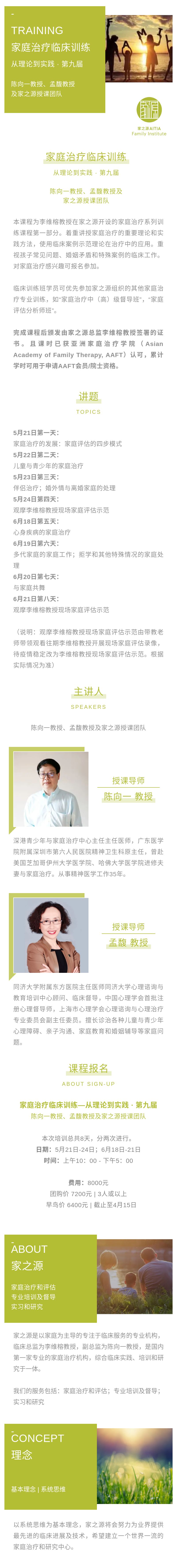 家庭治疗临床训练——从理论到实践·第九届 | 陈向一教授、孟馥教授及家之源授课团队