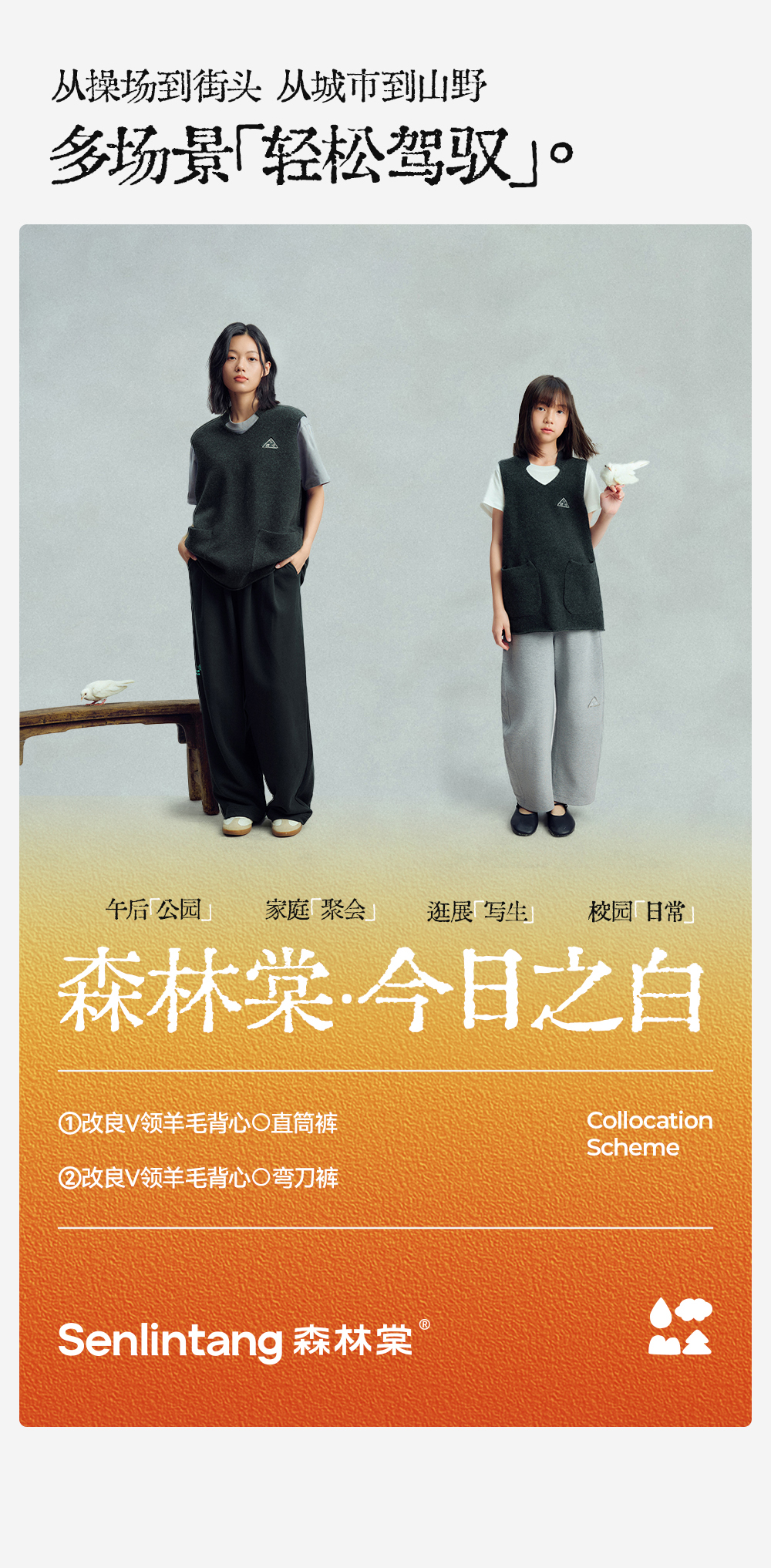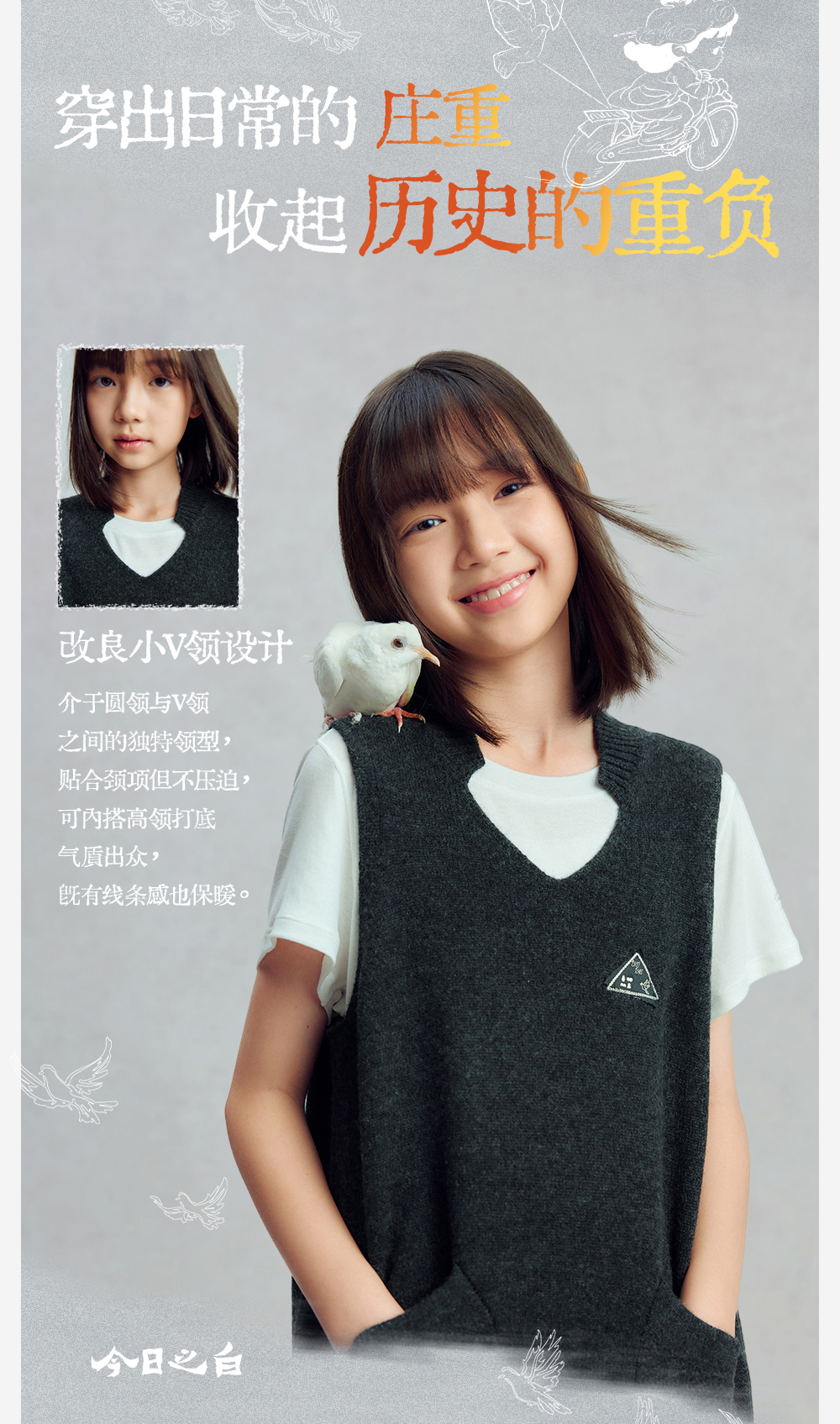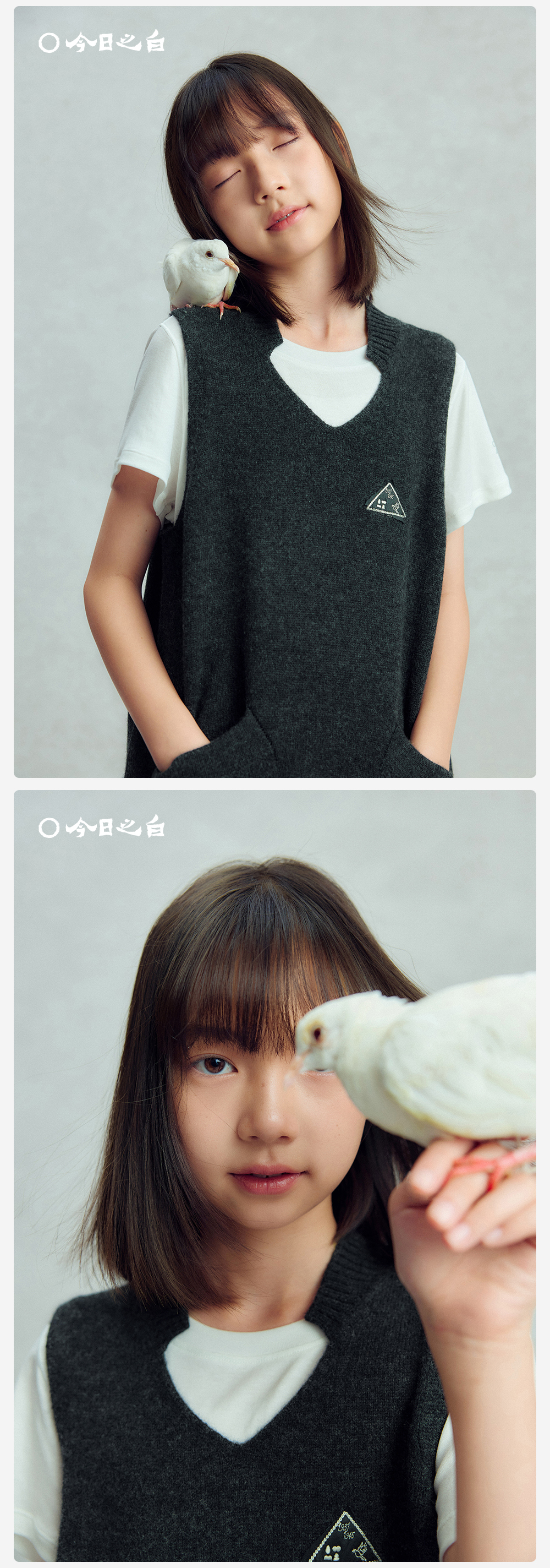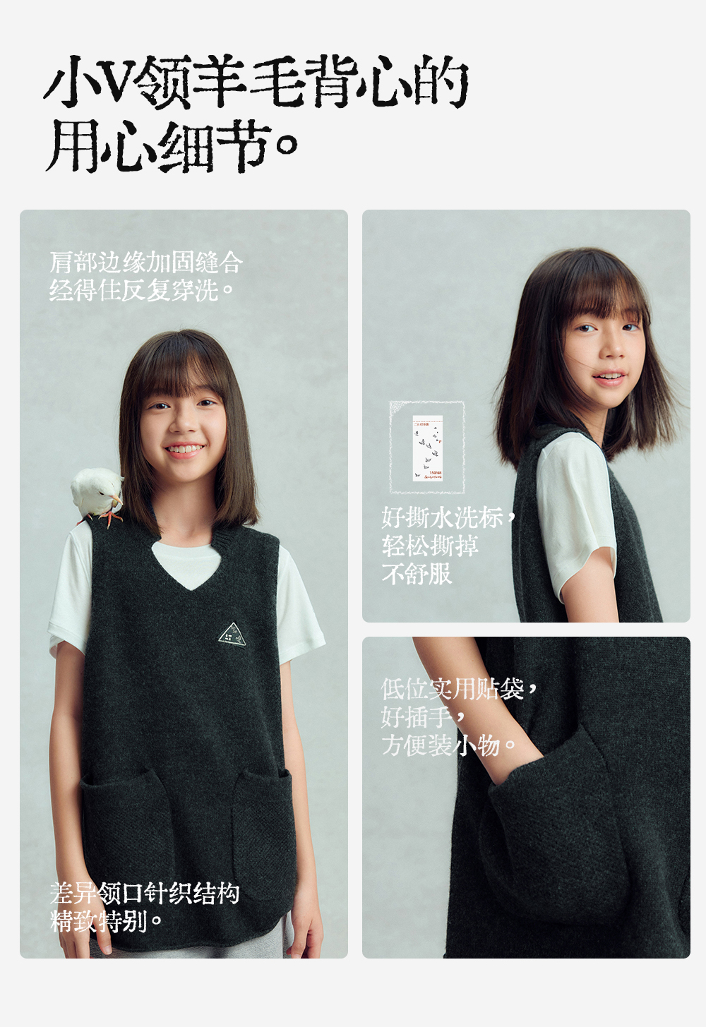 【今日之白系列】森林棠26新款宽松百搭柔软亲肤儿童改良V领羊毛背心60625300【HZ】