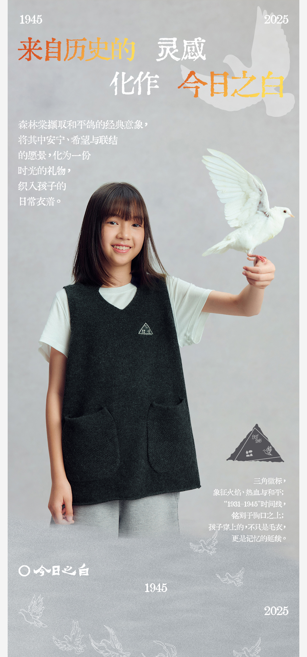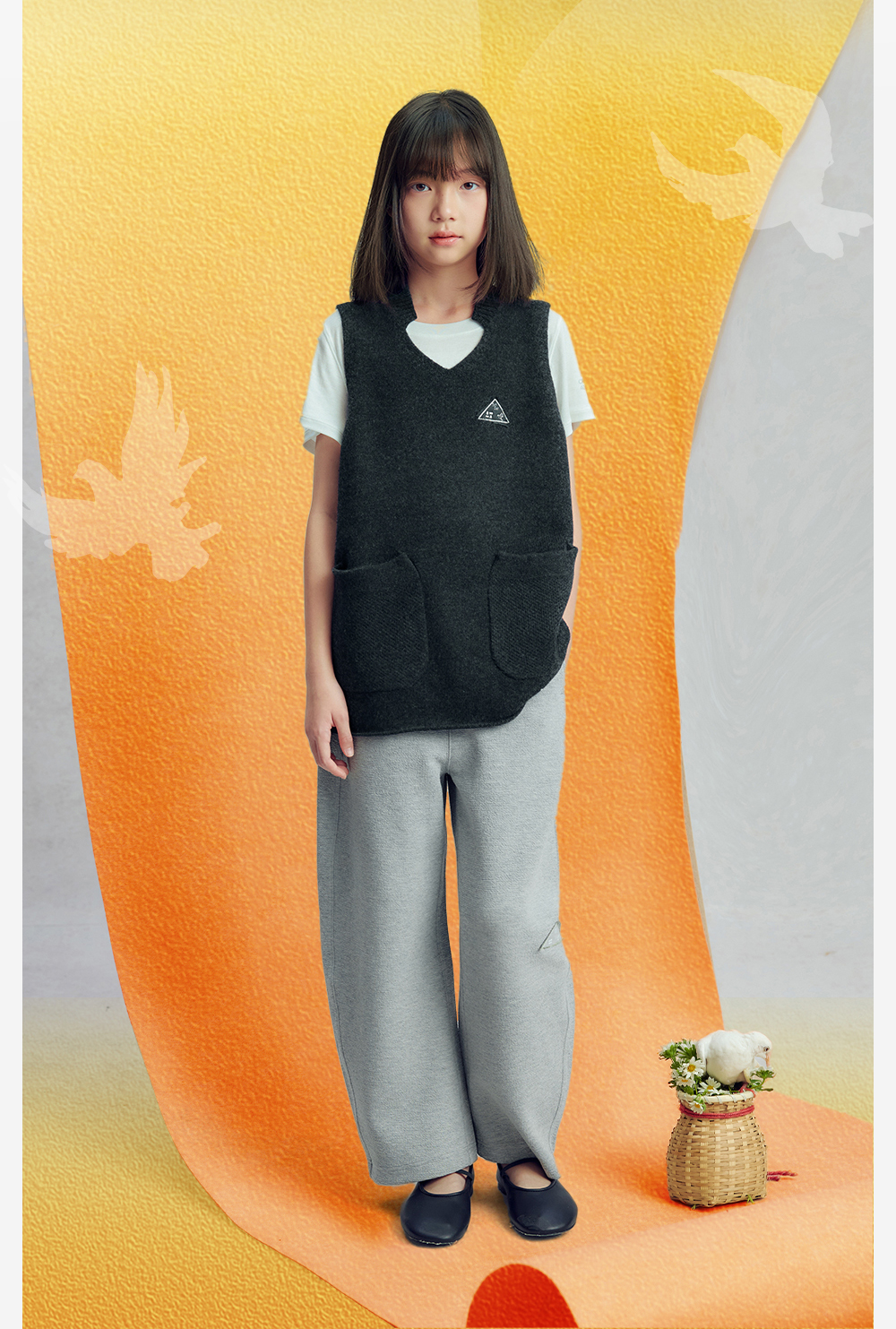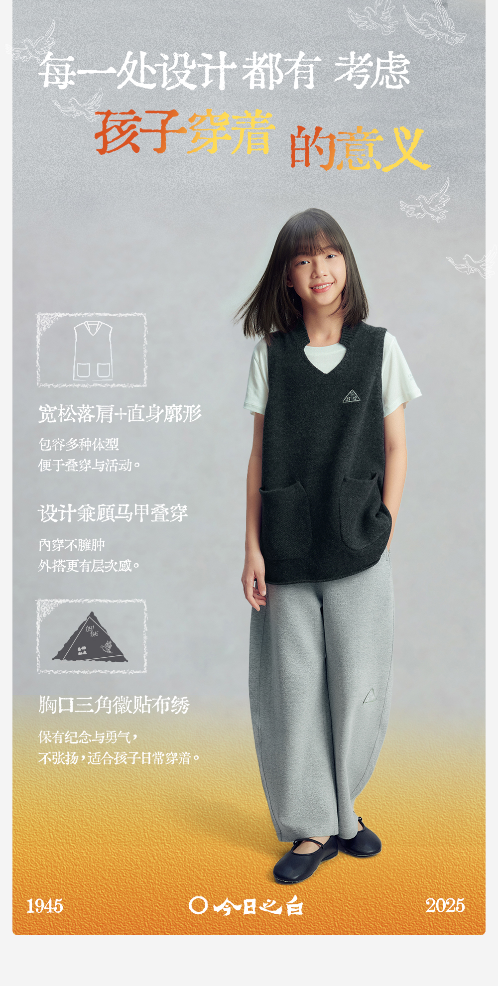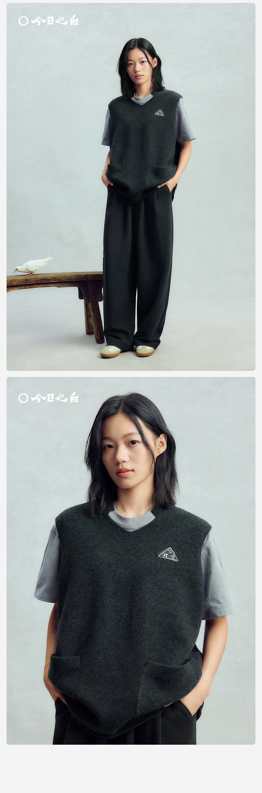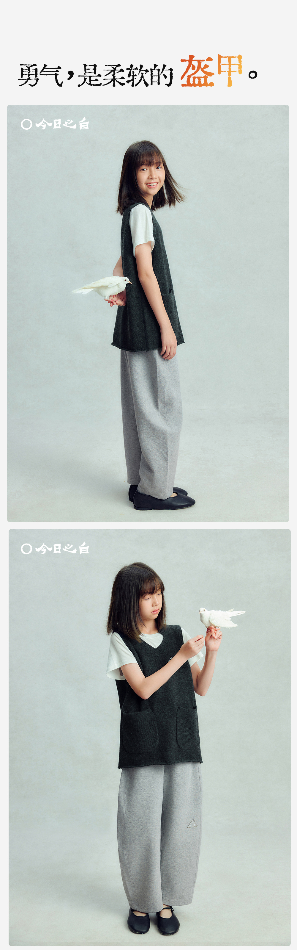 【今日之白系列】森林棠26新款宽松百搭柔软亲肤儿童改良V领羊毛背心60625300【HZ】