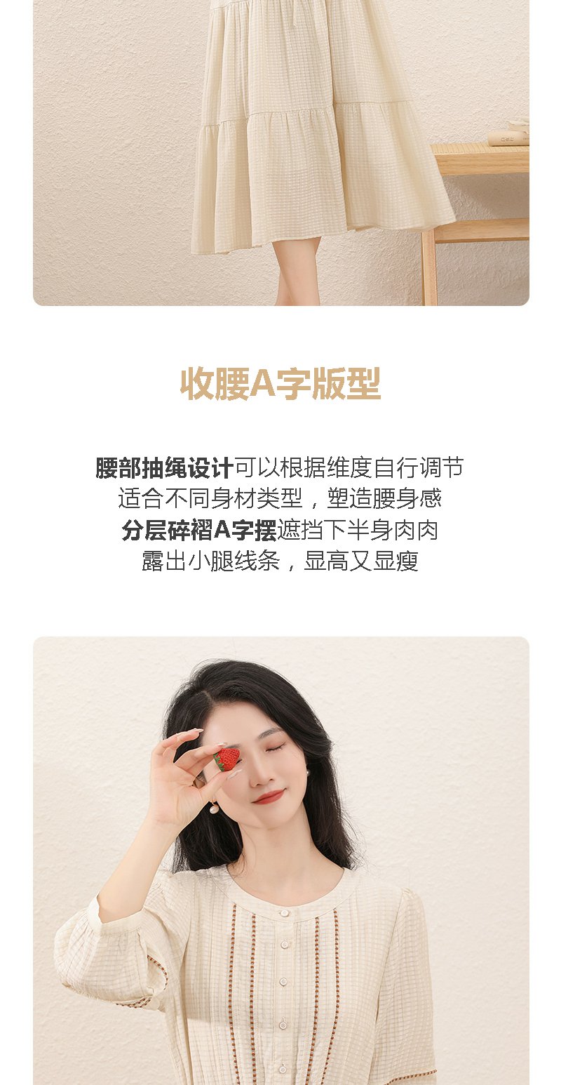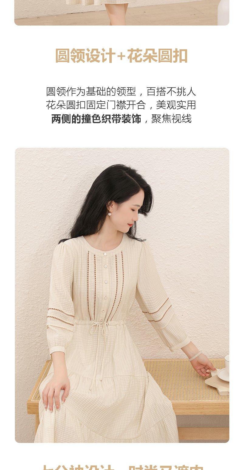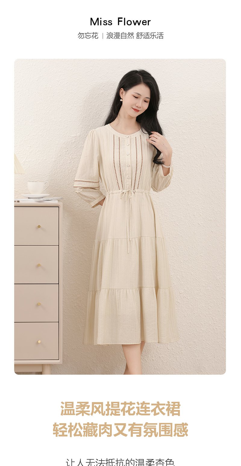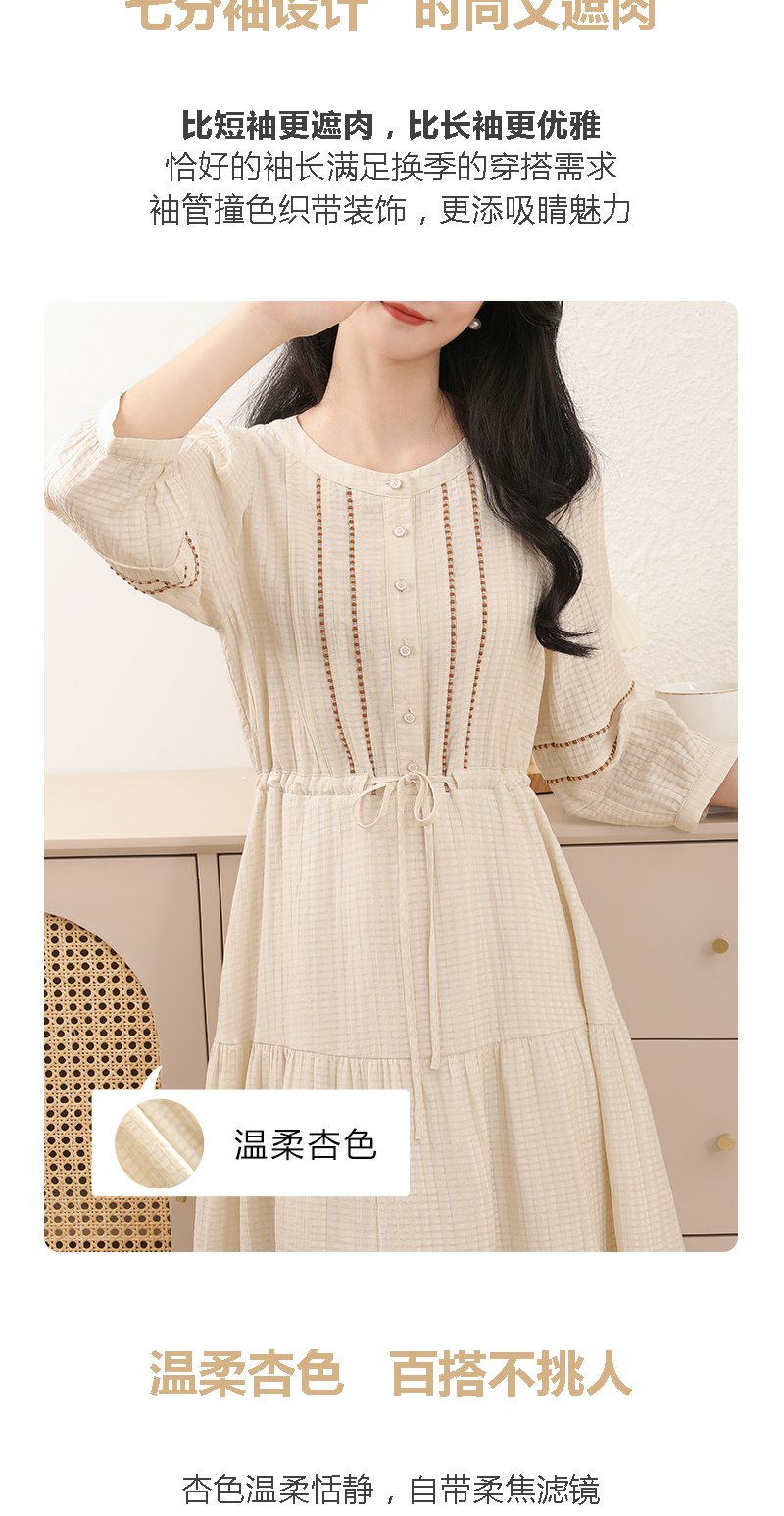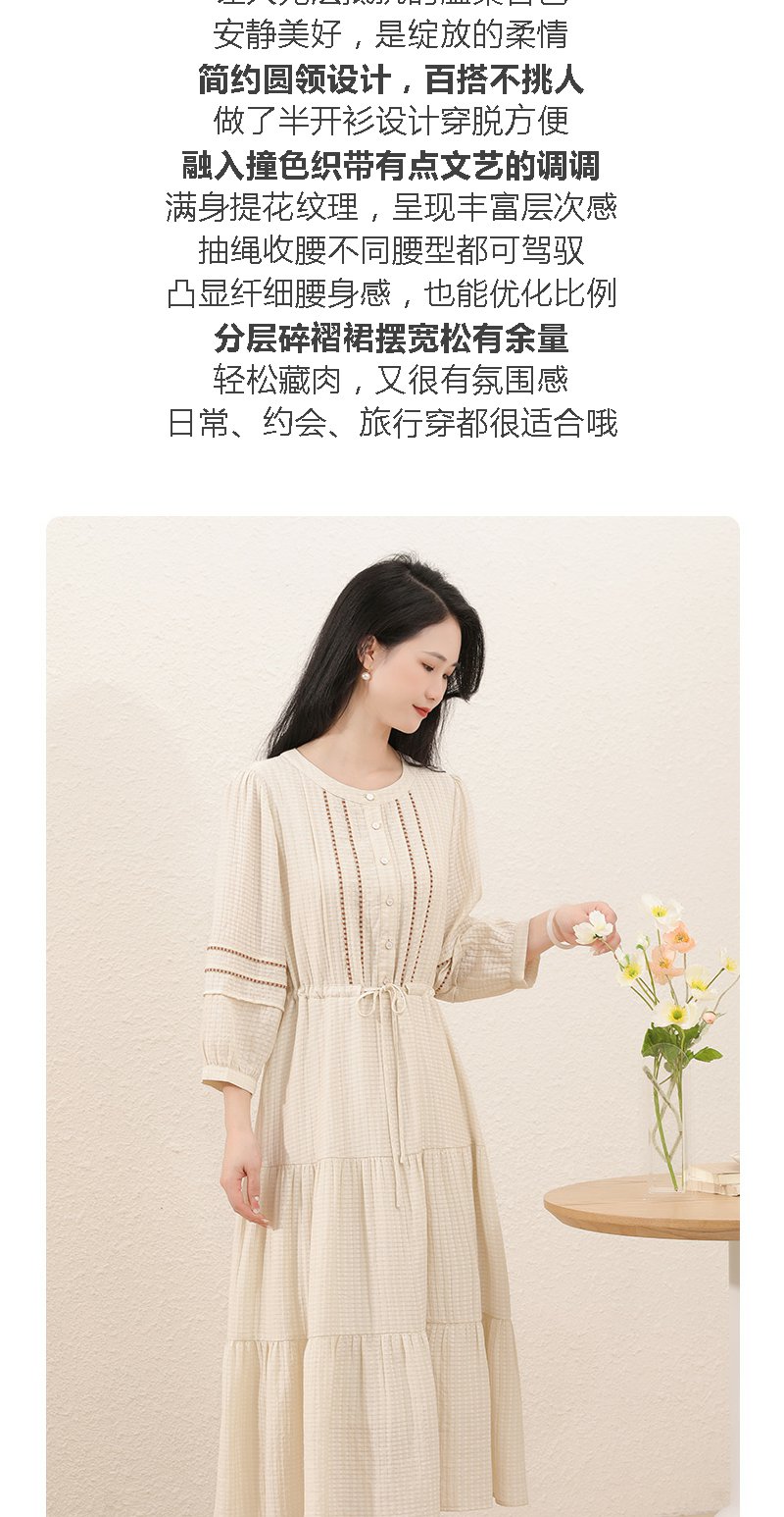 勿忘花杏色减龄温柔风重工连衣裙女2024秋季新款长裙高腰显瘦裙子