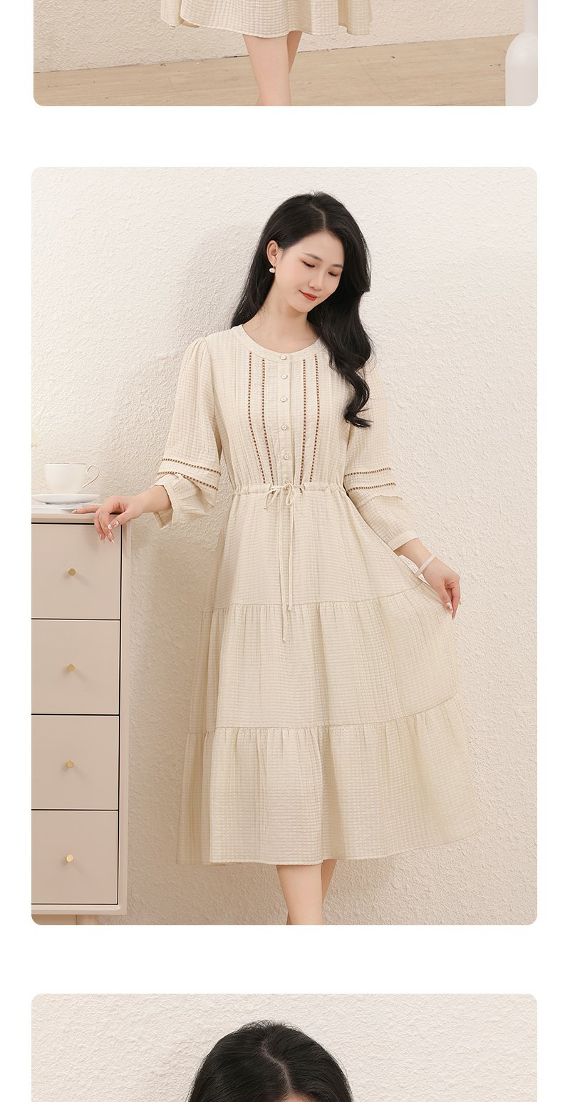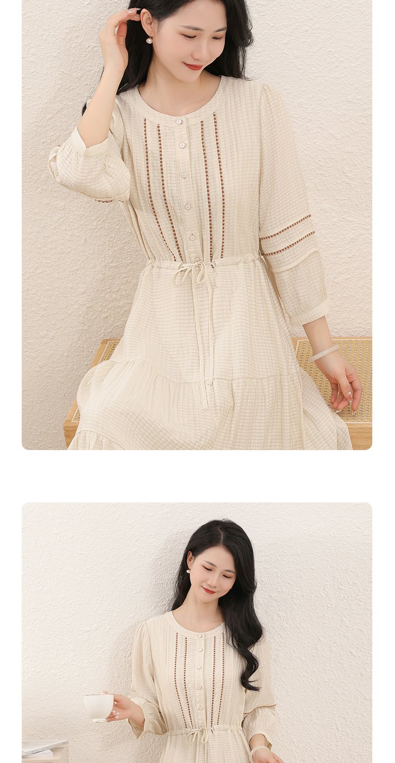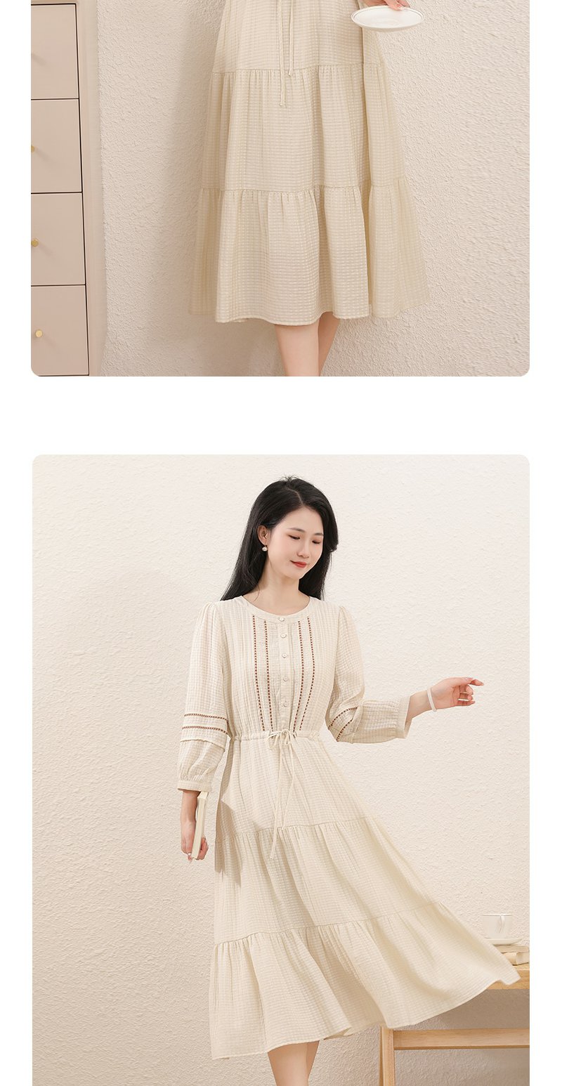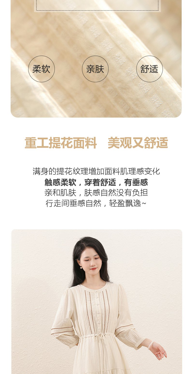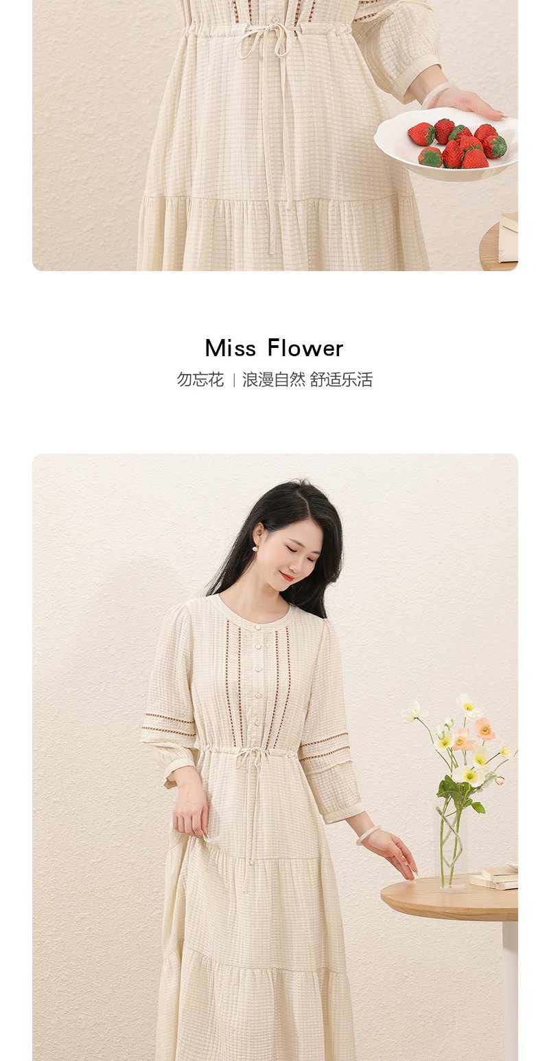 勿忘花杏色减龄温柔风重工连衣裙女2024秋季新款长裙高腰显瘦裙子