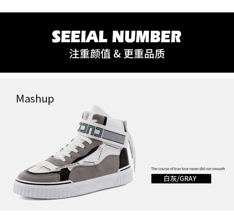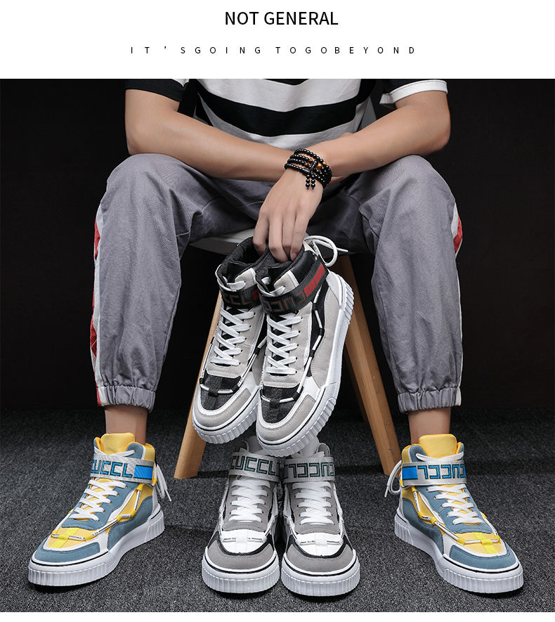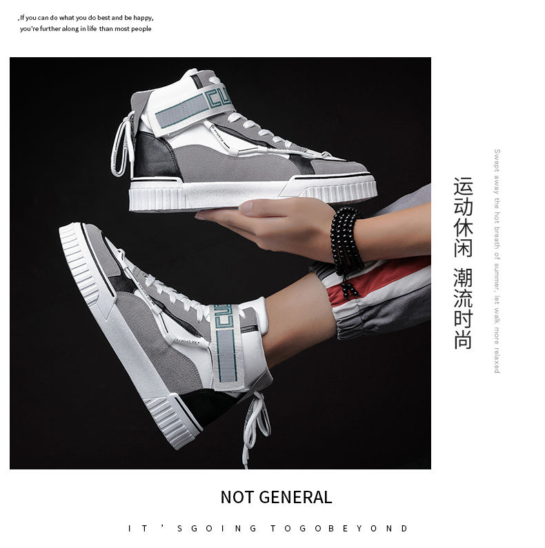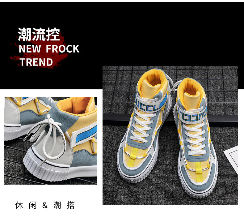 男鞋秋季 高帮鞋男韩版潮流运动板鞋 百搭休闲潮鞋子