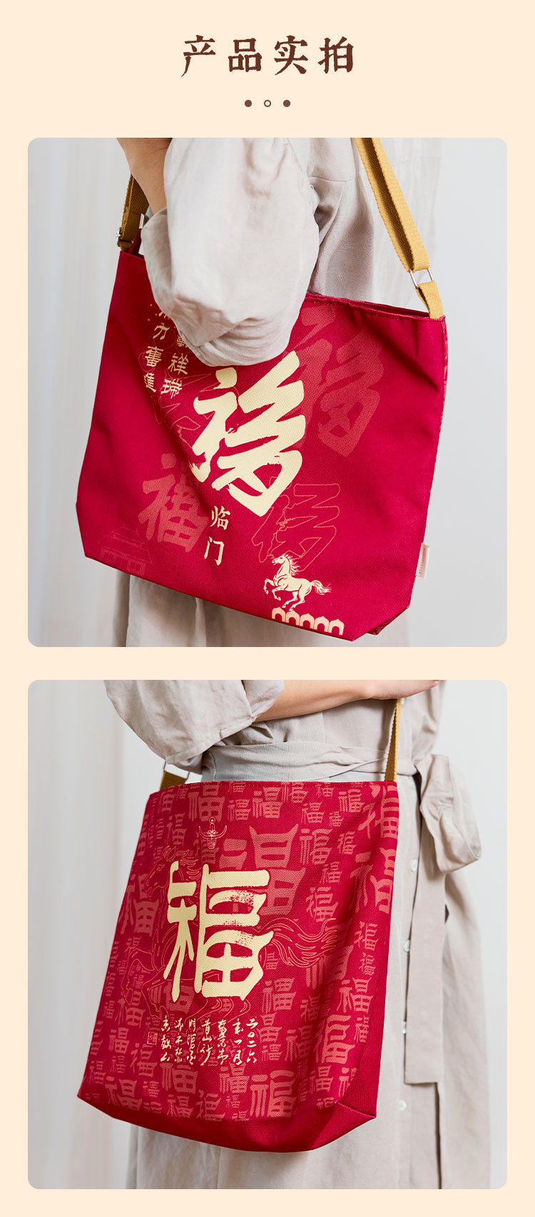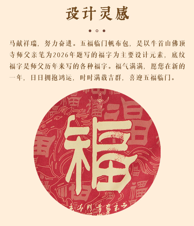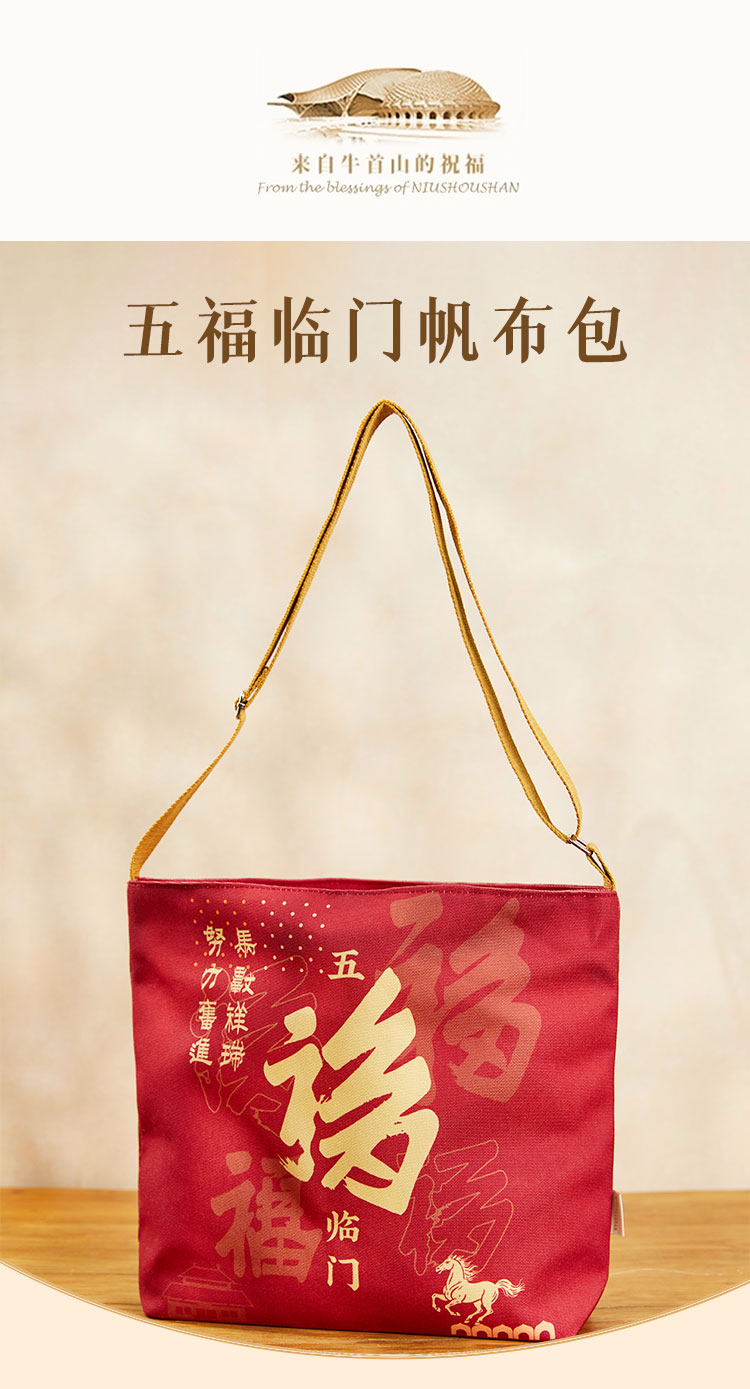 牛首山文创五福临门帆布包2026新年礼物南京纪念品斜挎包手提包