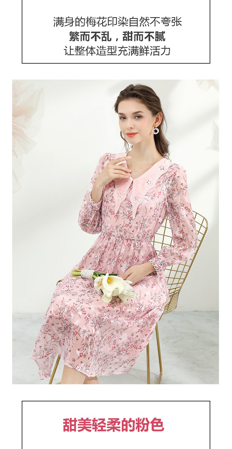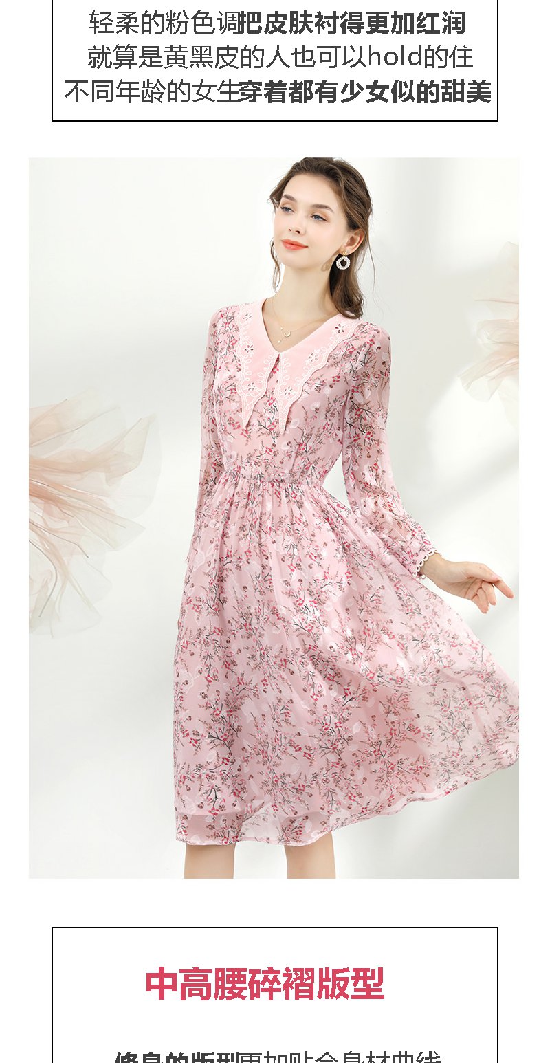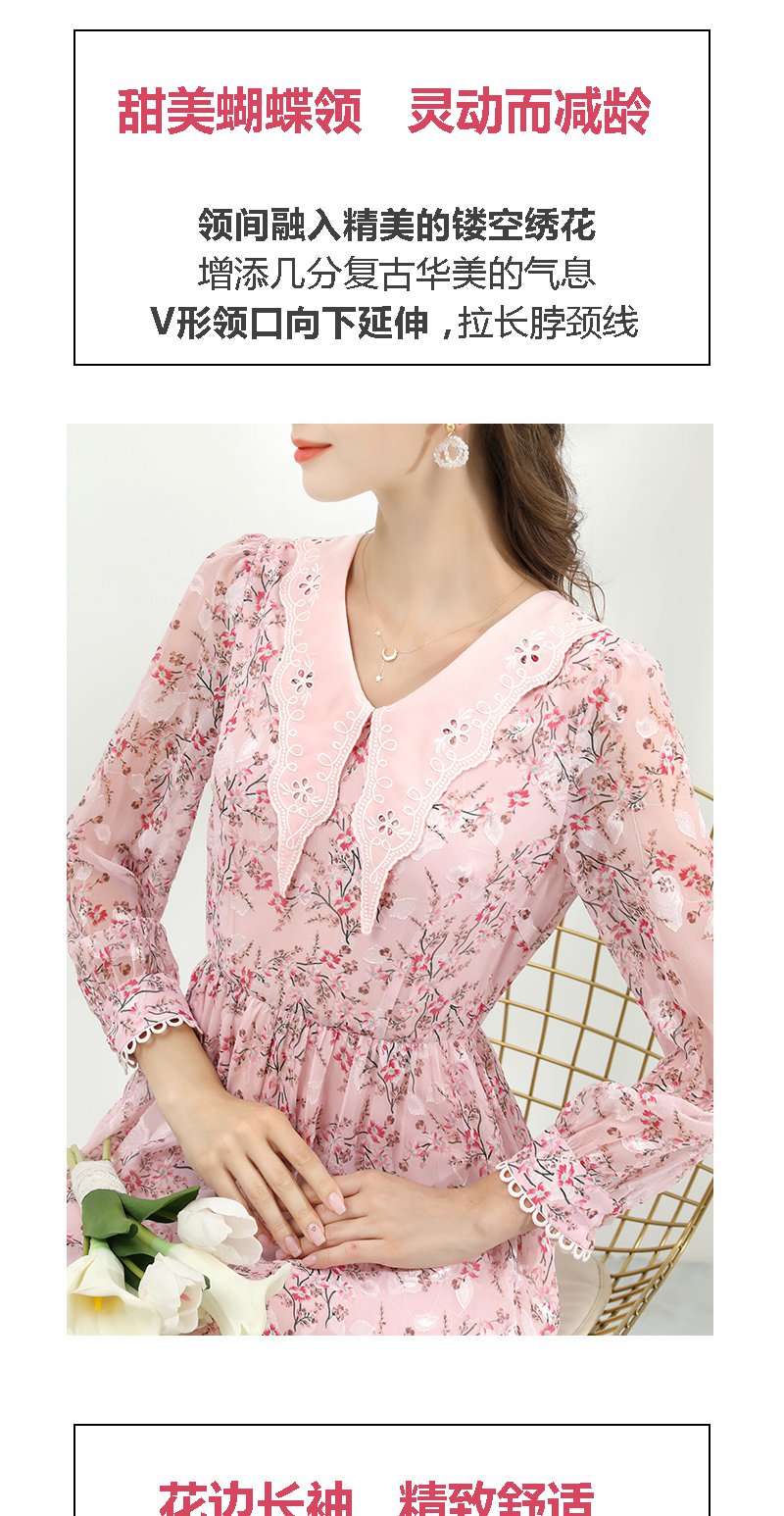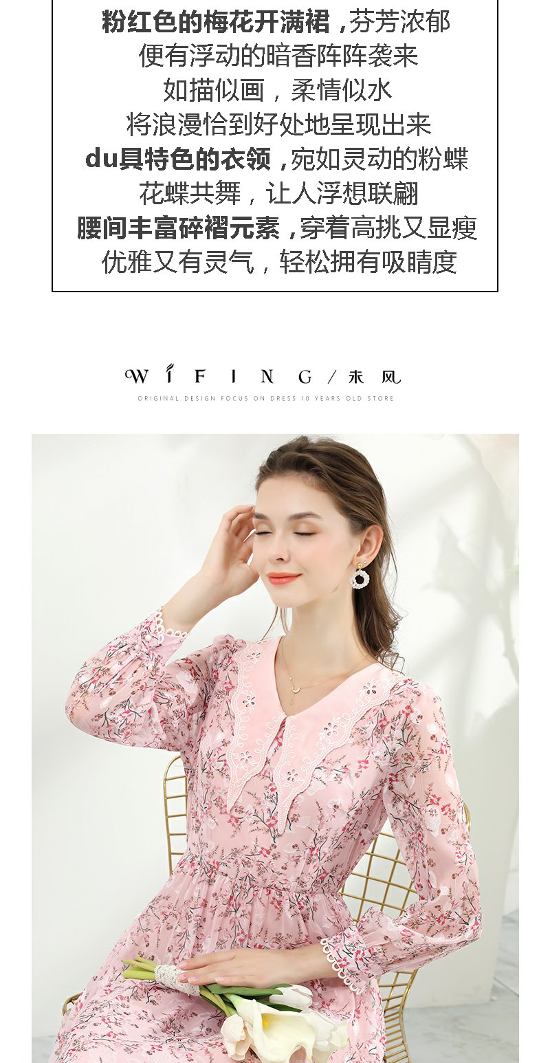 未风粉色雪纺碎花连衣裙女春2024春季新款女装气质法式长袖裙子