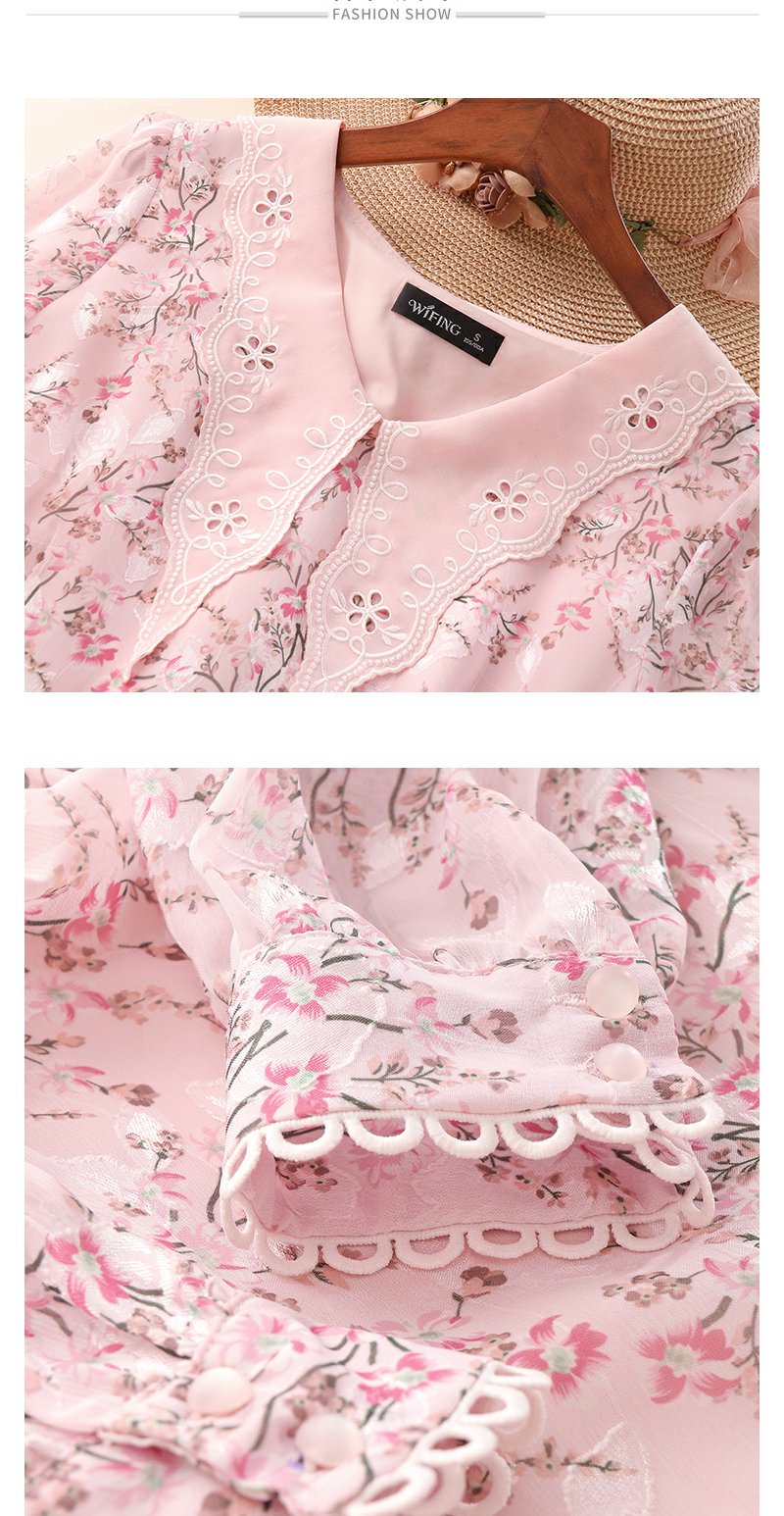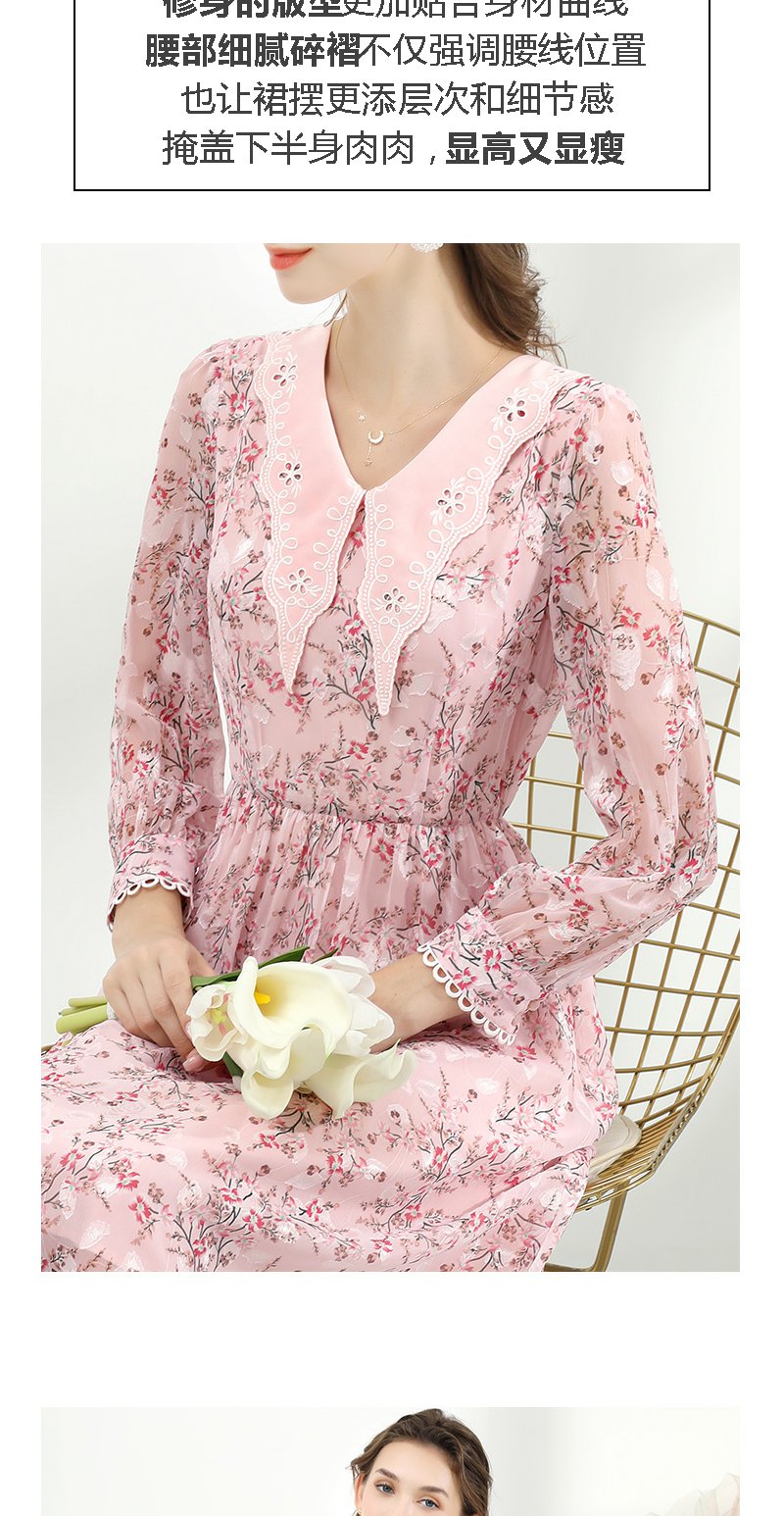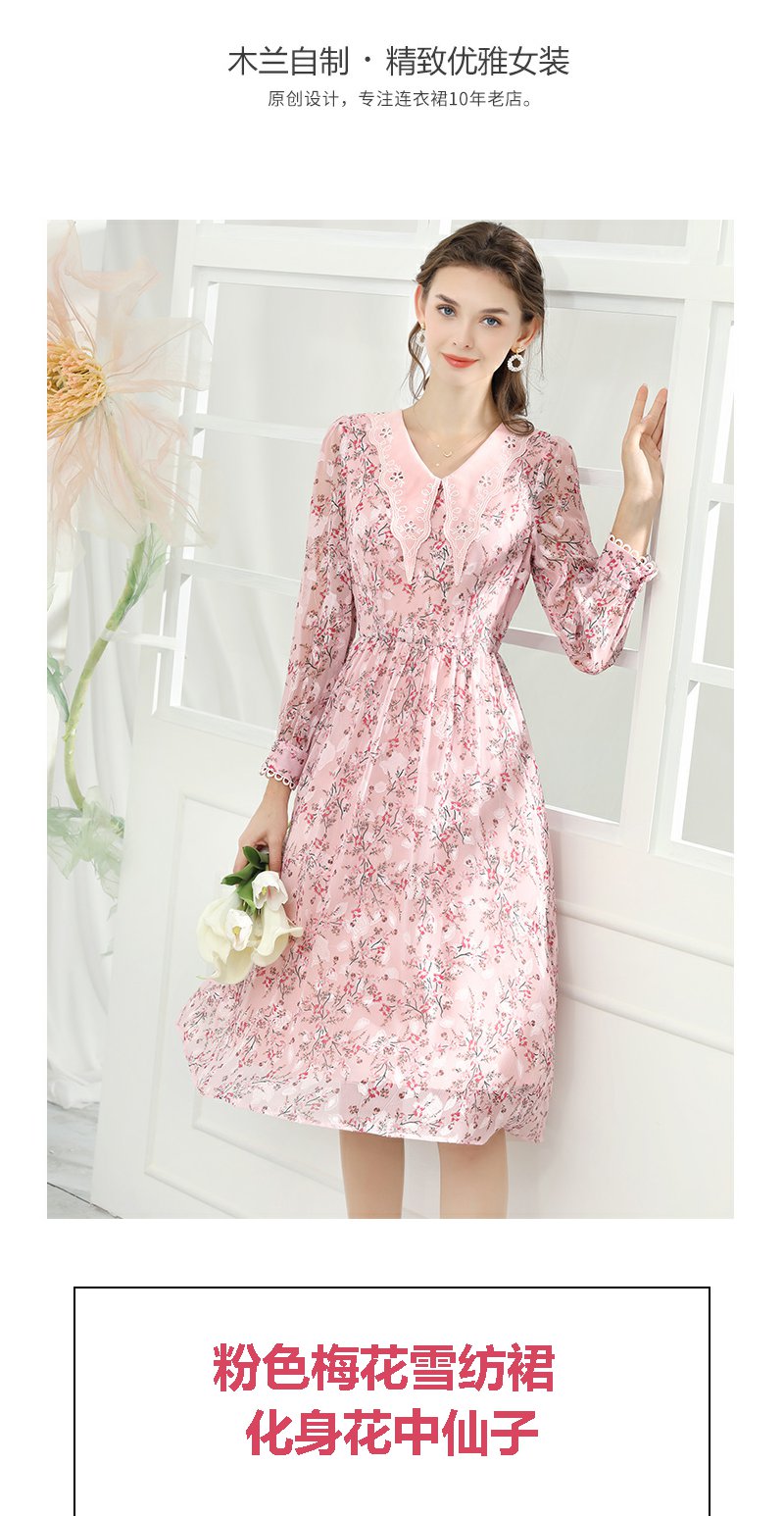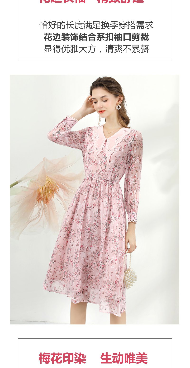 未风粉色雪纺碎花连衣裙女春2024春季新款女装气质法式长袖裙子