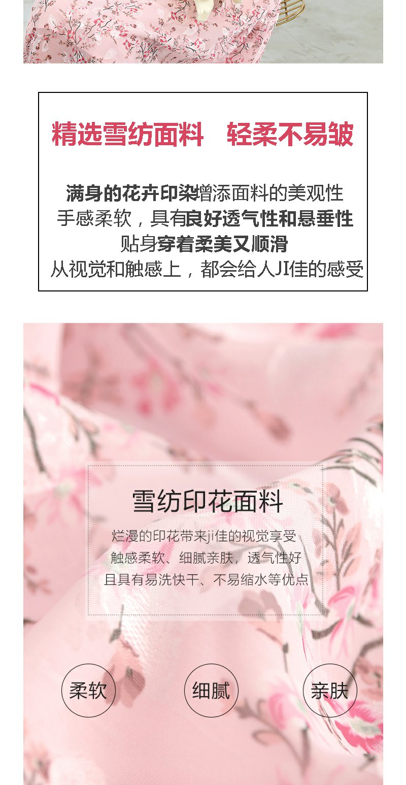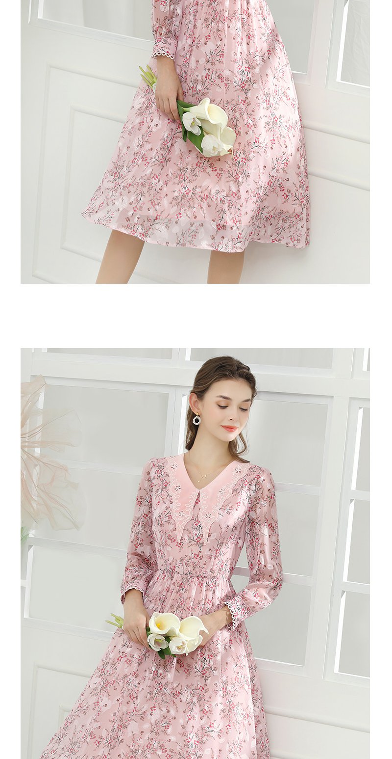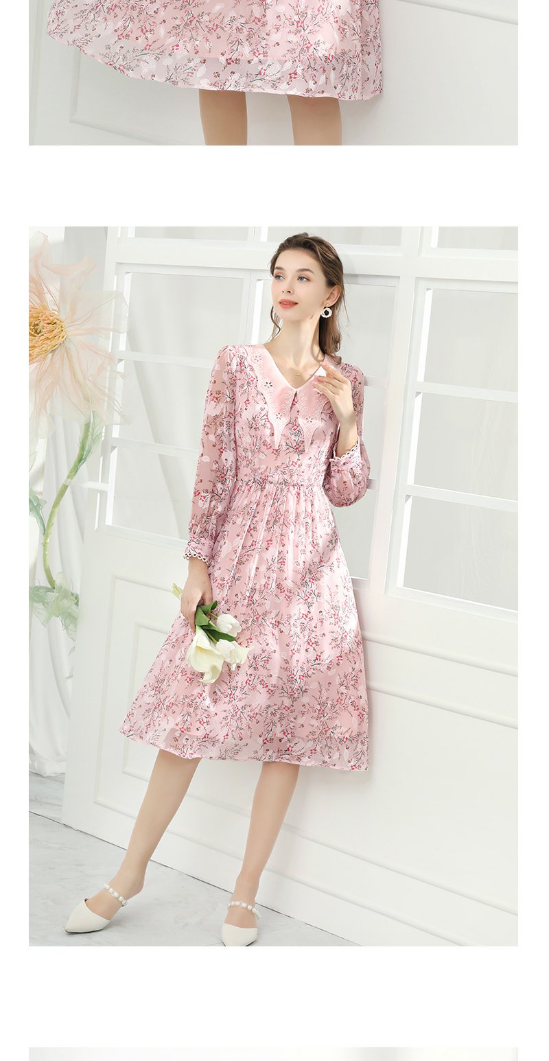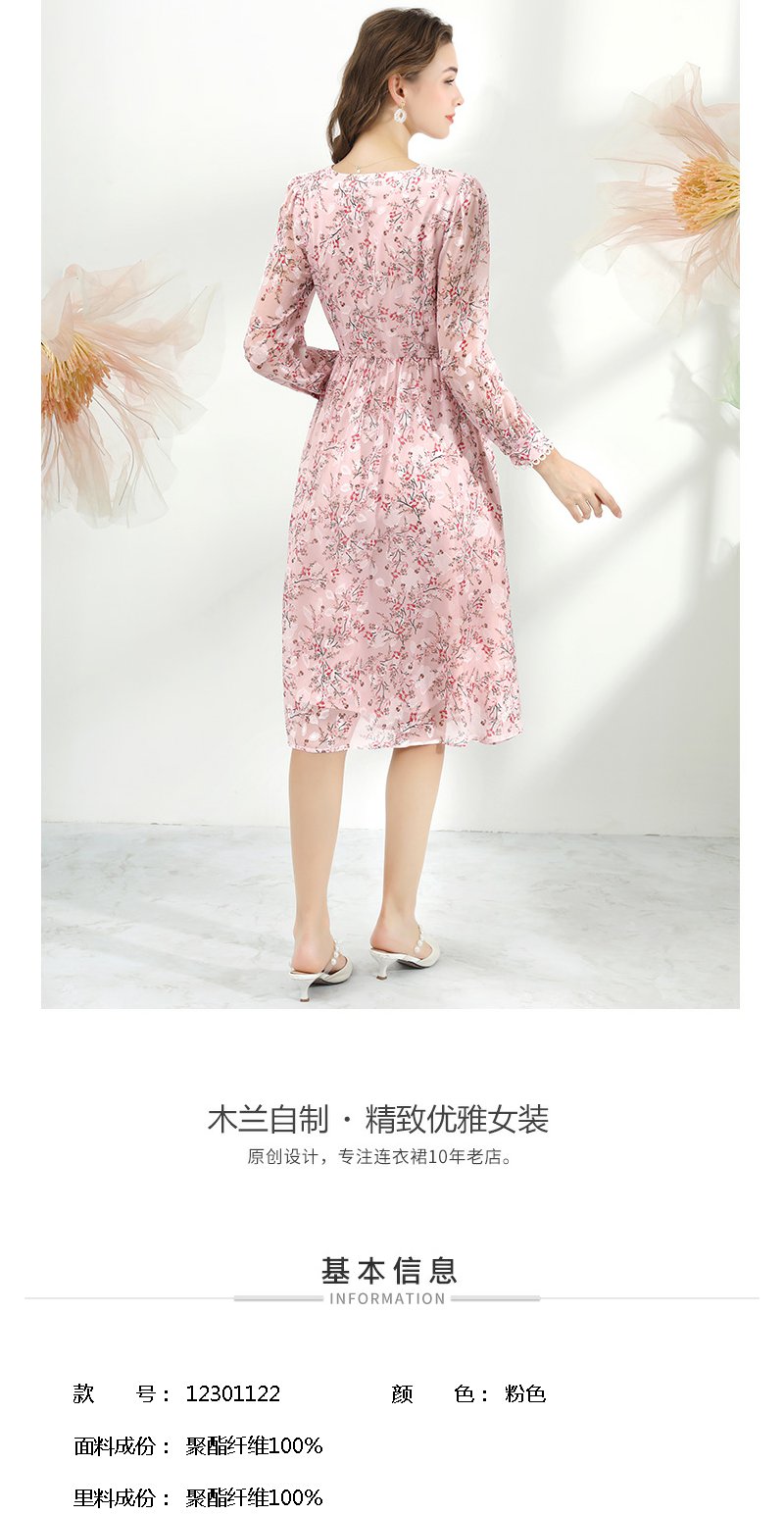 未风粉色雪纺碎花连衣裙女春2024春季新款女装气质法式长袖裙子