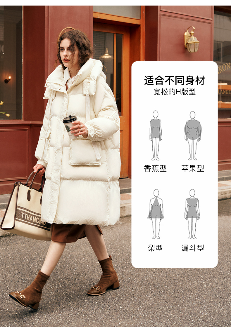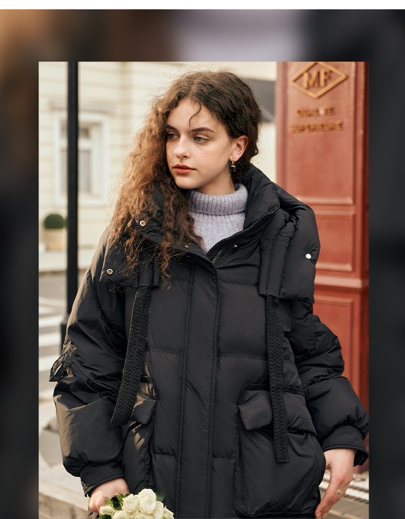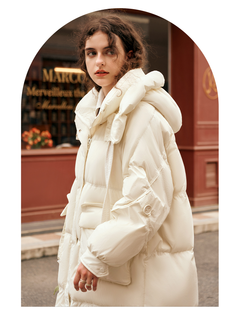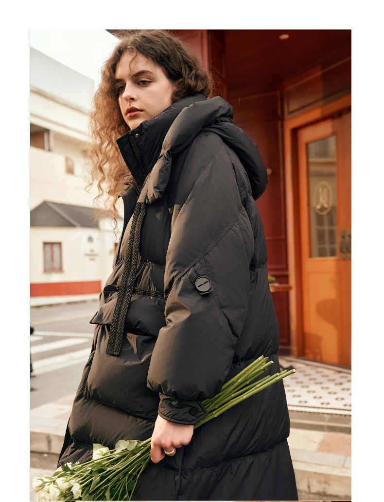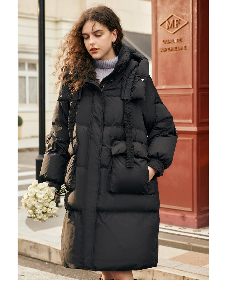 欧芮儿时尚宽松连帽系带长款羽绒服