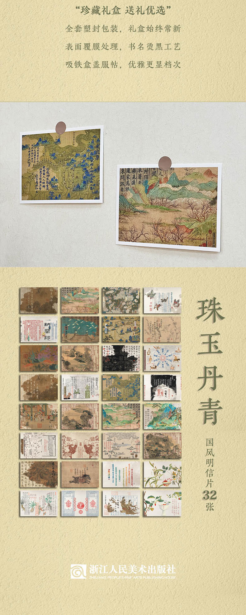 珠玉丹青 琯朗文创 新中式国风明信片礼盒装300g白卡32张古书古画二创现代元素与古典文化相遇艺术卡片宋徽宗瑞鹤图留言祝福卡贺卡