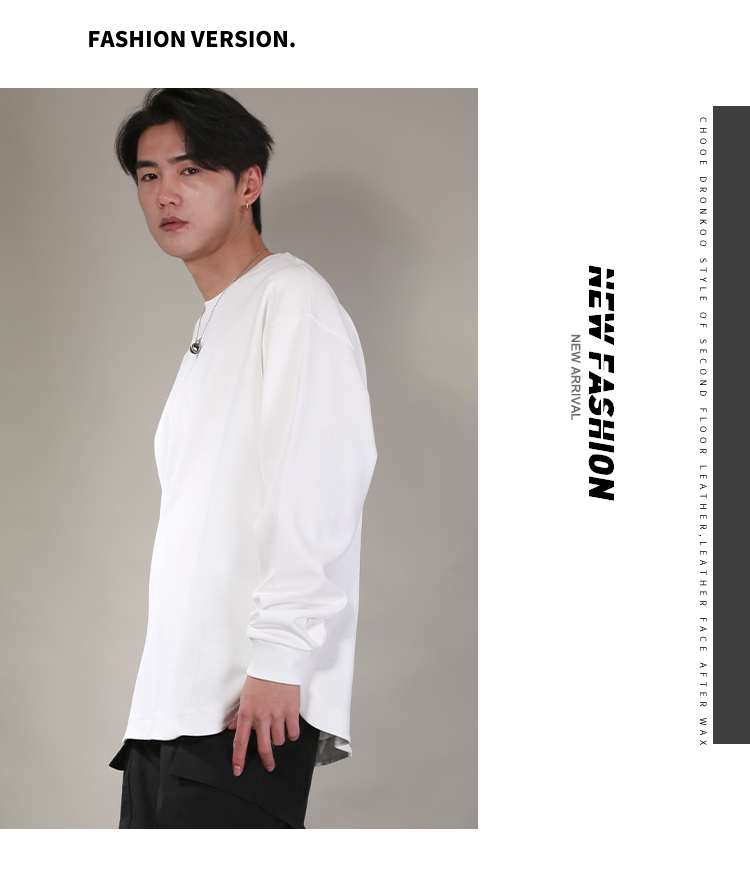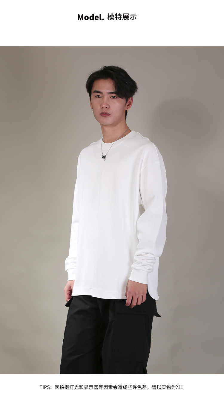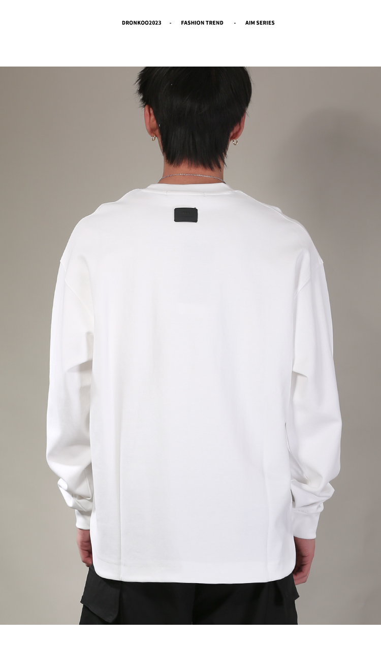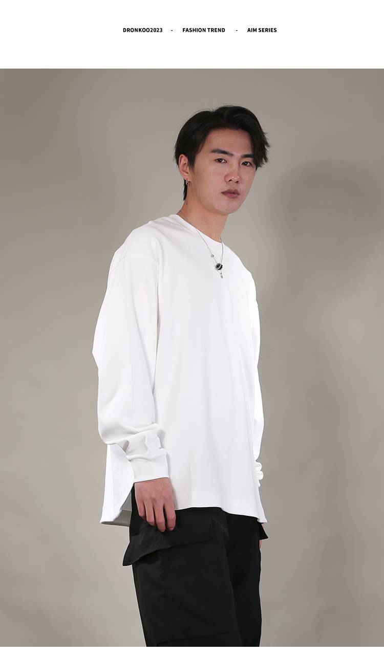 DRONKOO 2026 圆领后中皮标侧开衩弧摆微阔长袖中厚T恤