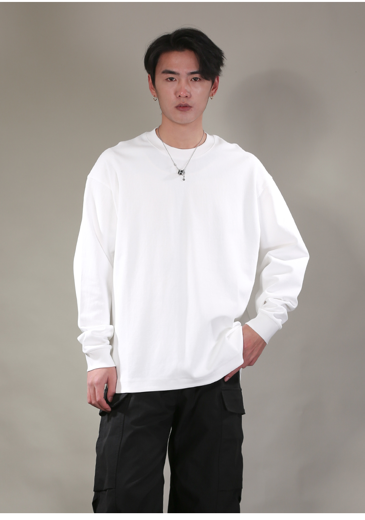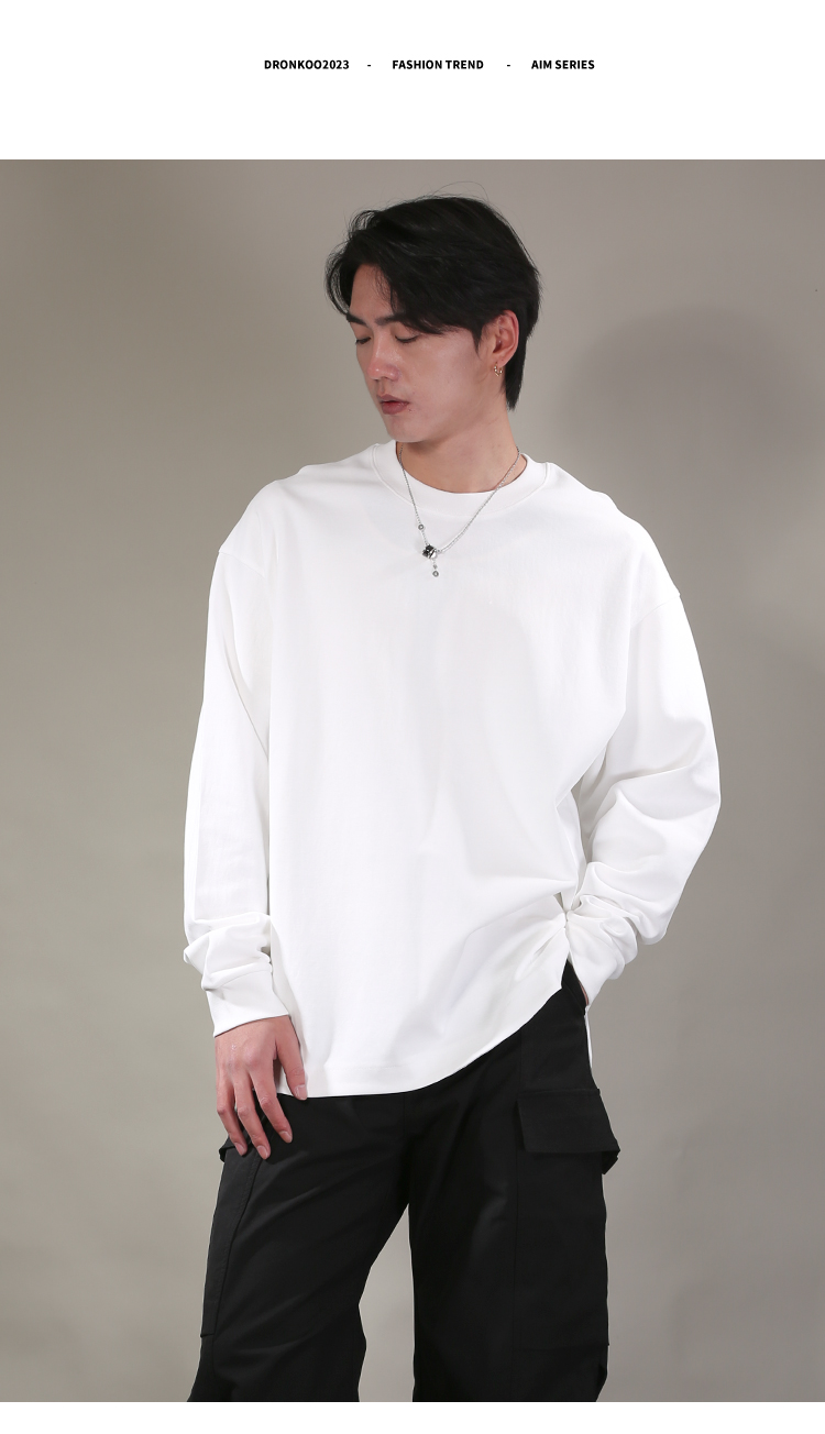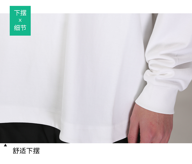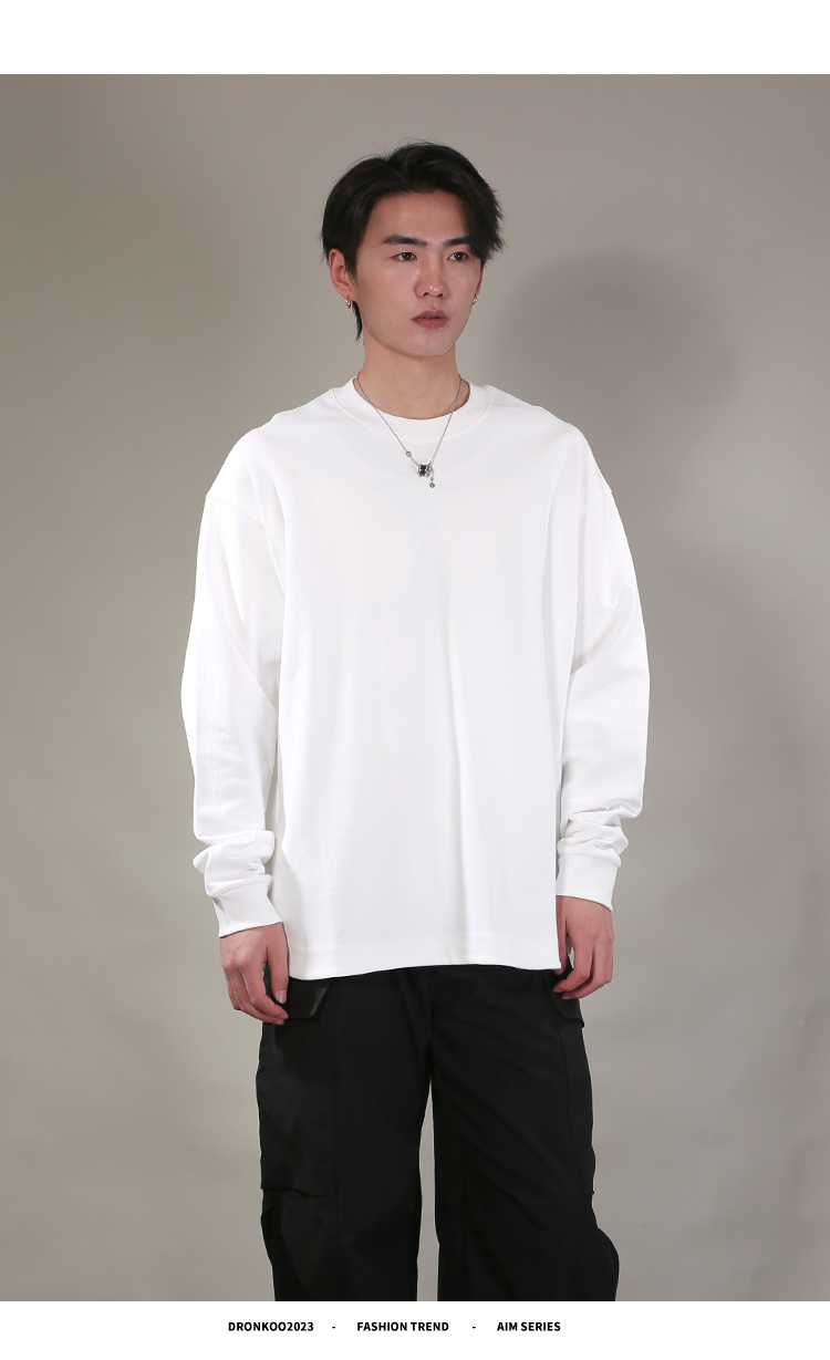 DRONKOO 2026 圆领后中皮标侧开衩弧摆微阔长袖中厚T恤