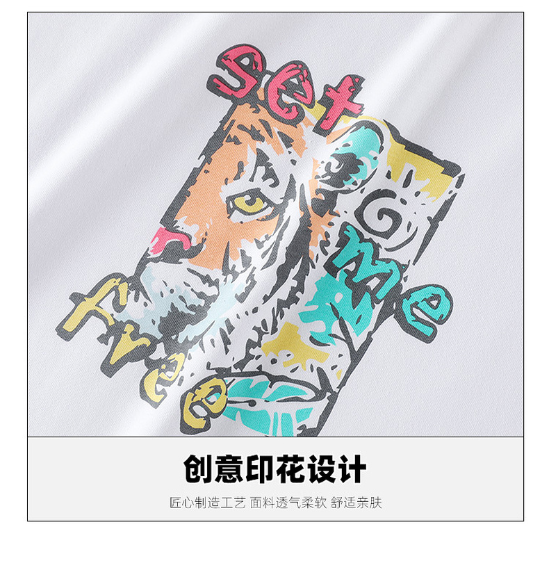 GXG男装【100%棉】25夏季潮流卡通老虎图案男式圆领短袖T恤K&C