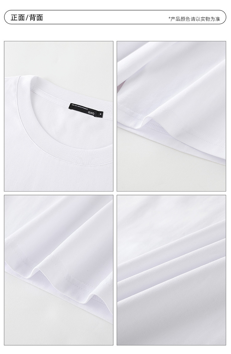 GXG男装 双色精致绣花休闲宽松圆领短袖T恤男生上衣 夏季热卖