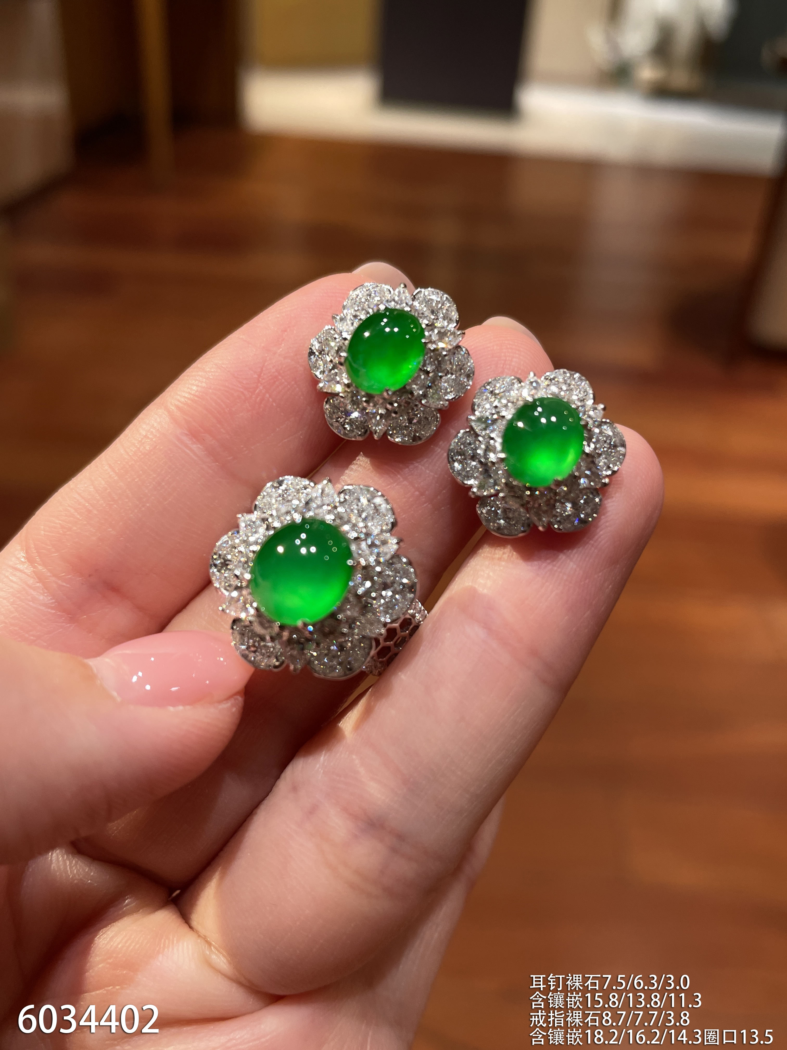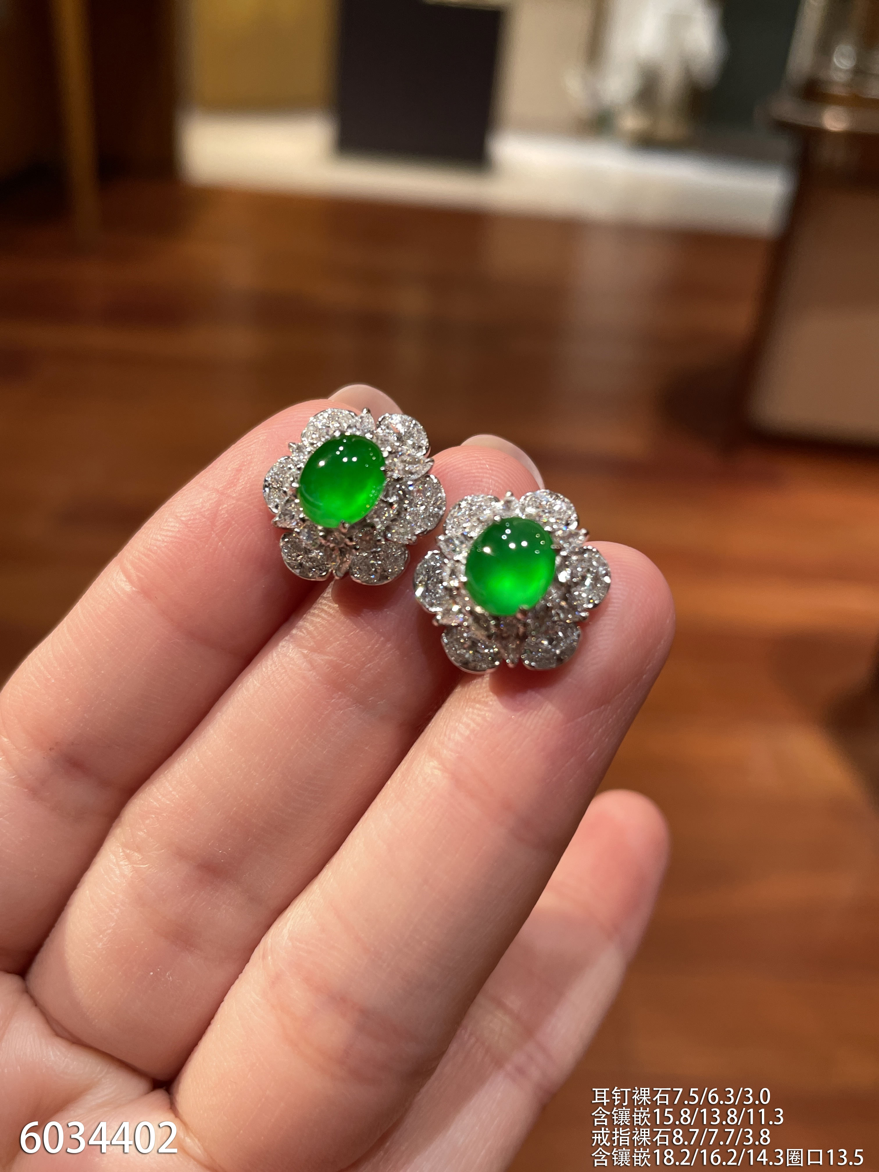 玻璃种帝王绿蛋面耳坠【6023104】具体价格微信咨询