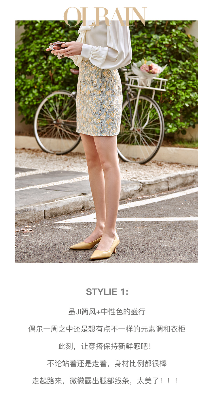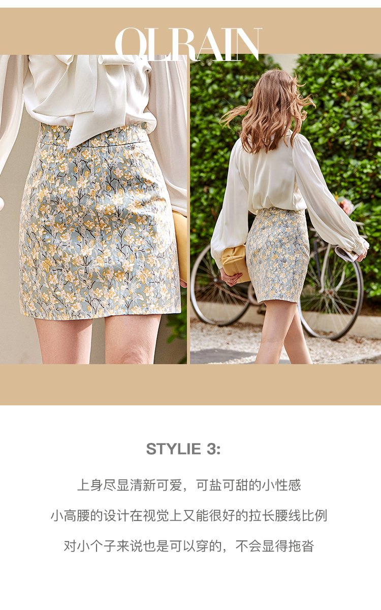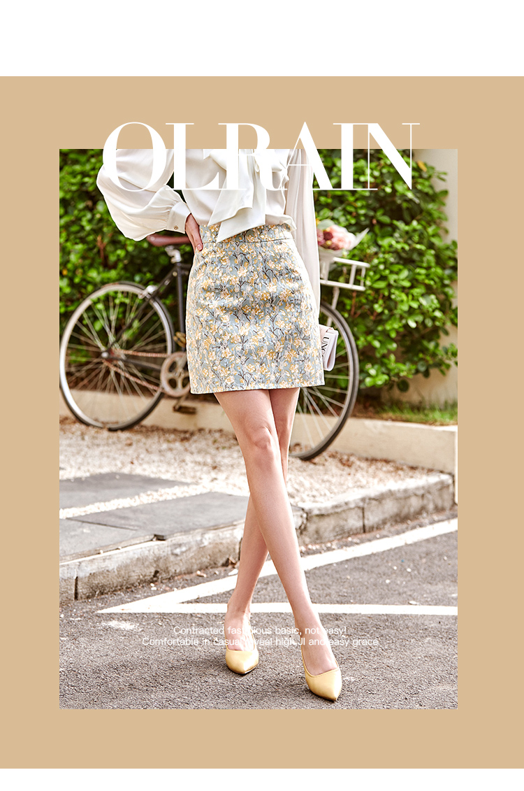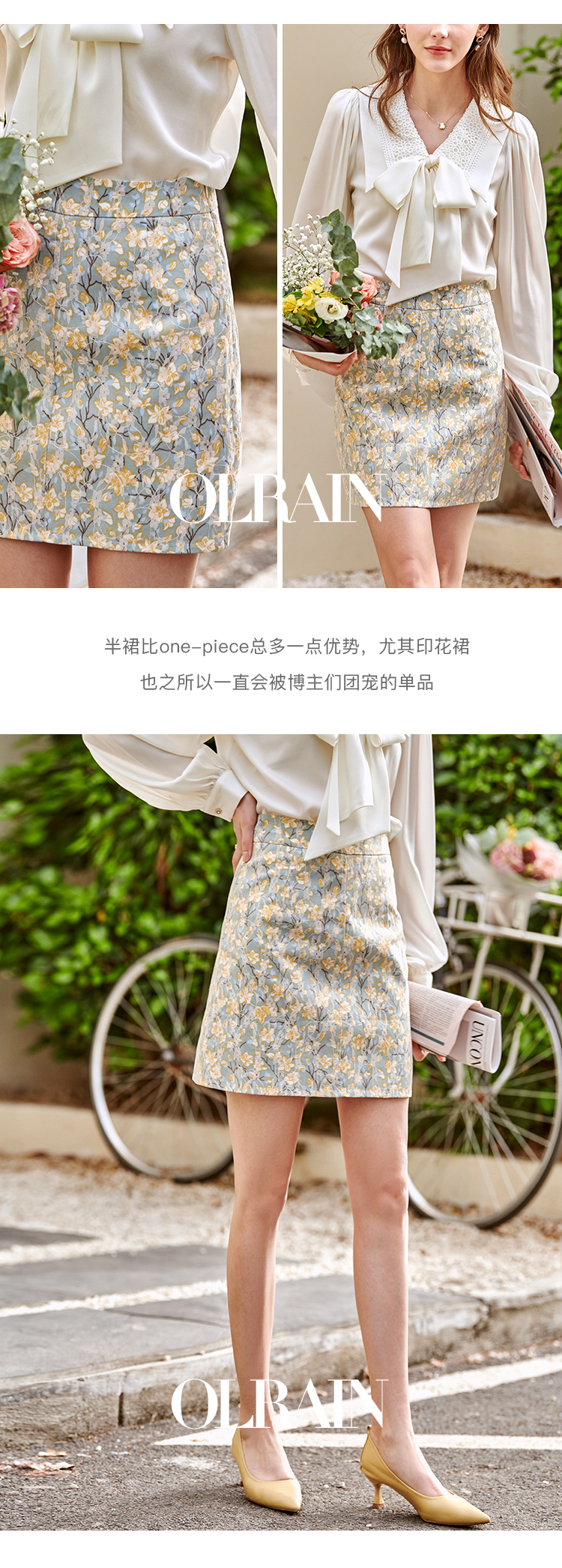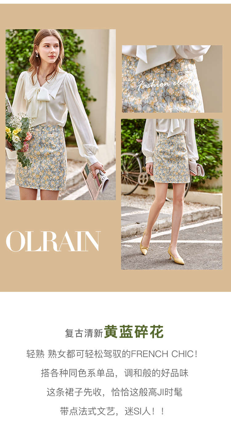 欧芮儿碎花半身裙女2021春夏新款高腰显瘦蕾丝纹理感时髦法式裙子