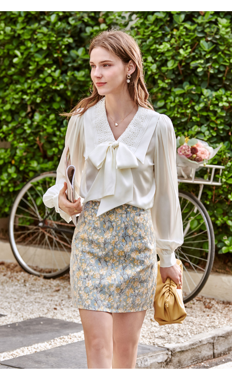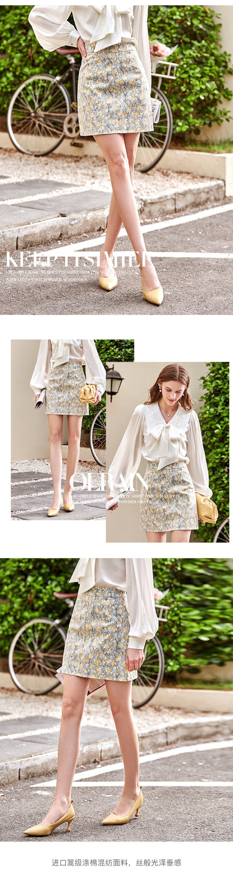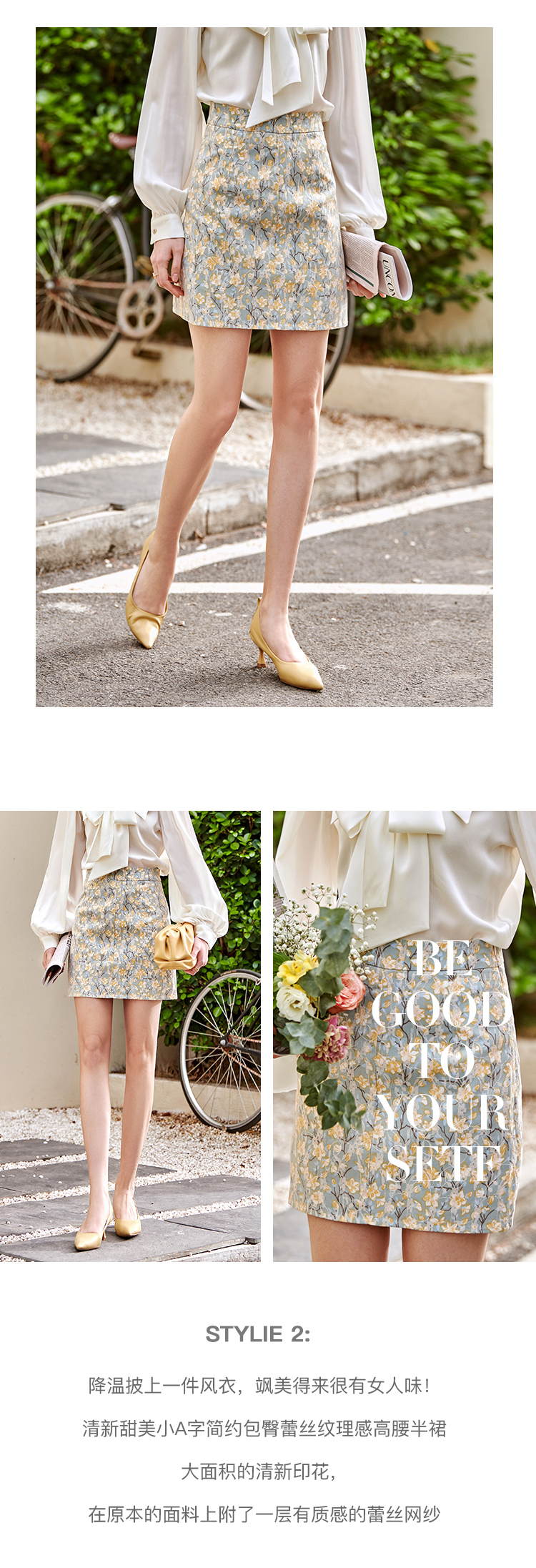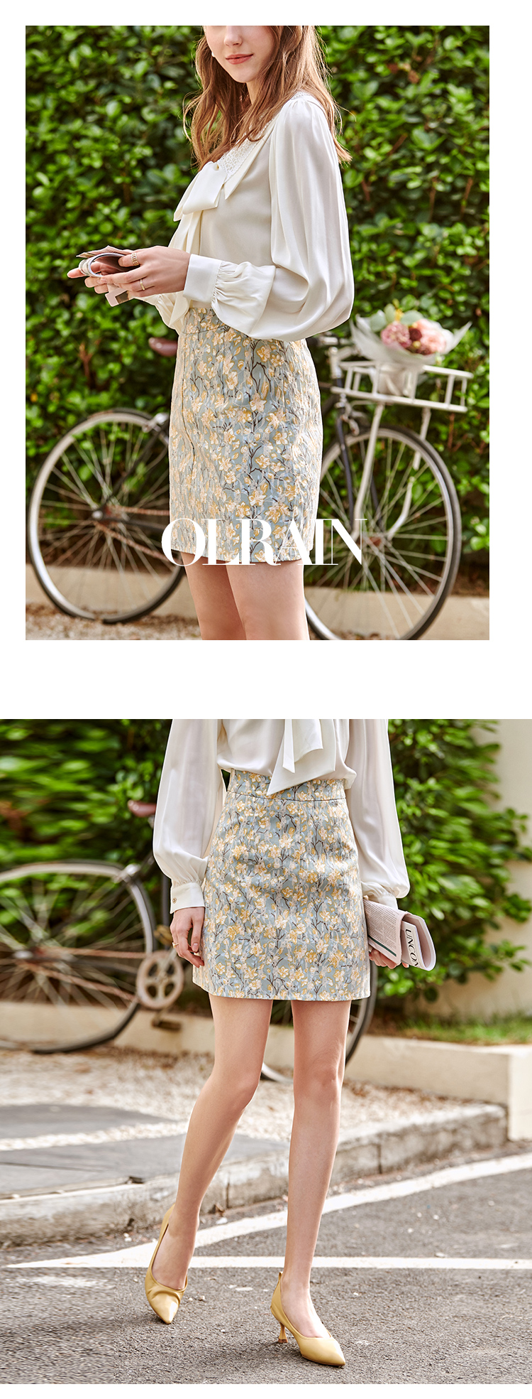 欧芮儿碎花半身裙女2021春夏新款高腰显瘦蕾丝纹理感时髦法式裙子