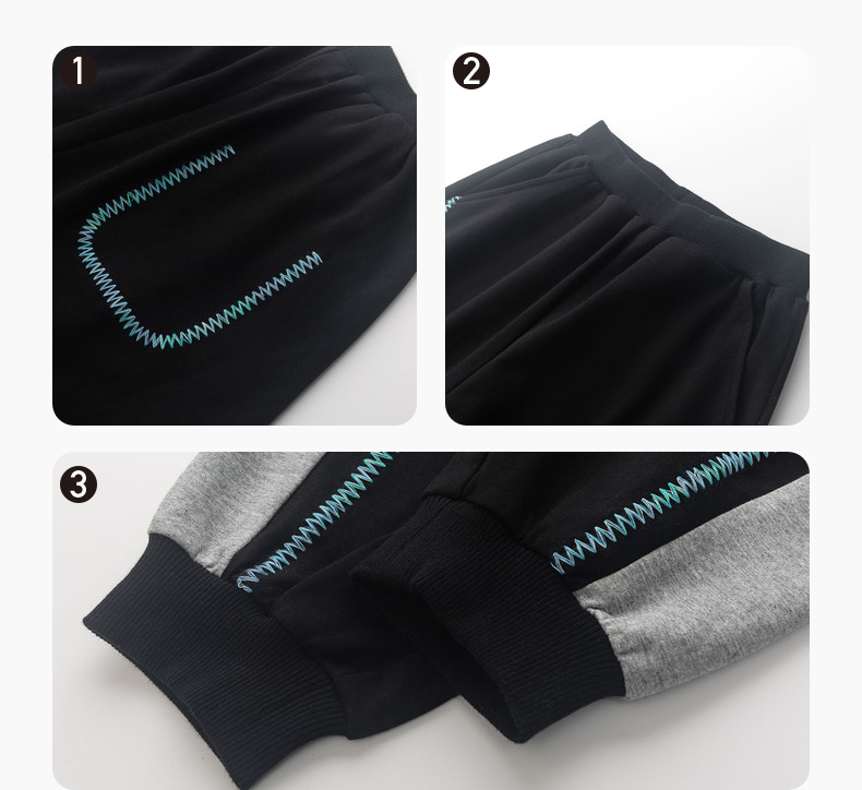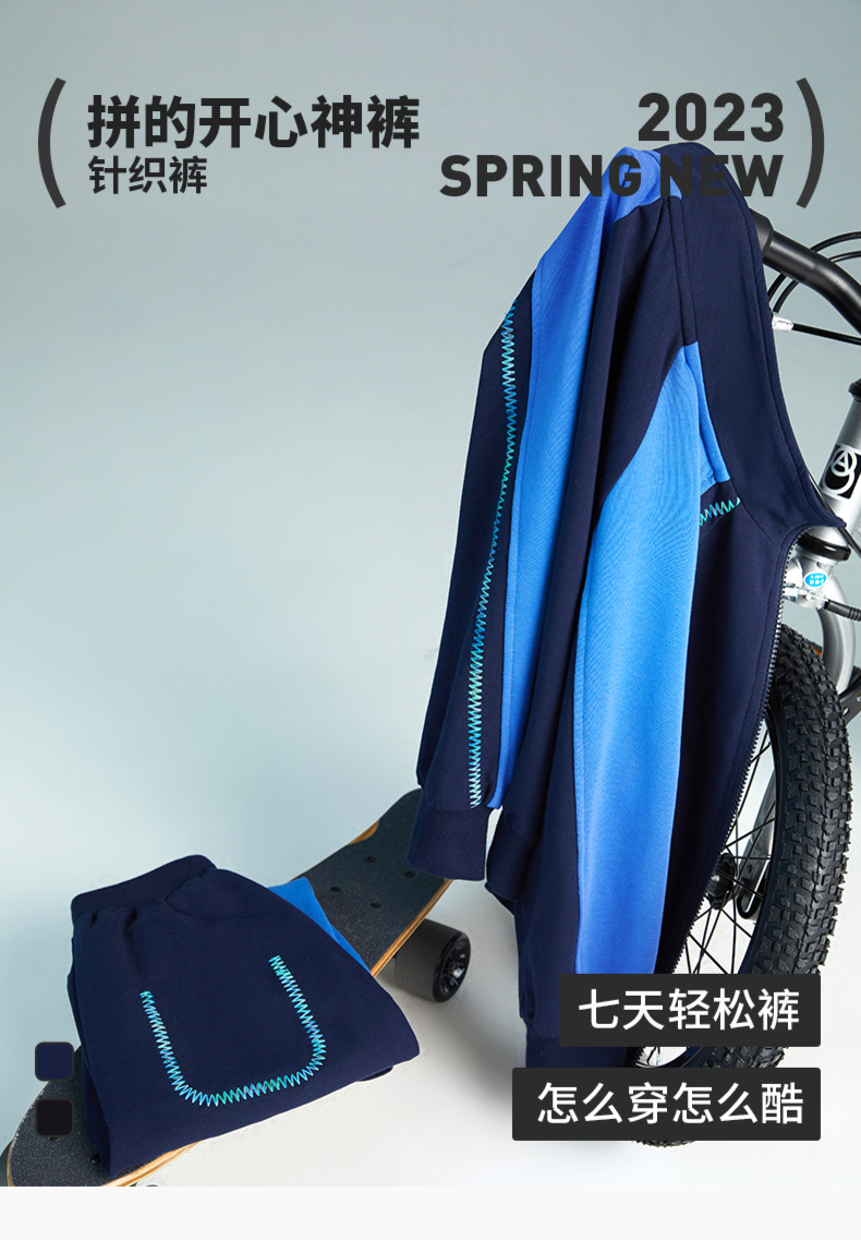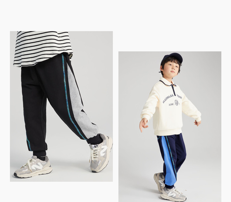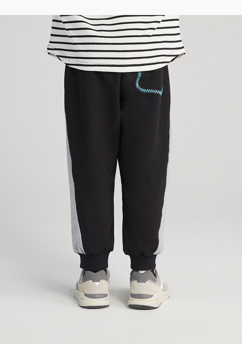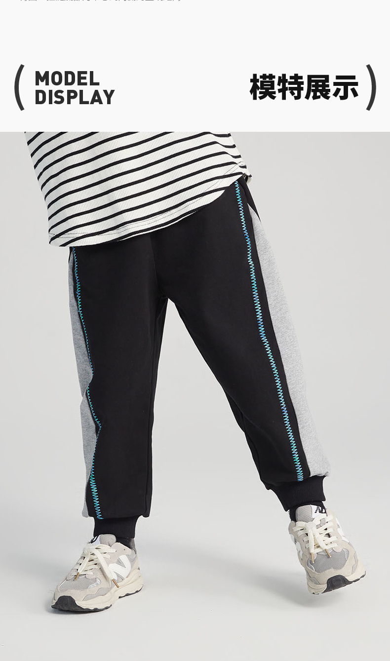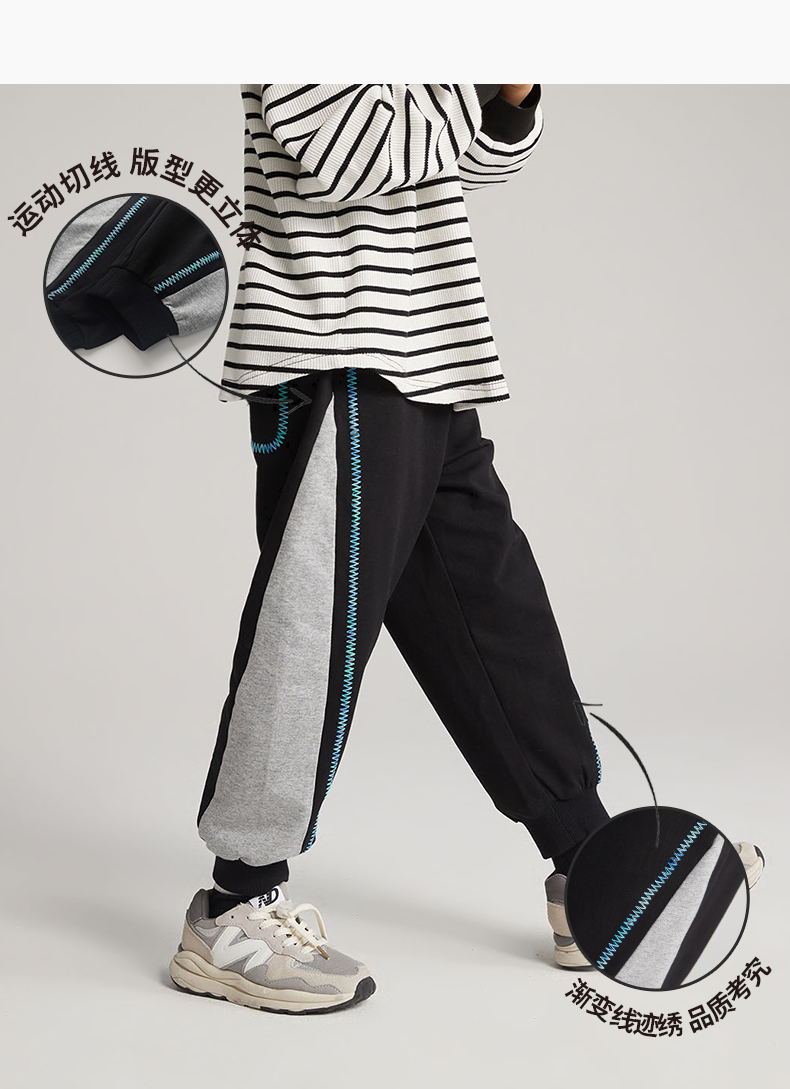 漫画家潮童装男童裤子2023春季新款时髦拼接撞色运动儿童束脚长裤