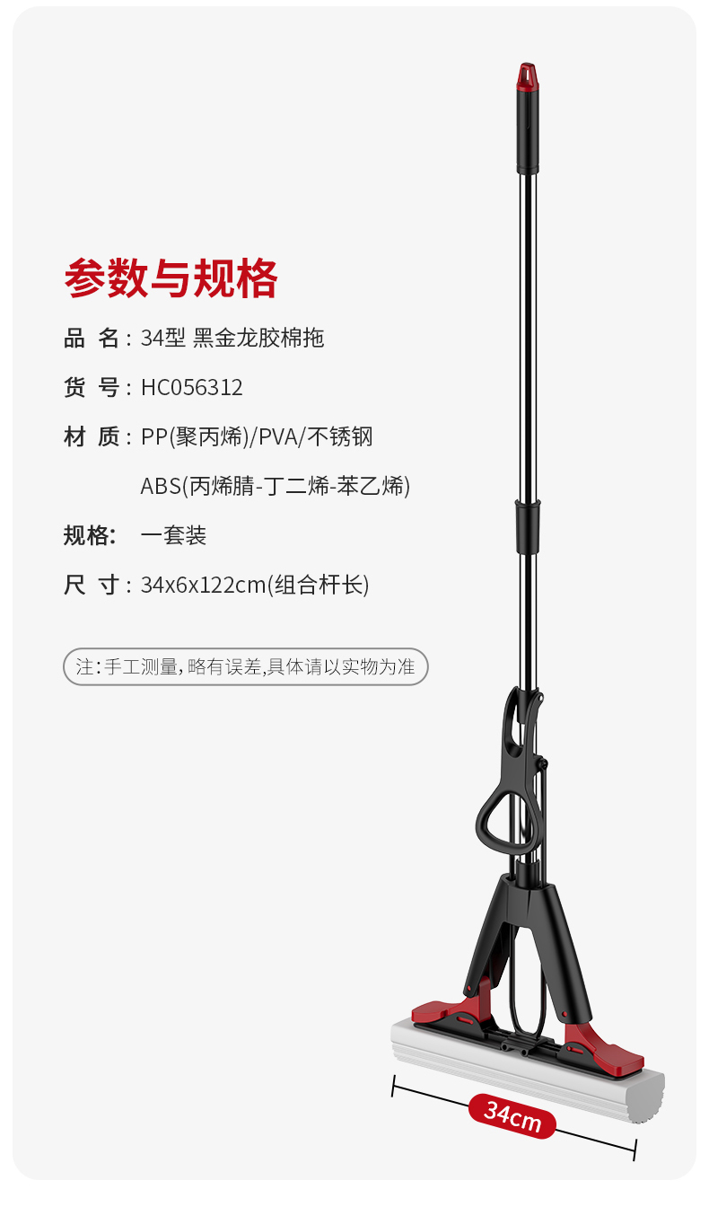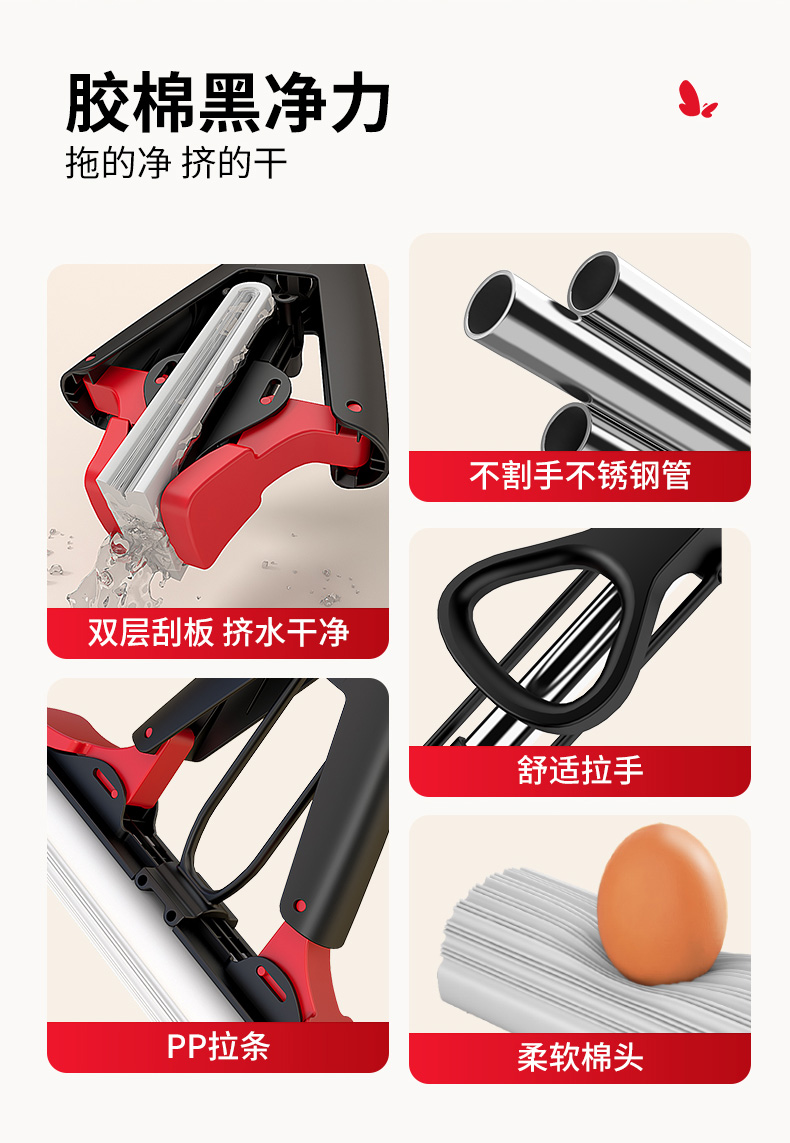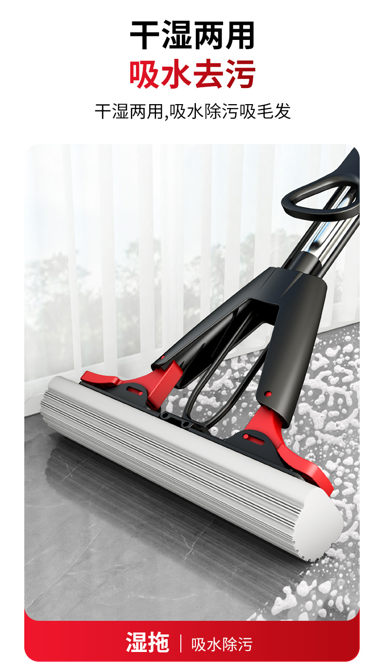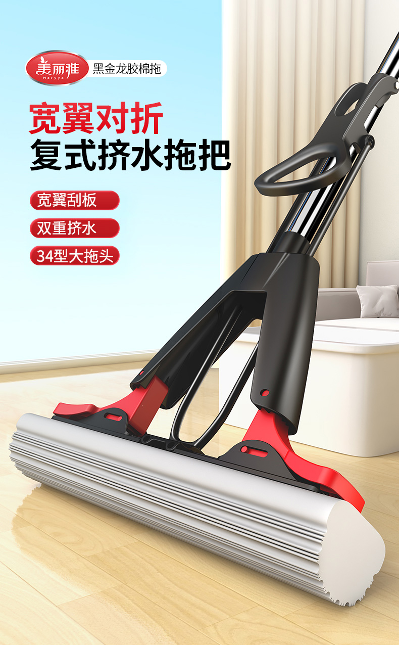 【批发】美丽雅黑金龙胶棉拖把速软强吸水胶棉34CM 1套