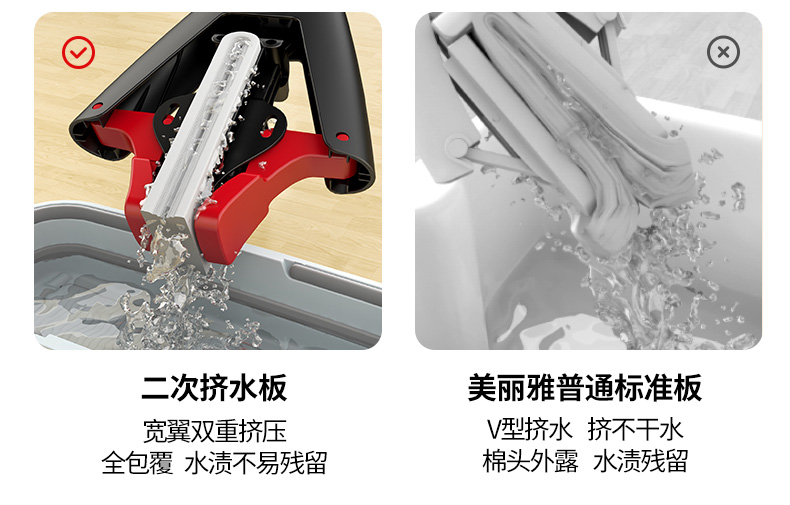 【双鱼平板拖】美丽雅一桶两拖把平板拖