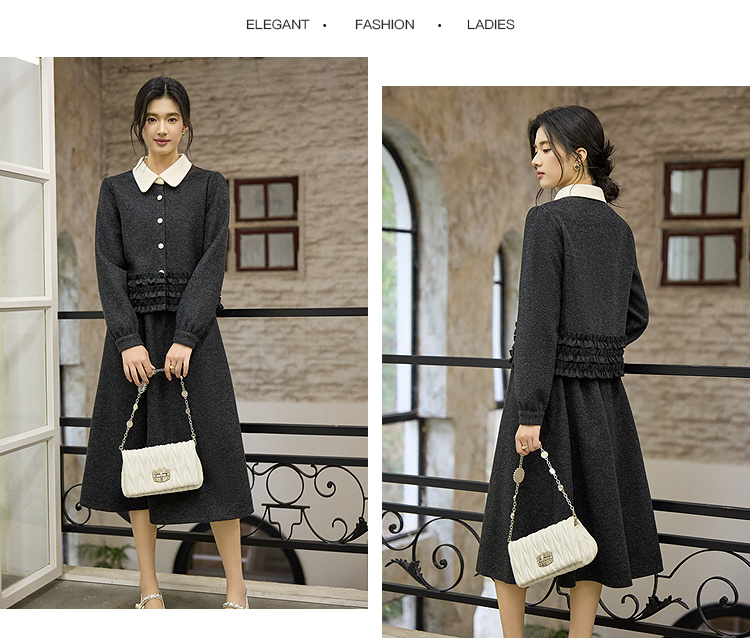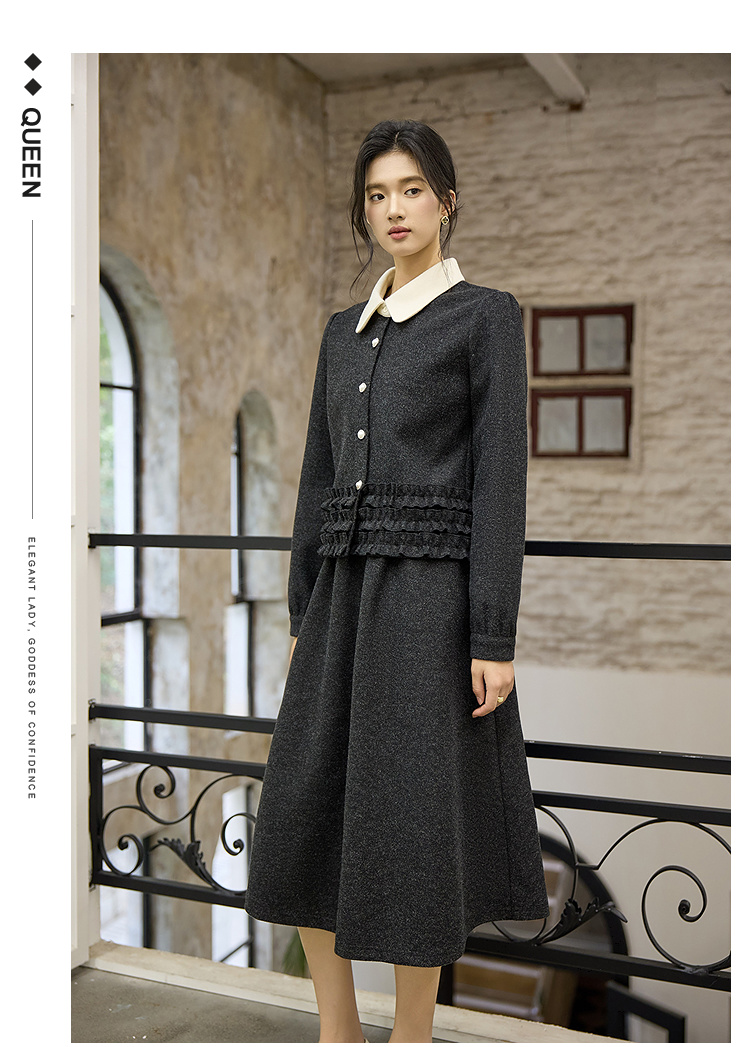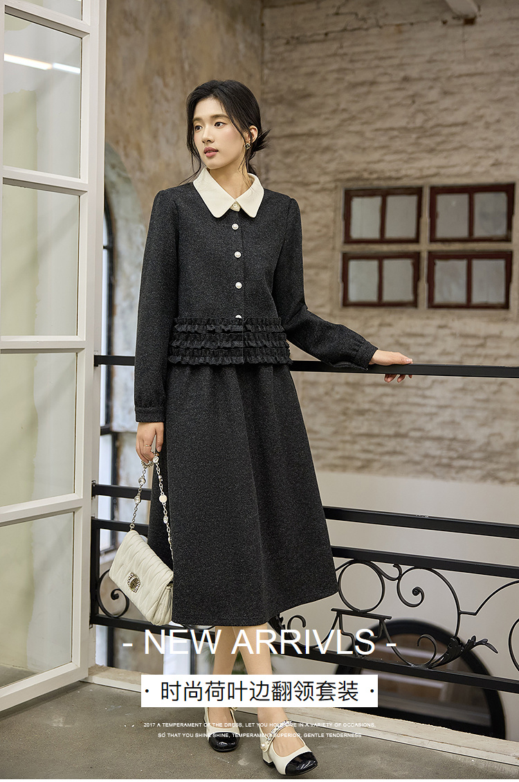 奢姿大码女装2025冬季荷叶边减龄翻领套装胖妹妹轻奢时尚两件套9954953985
