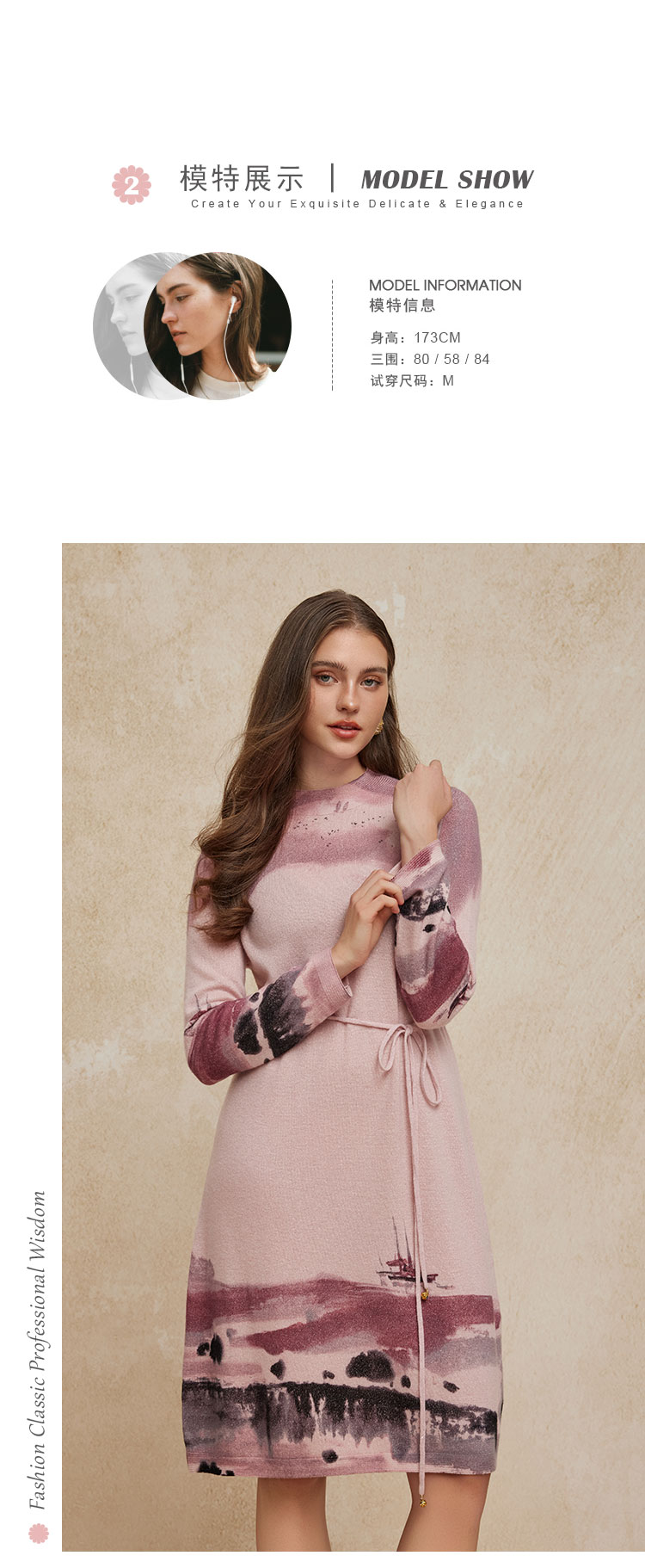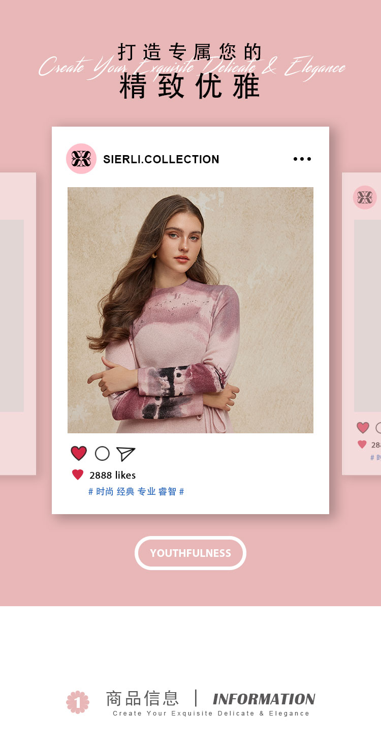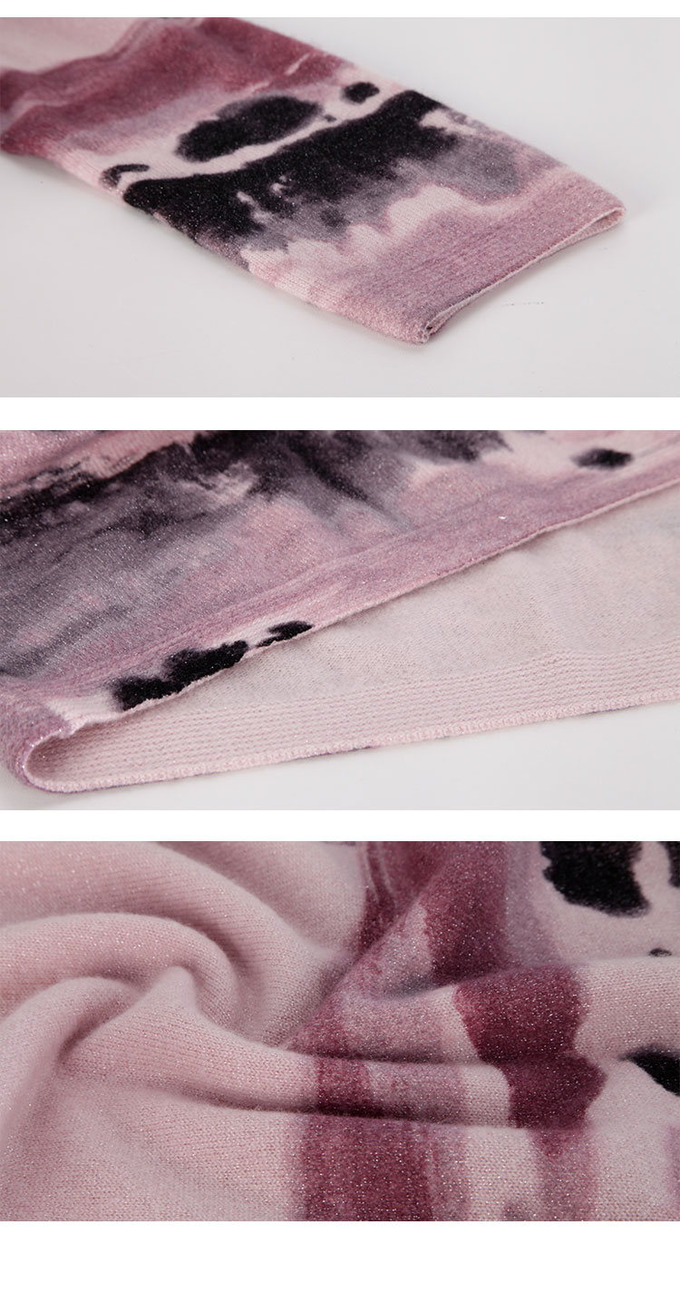 PH608斯尔丽24新款水墨印花国风半高领长袖柔软保暖针织连衣裙