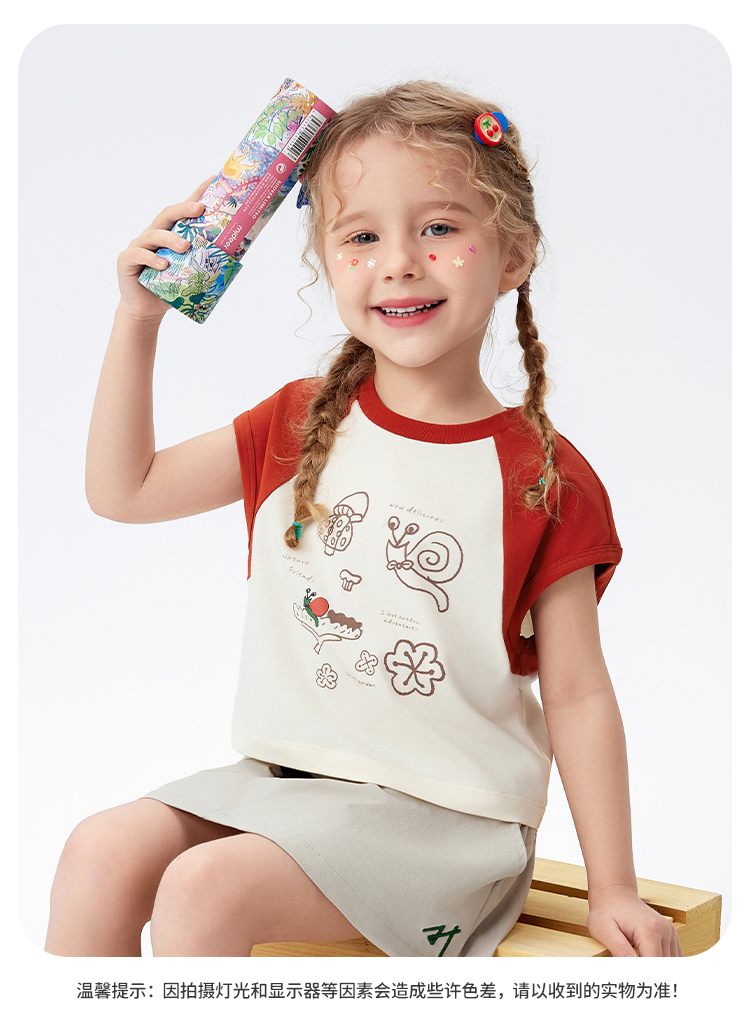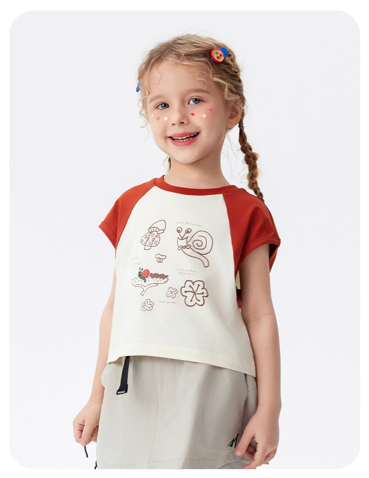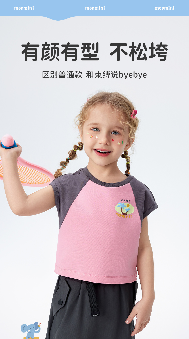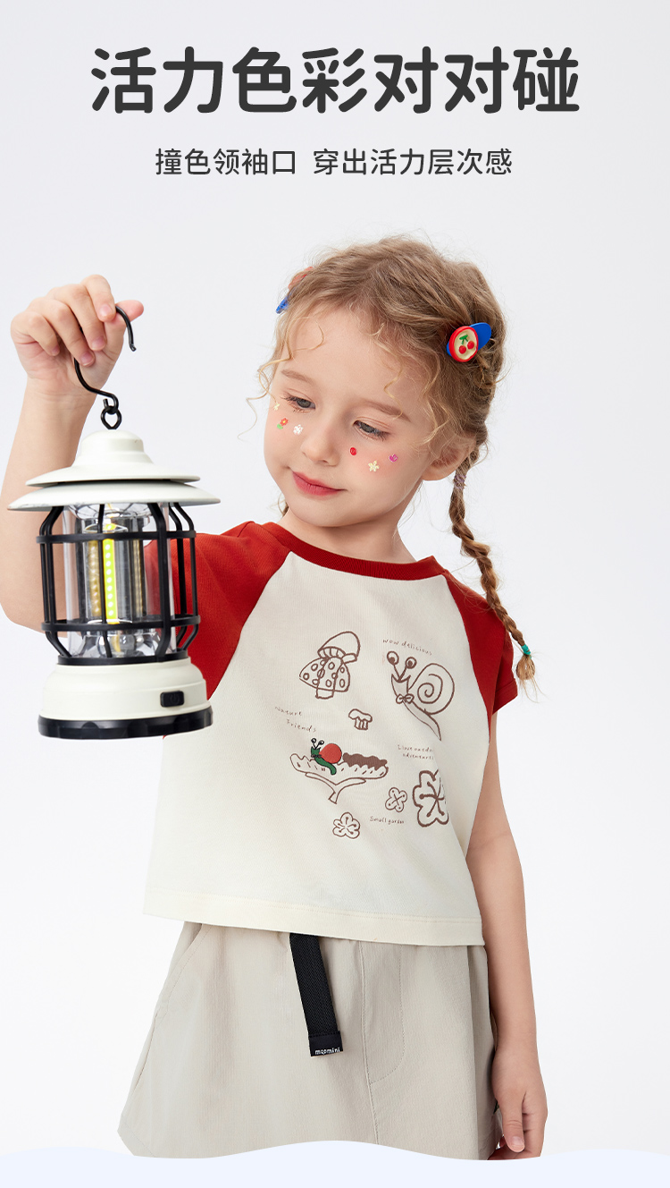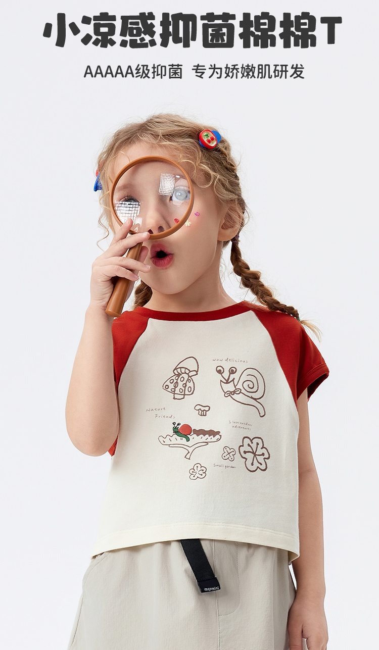 【5A抑菌】【90-140】【MQDmini】女童夏季短袖t恤中小童圆领短款印花上衣