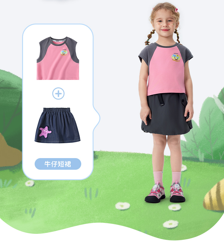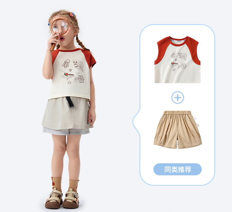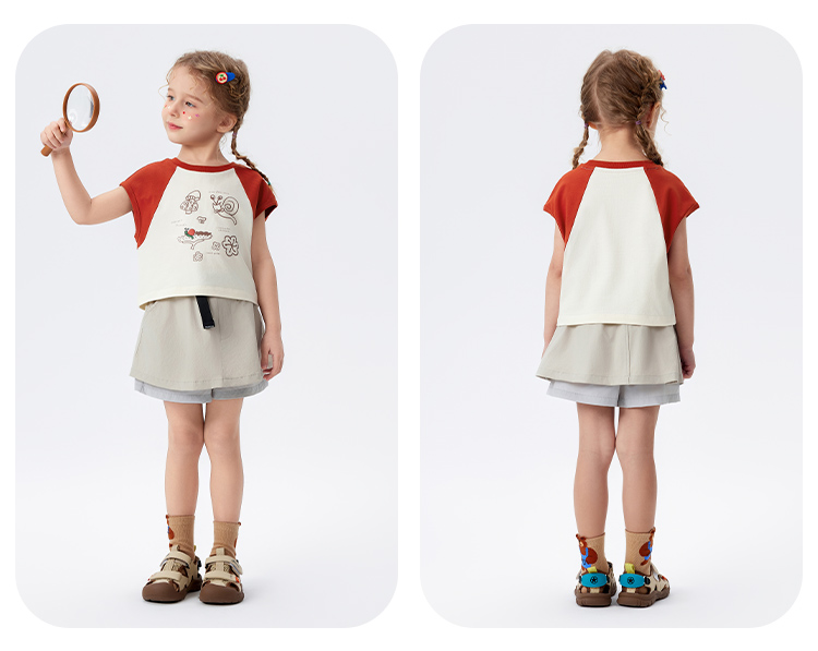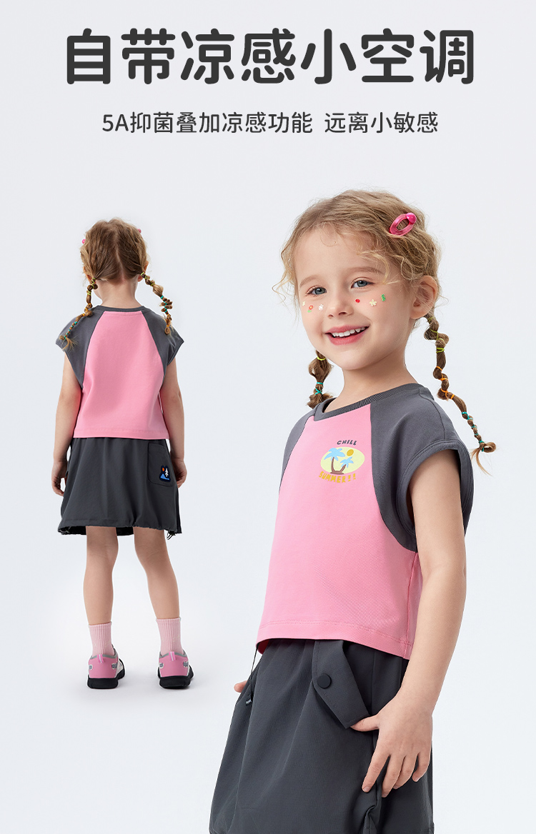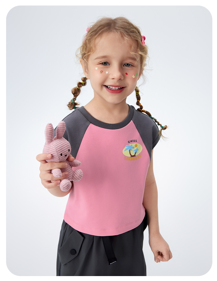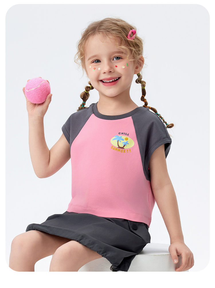 【5A抑菌】【90-140】【MQDmini】女童夏季短袖t恤中小童圆领短款印花上衣