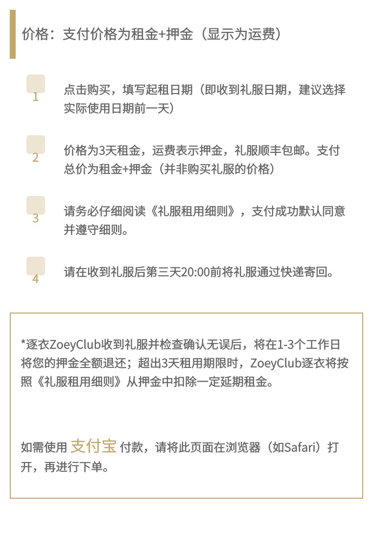 运费 价格实际是 押金 价格,礼服顺丰包邮。礼服归还并质检合格后,押金全额退还。悦己会籍免押金。