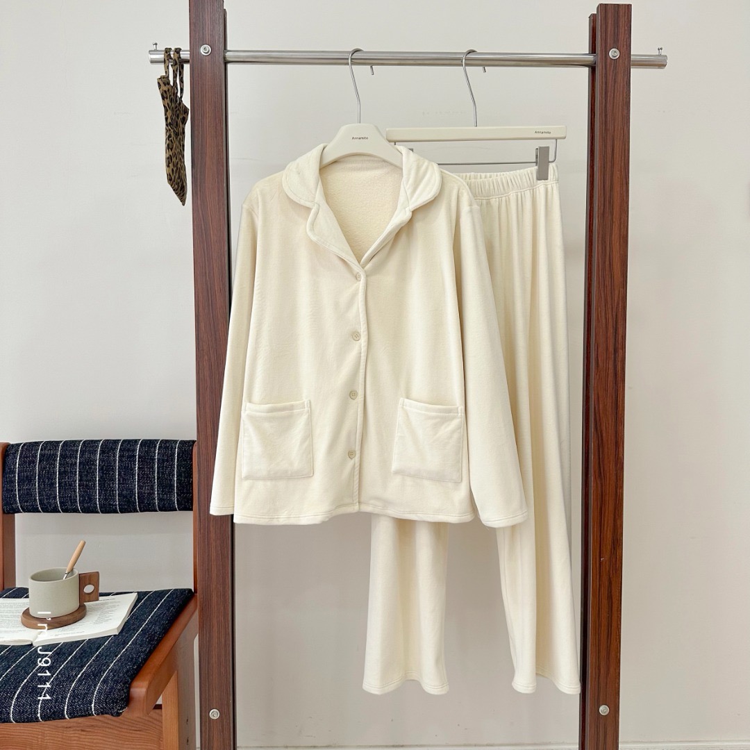 老米优品🎈3-5天。色系温柔治愈~ 宅家穿超chill!《暖暖绒加厚家居套装》澳毛绒光滑细腻,松弛温暖~ TZ251023A
