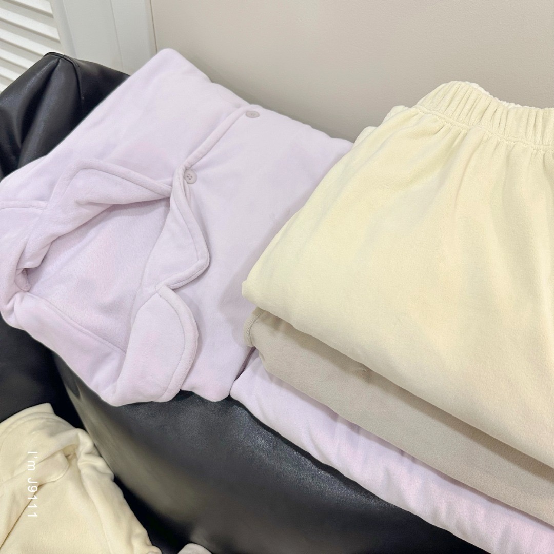 整套轻盈不臃肿,触感蓬松柔软, 穿上化身松弛感元气美少女,颜色都好治愈啊,宅家穿超 chill!