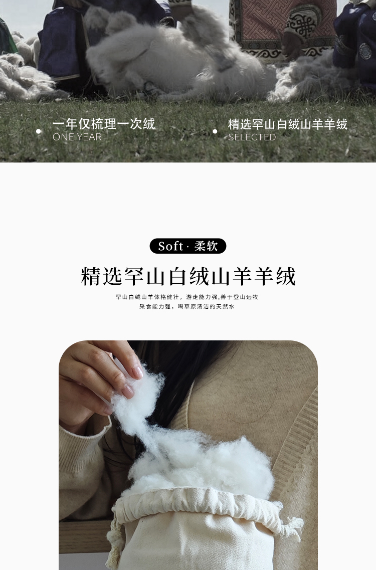 东黎羊绒是赤峰东荣集团自主品牌,自有牧场/羊绒制品全产业链优势,实现了羊绒从“牧场”到“商场”的华丽转变。