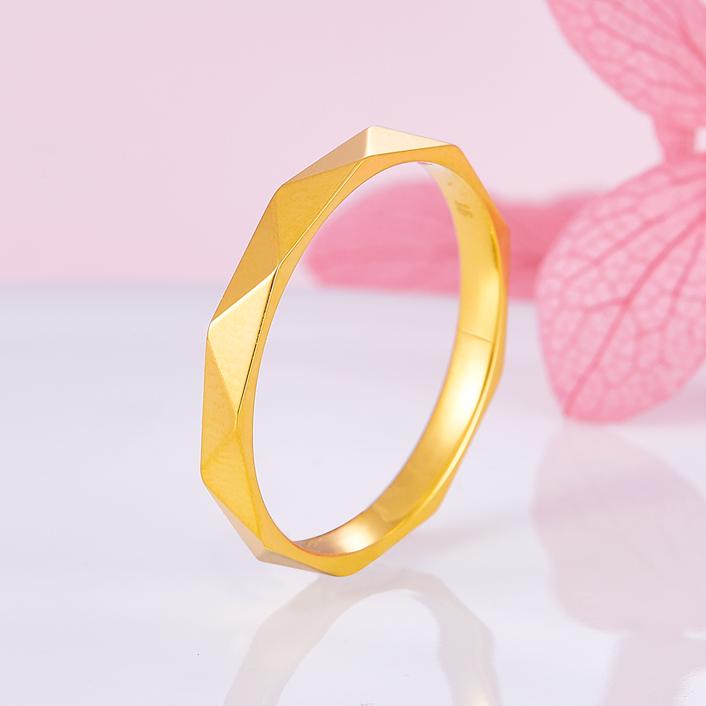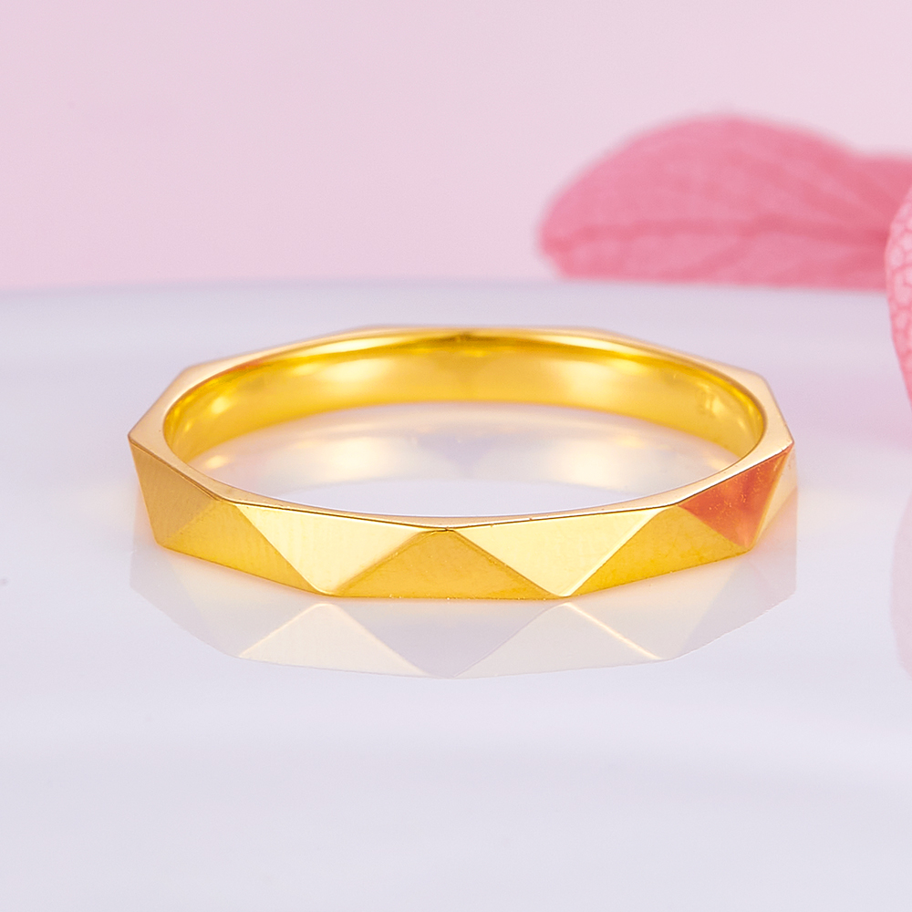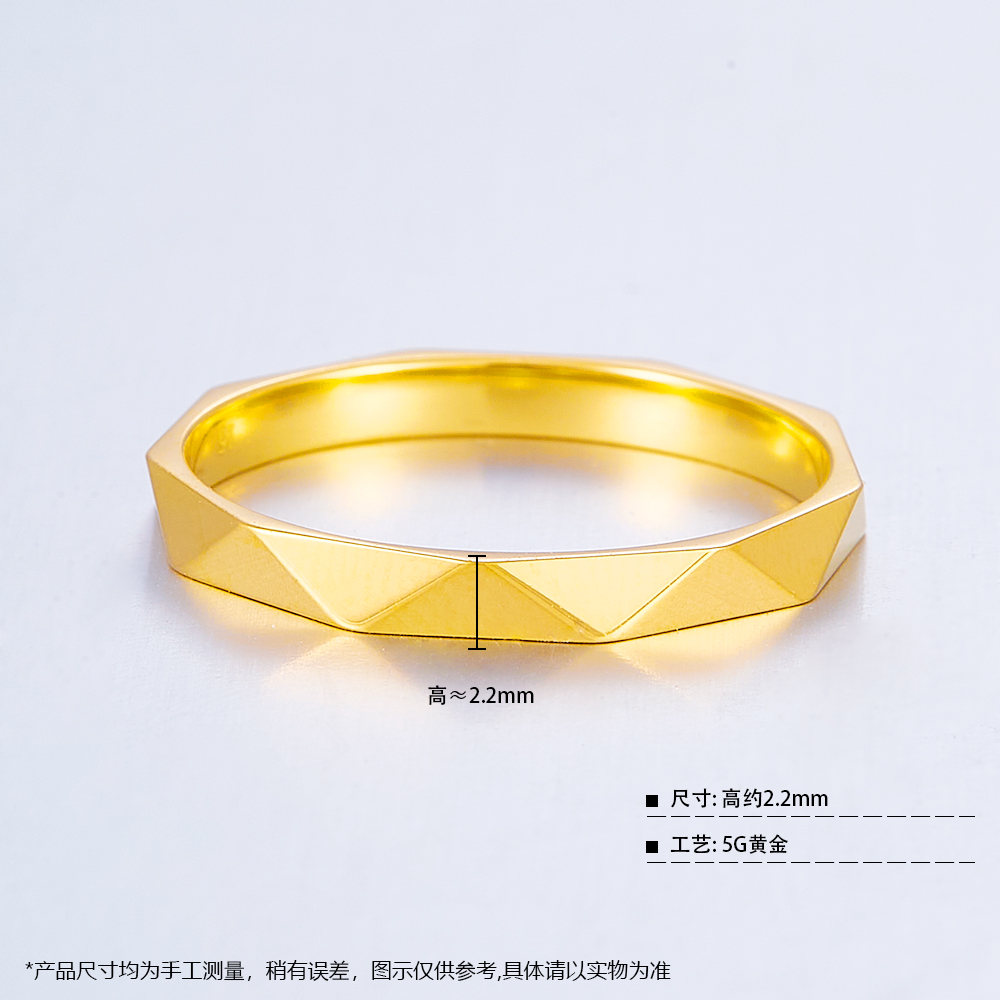 【限时克减150元】足金999 #小红书 5G黄金几何刻面三角实心固口镜面金圈戒(面宽约2.2mm)(AG5GJZ00003-2)(预售产品下单后不退款不退货不换货不补差价)