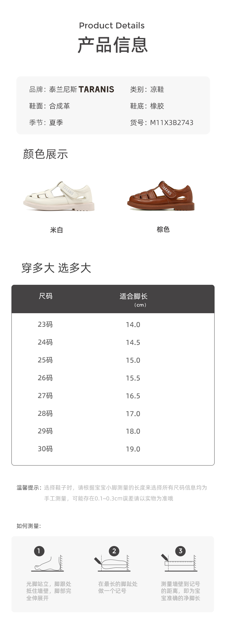 泰兰尼斯小童段夏季时尚精致舒适凉鞋M11X3B2743