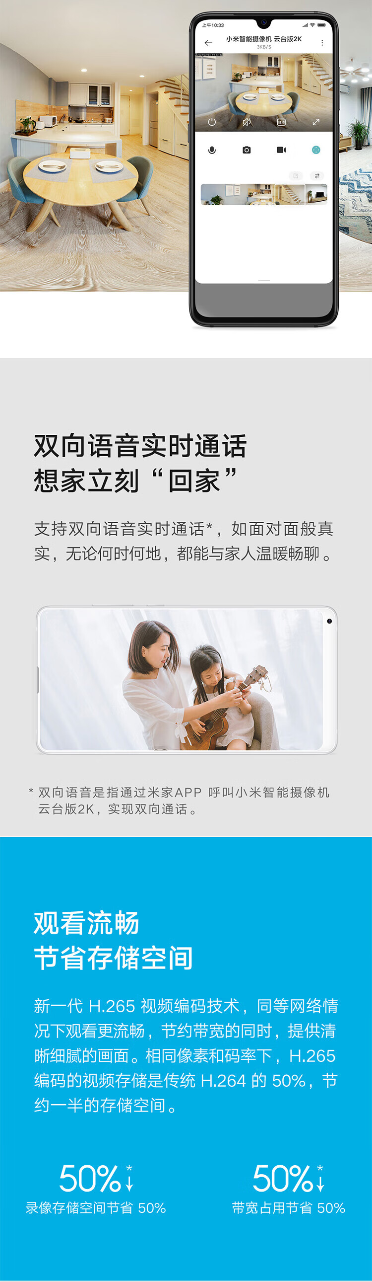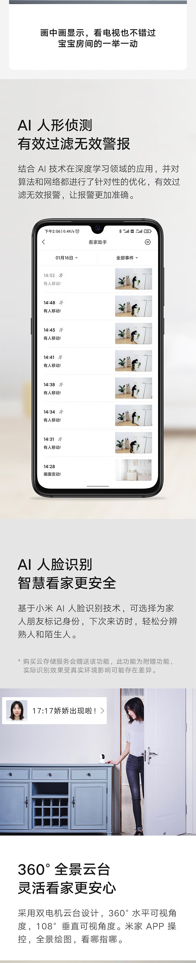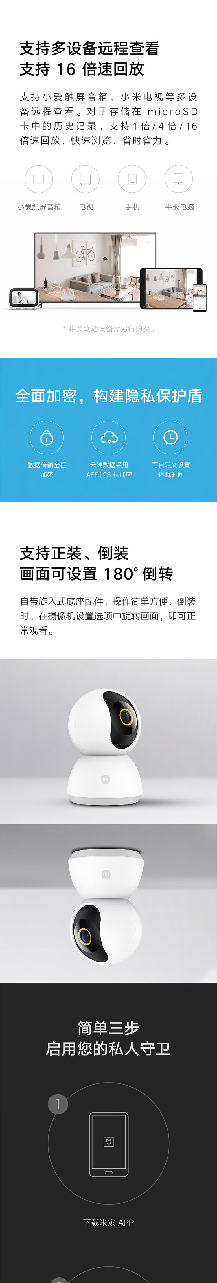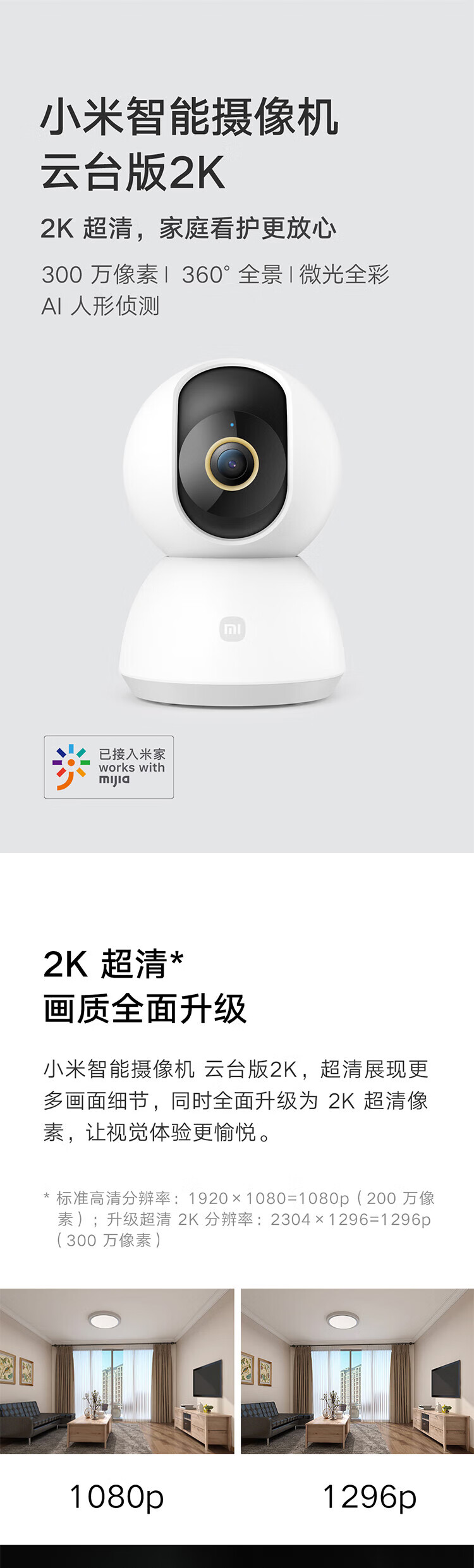 小米摄像头 云台2K版 家用监控器 红外夜视 看家 2K超高清 手机查看 智能摄像机 300W像素升级版