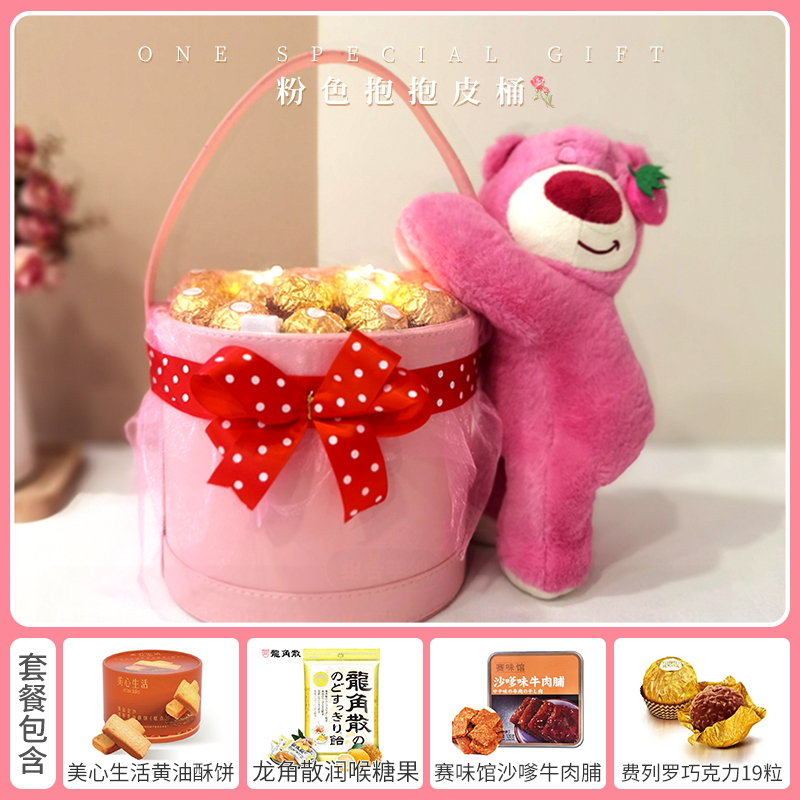 【520为爱放价】粉色抱抱皮桶套装C+草莓熊+雪梨纸+2个灯带+卡片/051809*064213*059811*040095*040266*080145