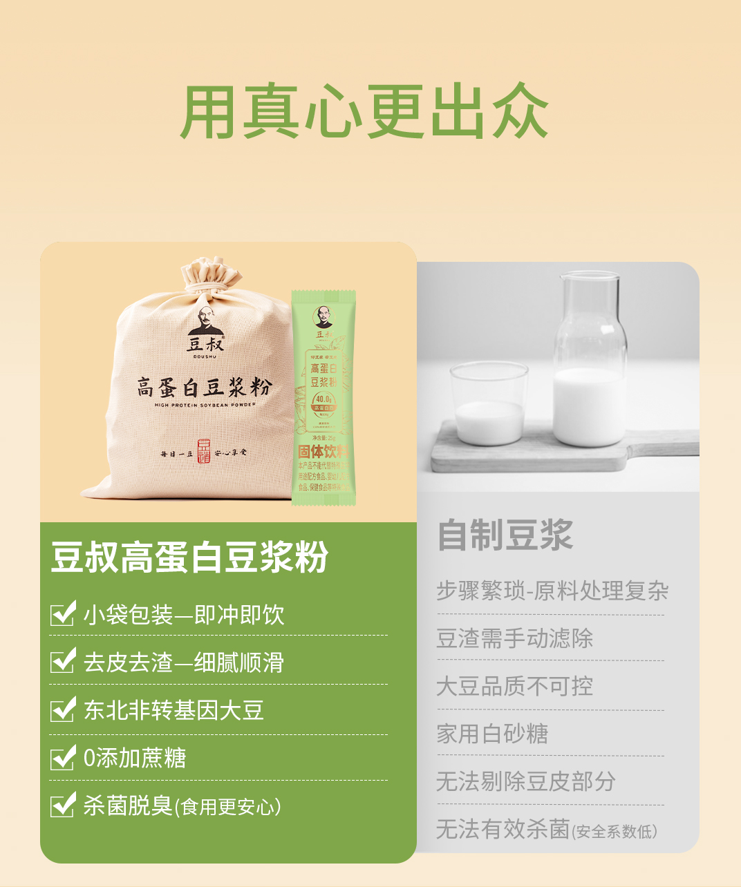 『无糖豆浆粉』更醇更浓,细腻顺滑,不添加香精、色素、蔗糖,即冲即饮,便捷营养!