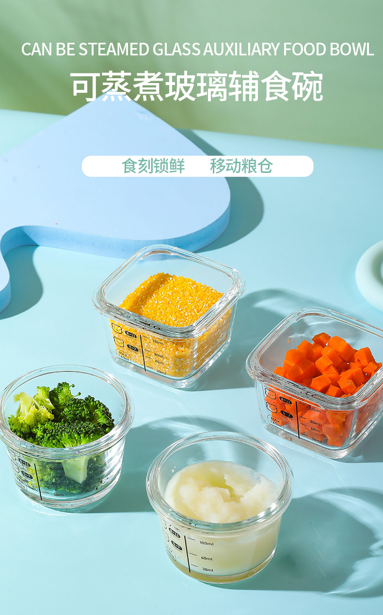 辅食碗婴幼儿辅食盒玻璃蒸蛋羹可蒸煮辅食工具6月龄耐高温家用