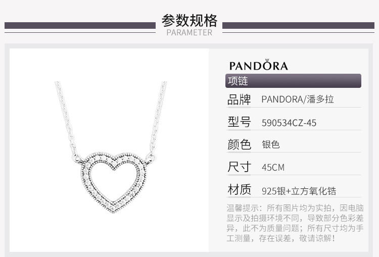 PANDORA/潘多拉 女士925银 爱心项链590534CZ