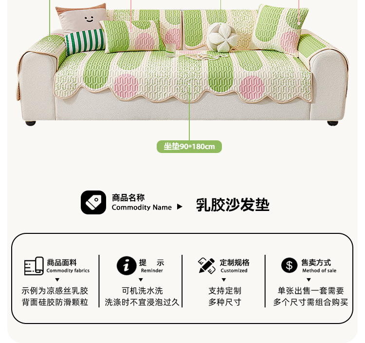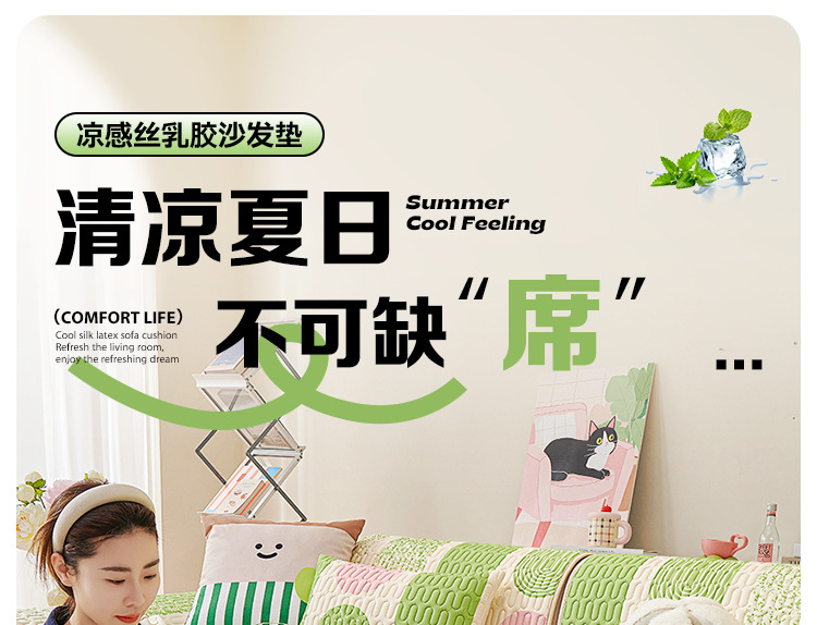 多巴胺夏季凉感冰丝异形沙发垫 防滑冷感乳胶凉席坐垫