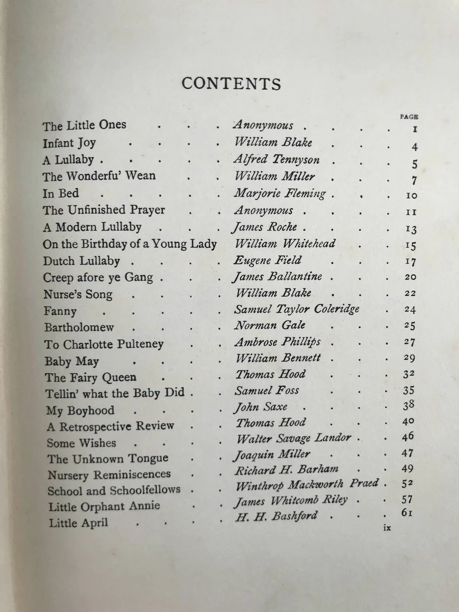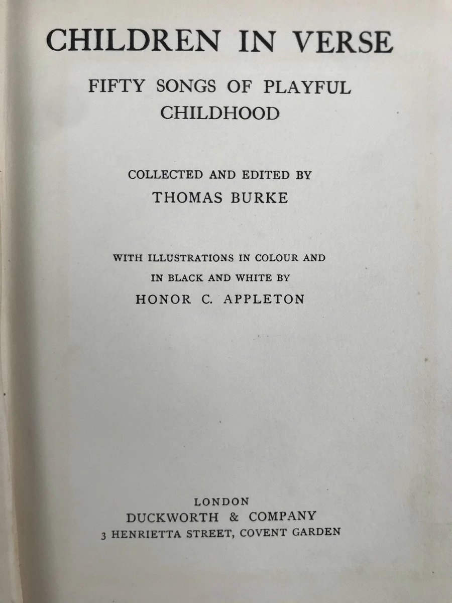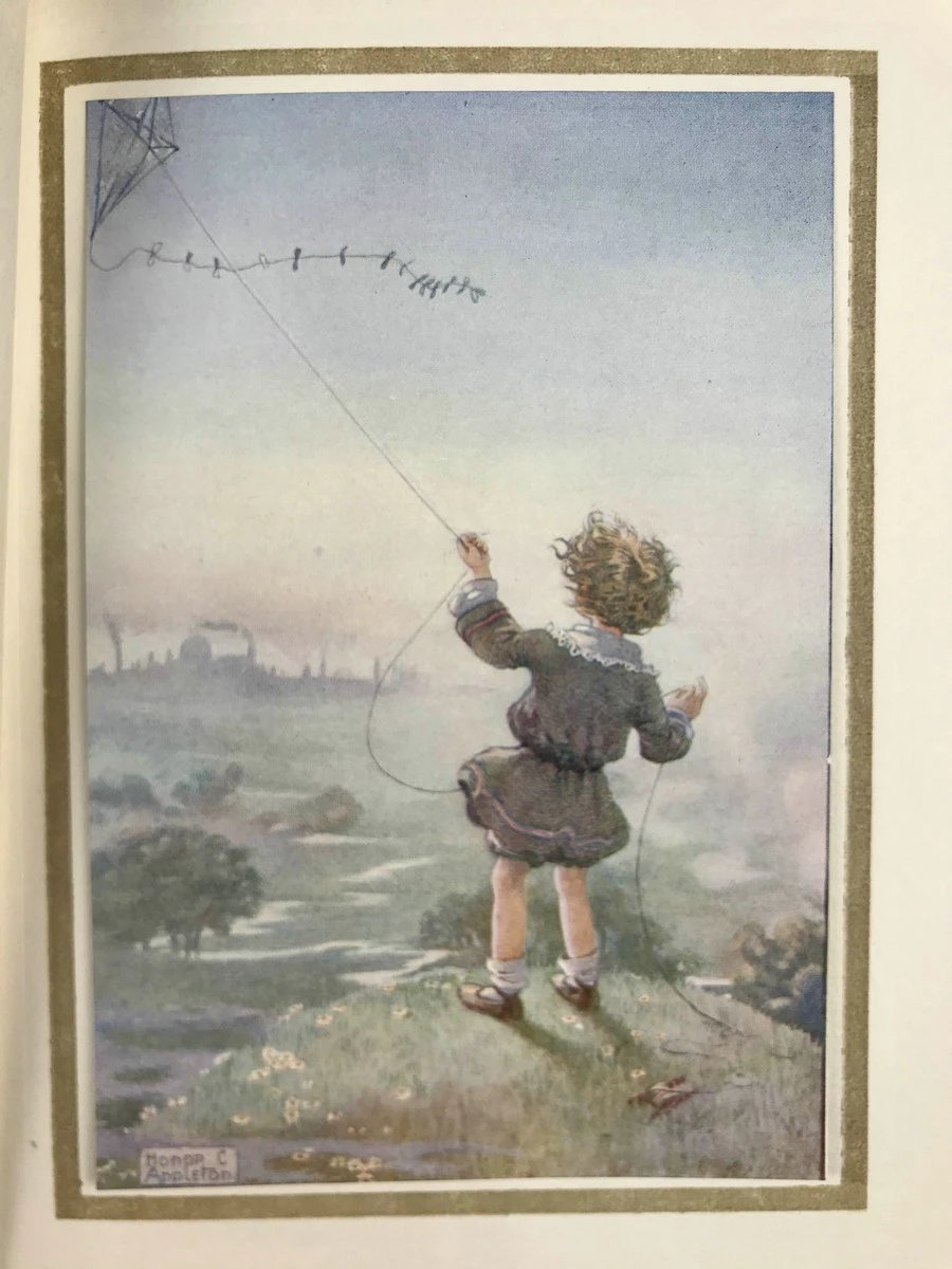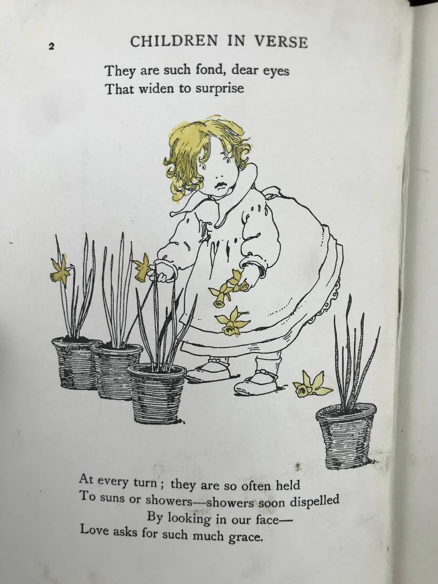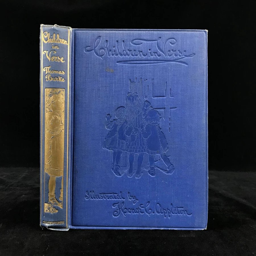 1913年 孩童诗歌集 8幅彩色手工贴图大量黑白插图 漆布精装32开