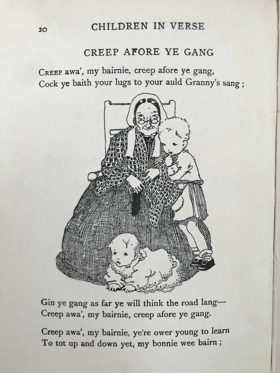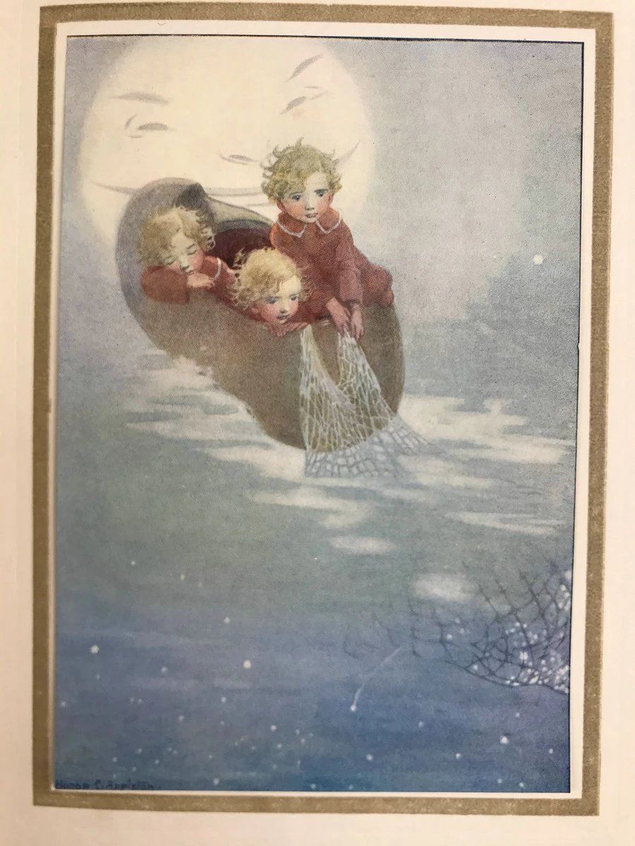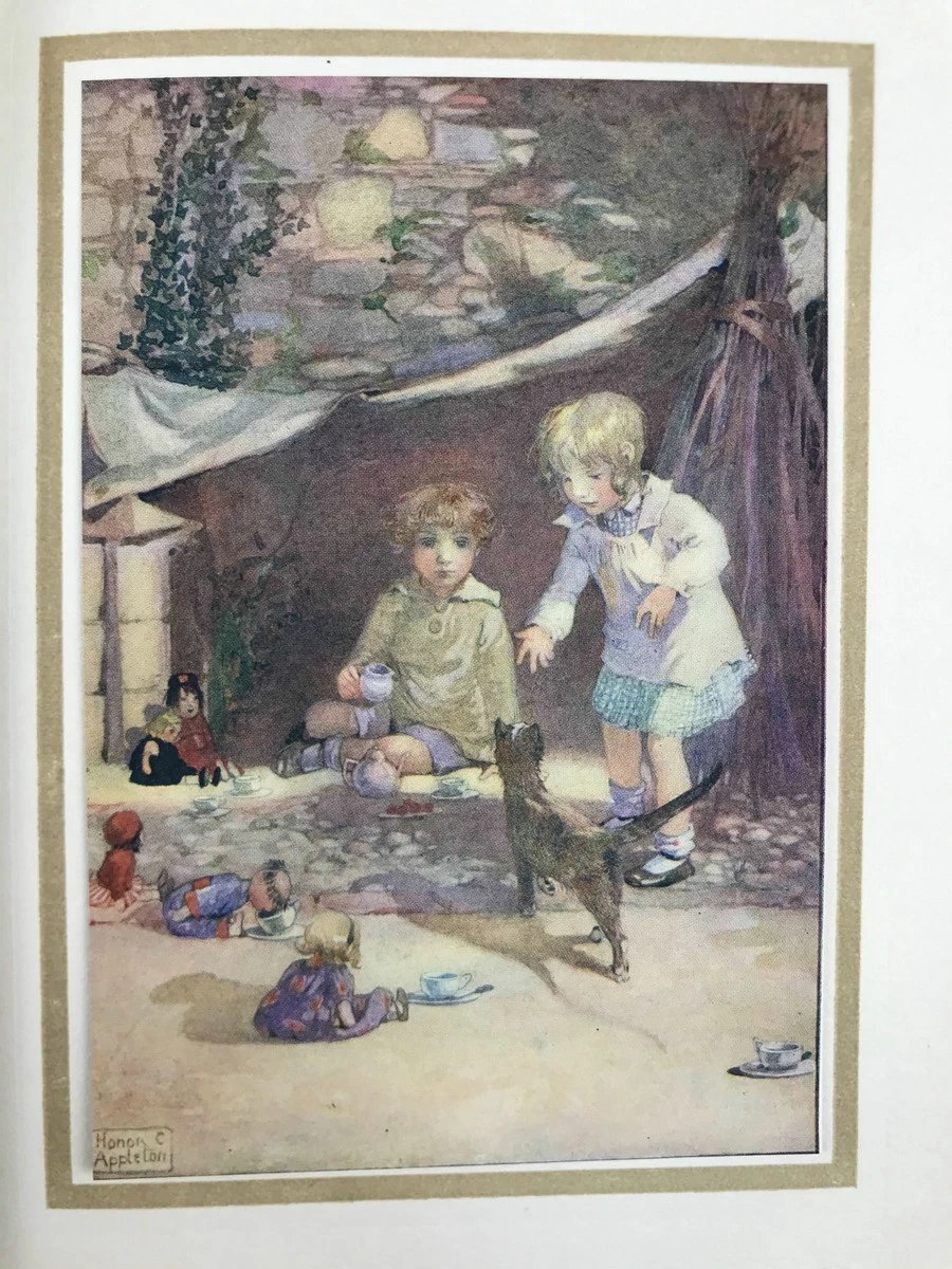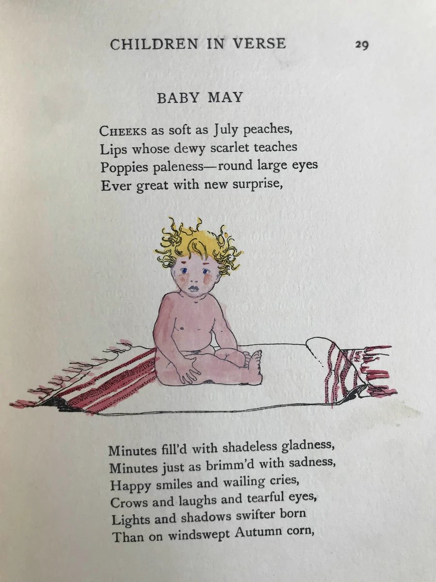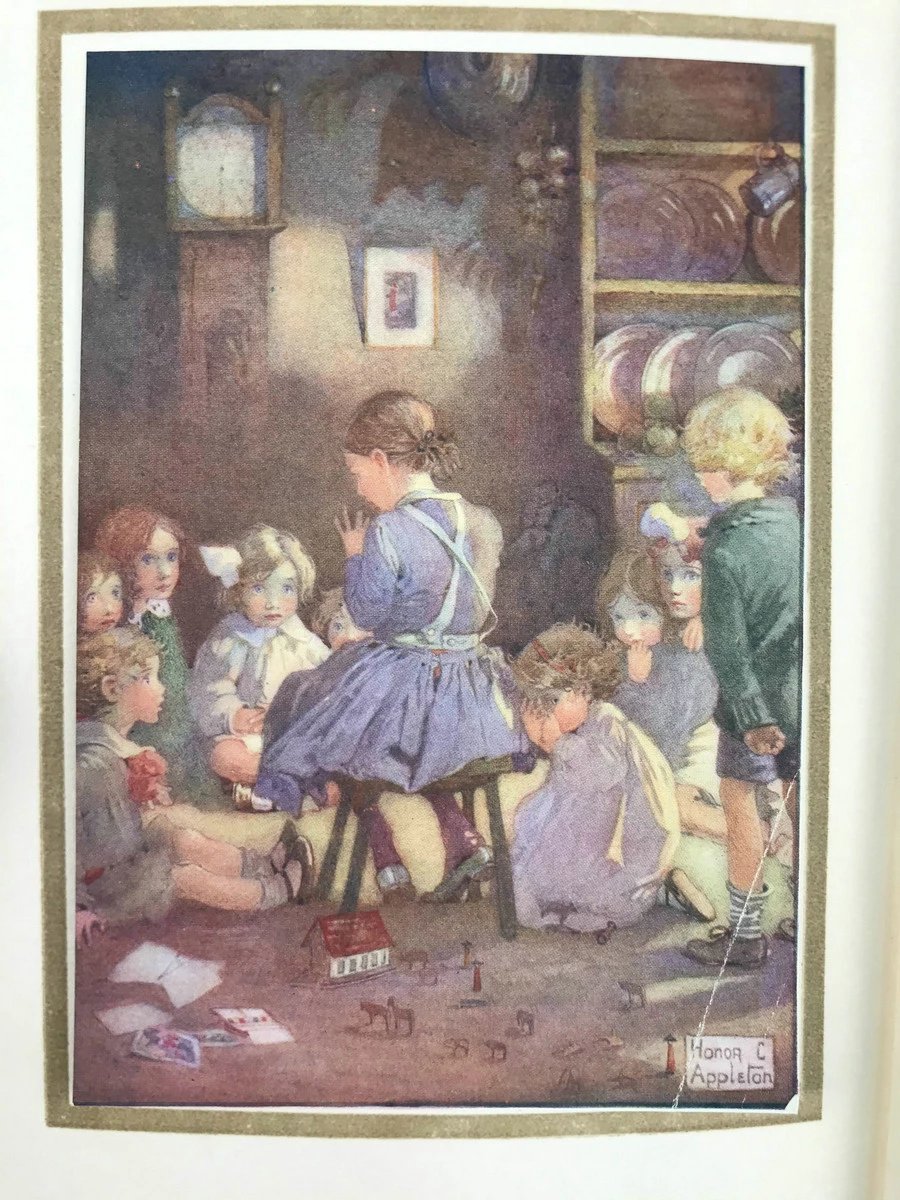 1913年 孩童诗歌集 8幅彩色手工贴图大量黑白插图 漆布精装32开