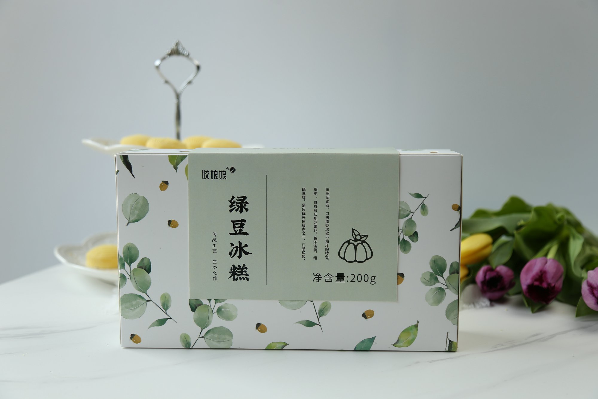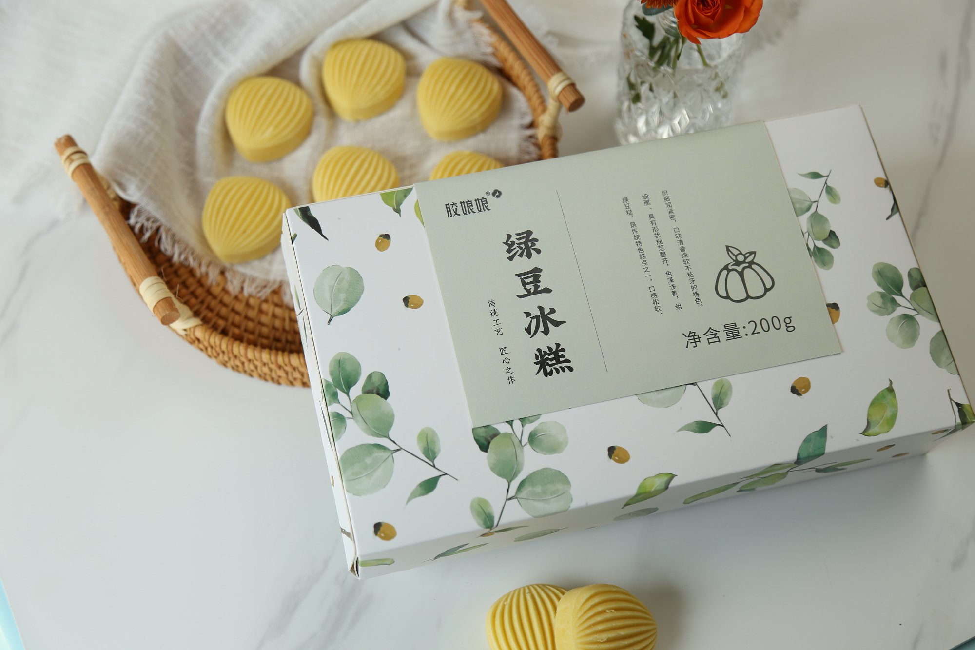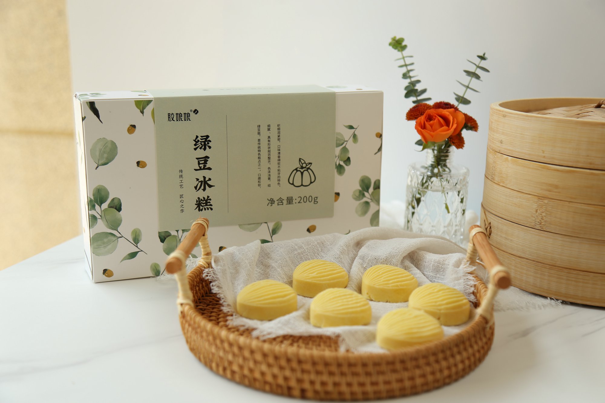 不同于一般绿豆糕,从市场上采购绿豆沙,通过大量加糖、加油和防腐剂,胶娘娘绿豆冰糕选用脱皮绿豆,24小时的浸泡、手工揉搓脱皮、6小时文火熬煮、上百次的碾筛研磨,得到的绿豆沙无比绵密,有浓郁的绿豆本香,不干不油不糙。