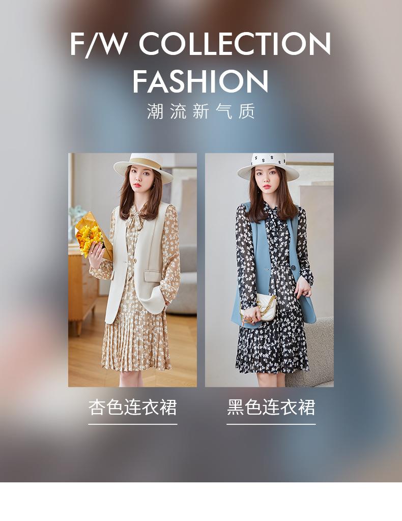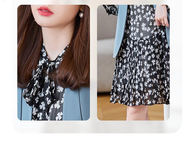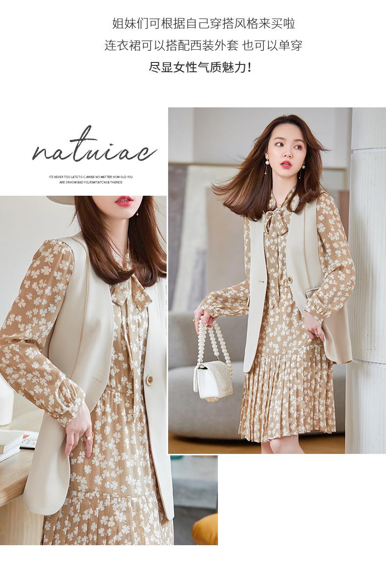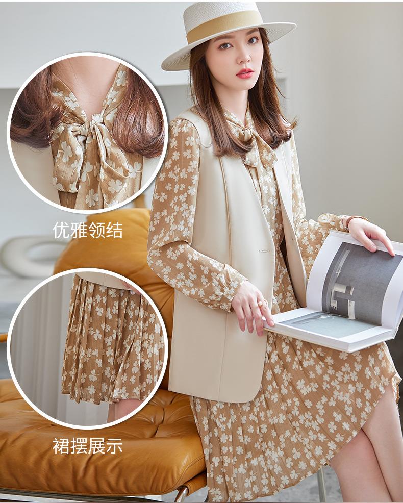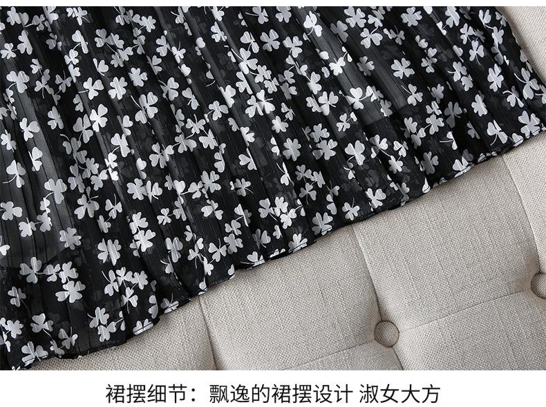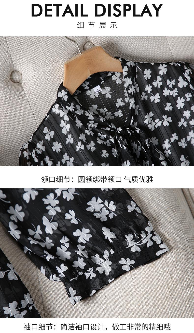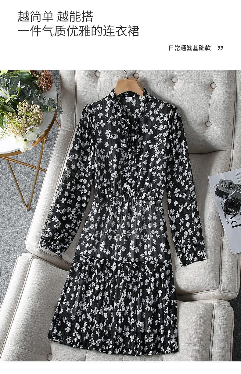 娜璐多 碎花雪纺连衣裙子女装2023年春秋新款长袖气质时尚潮流中长款裙子