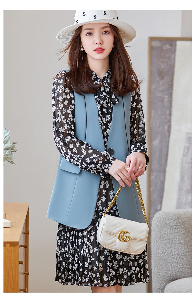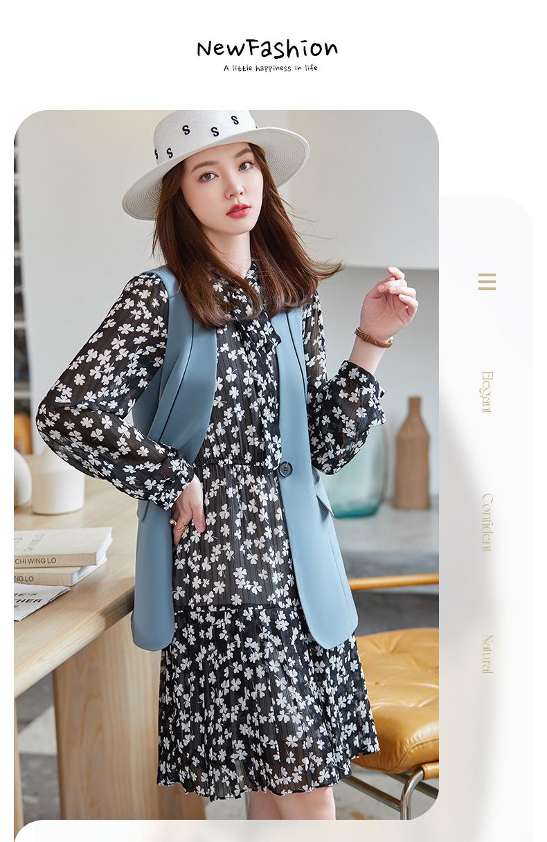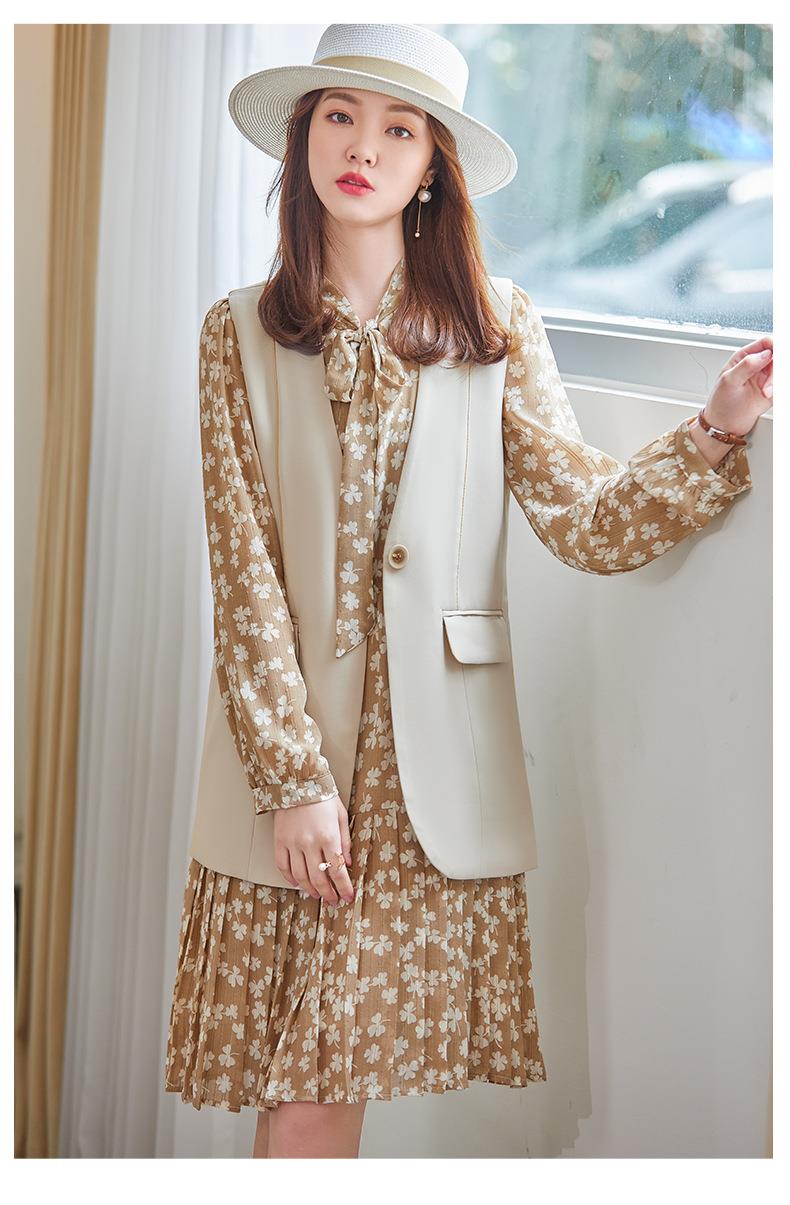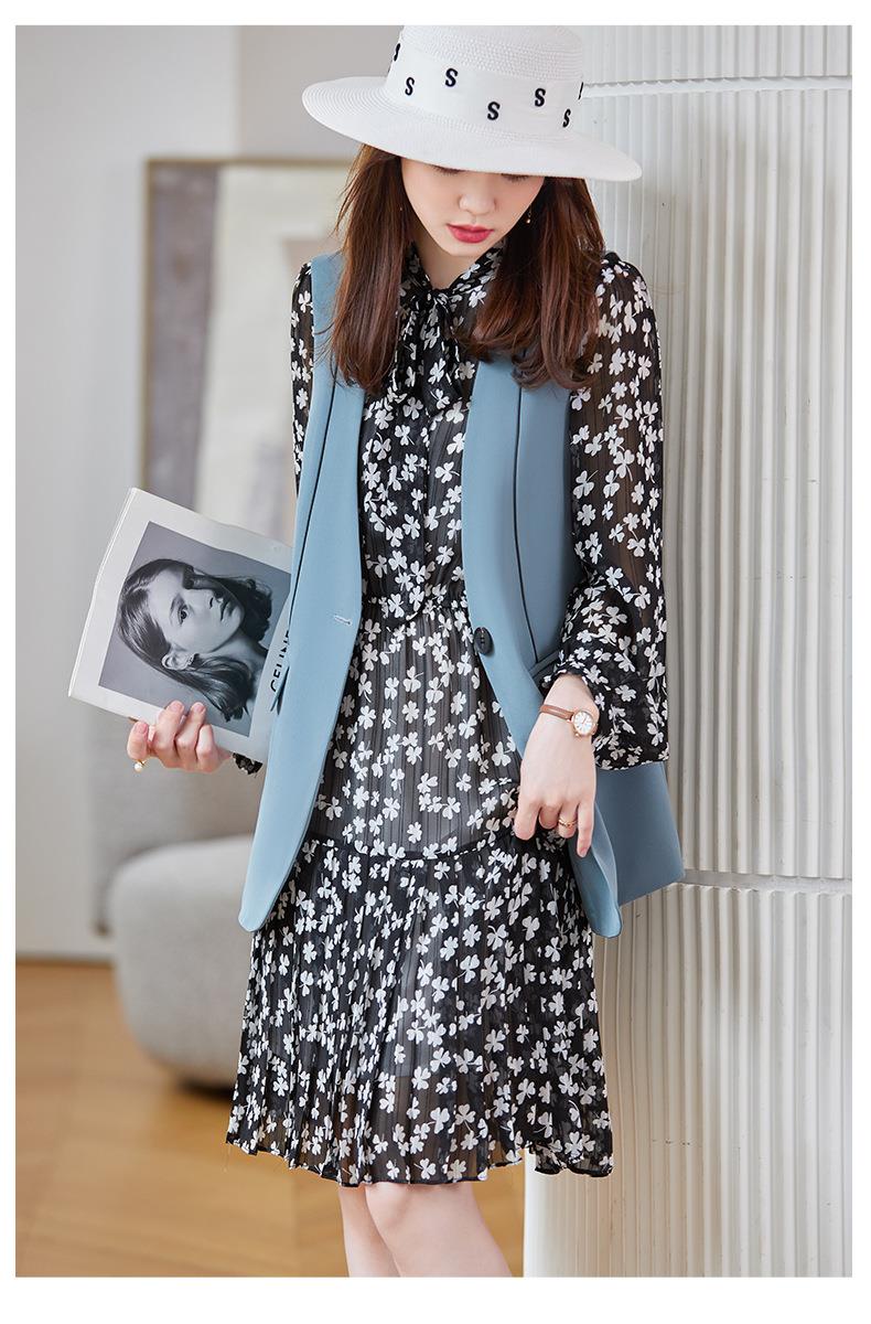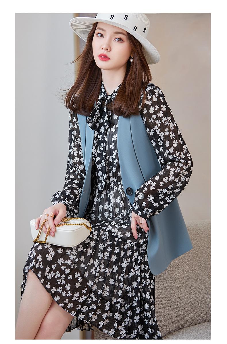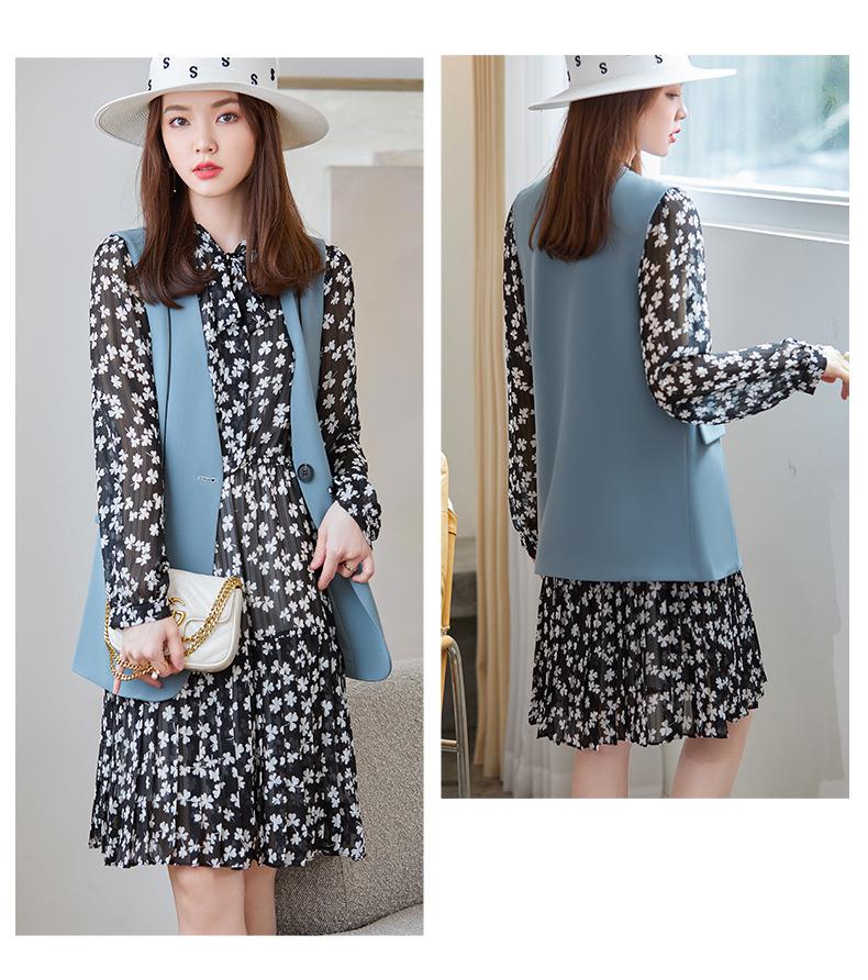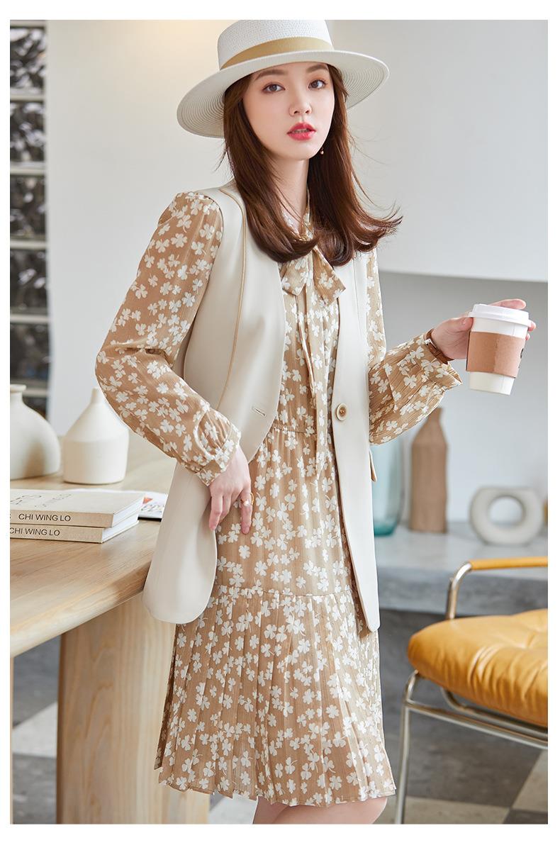 娜璐多 碎花雪纺连衣裙子女装2023年春秋新款长袖气质时尚潮流中长款裙子