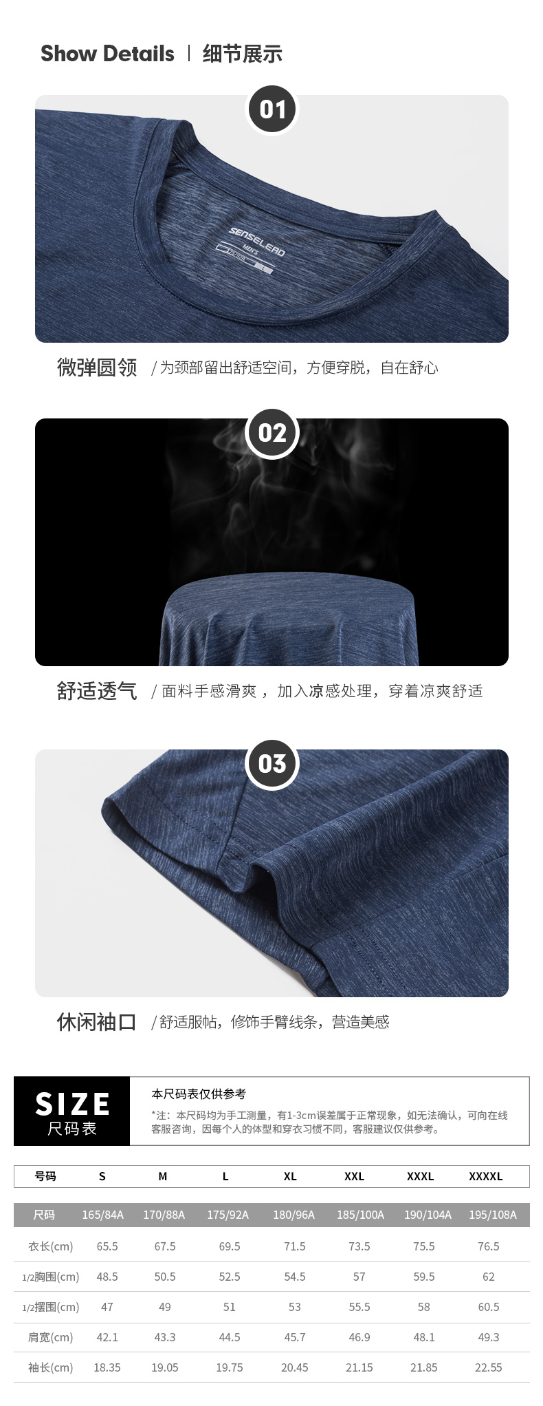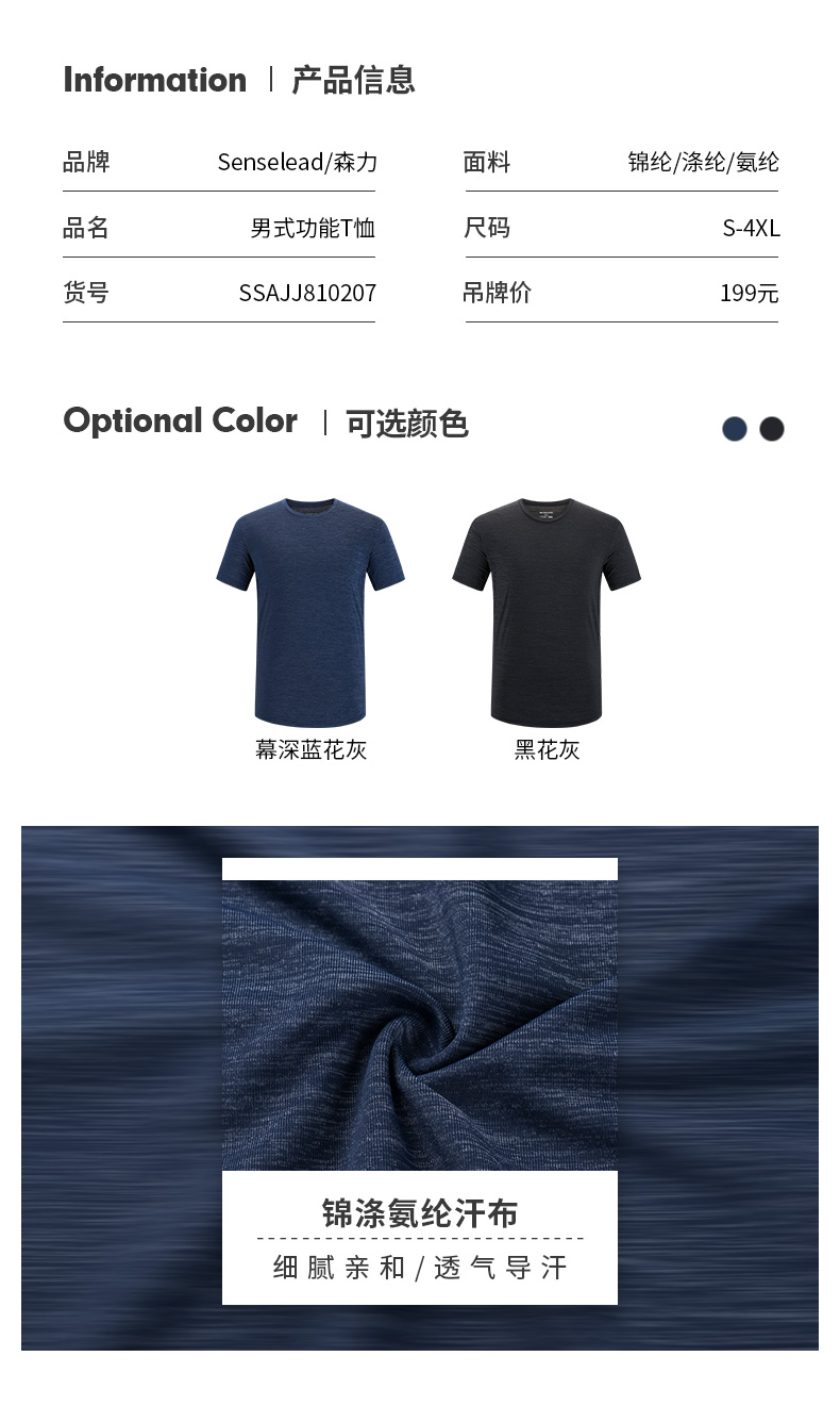 Senselead森力/男式短袖棉T恤 SSAJI81163