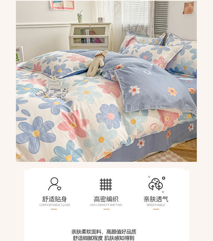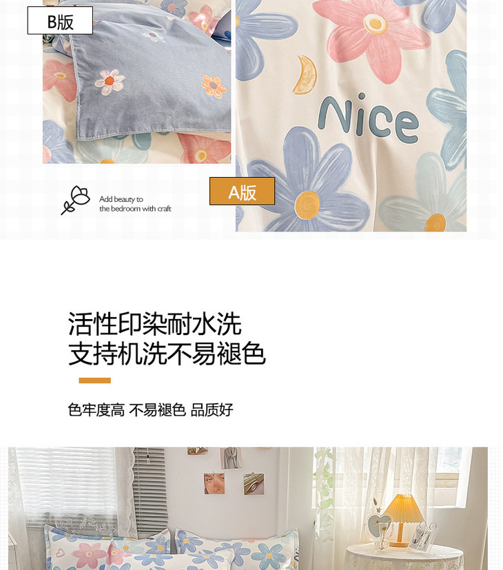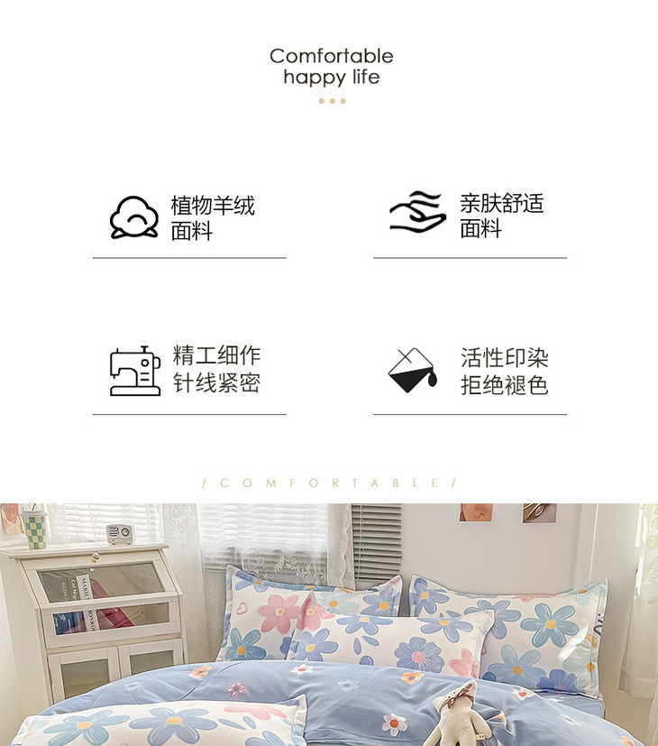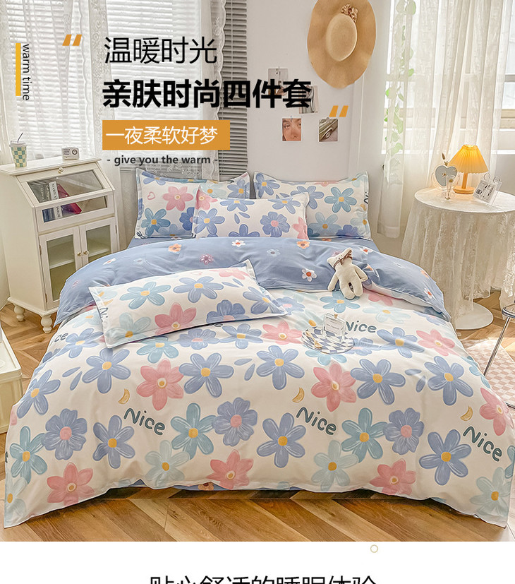 【温暖时光!亲肤时尚三件套】纯棉加厚磨毛三件套简约全棉学生宿舍礼品被套四件套